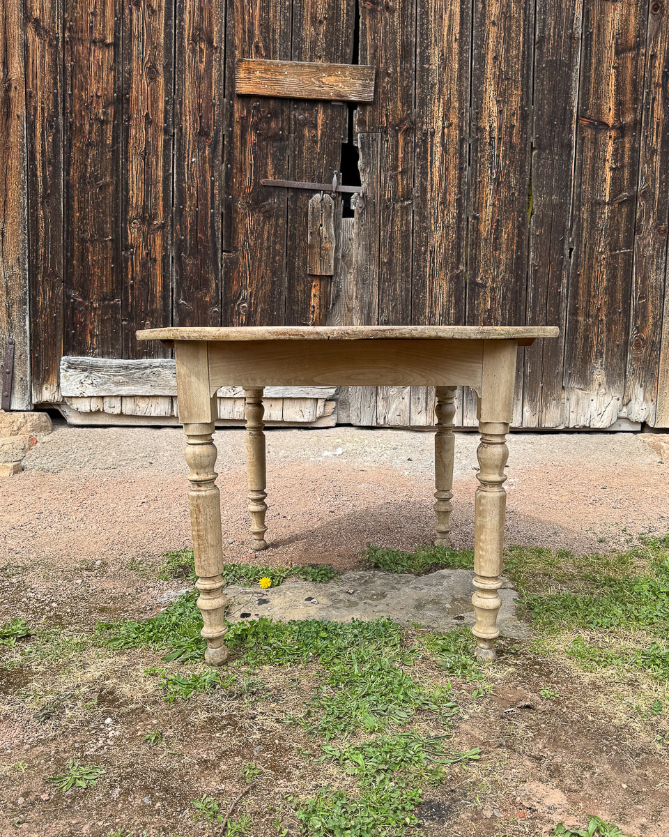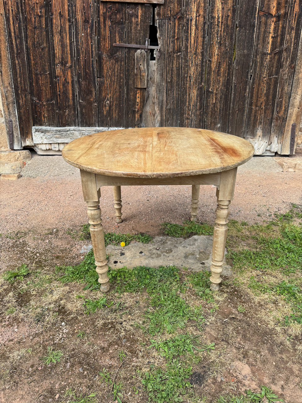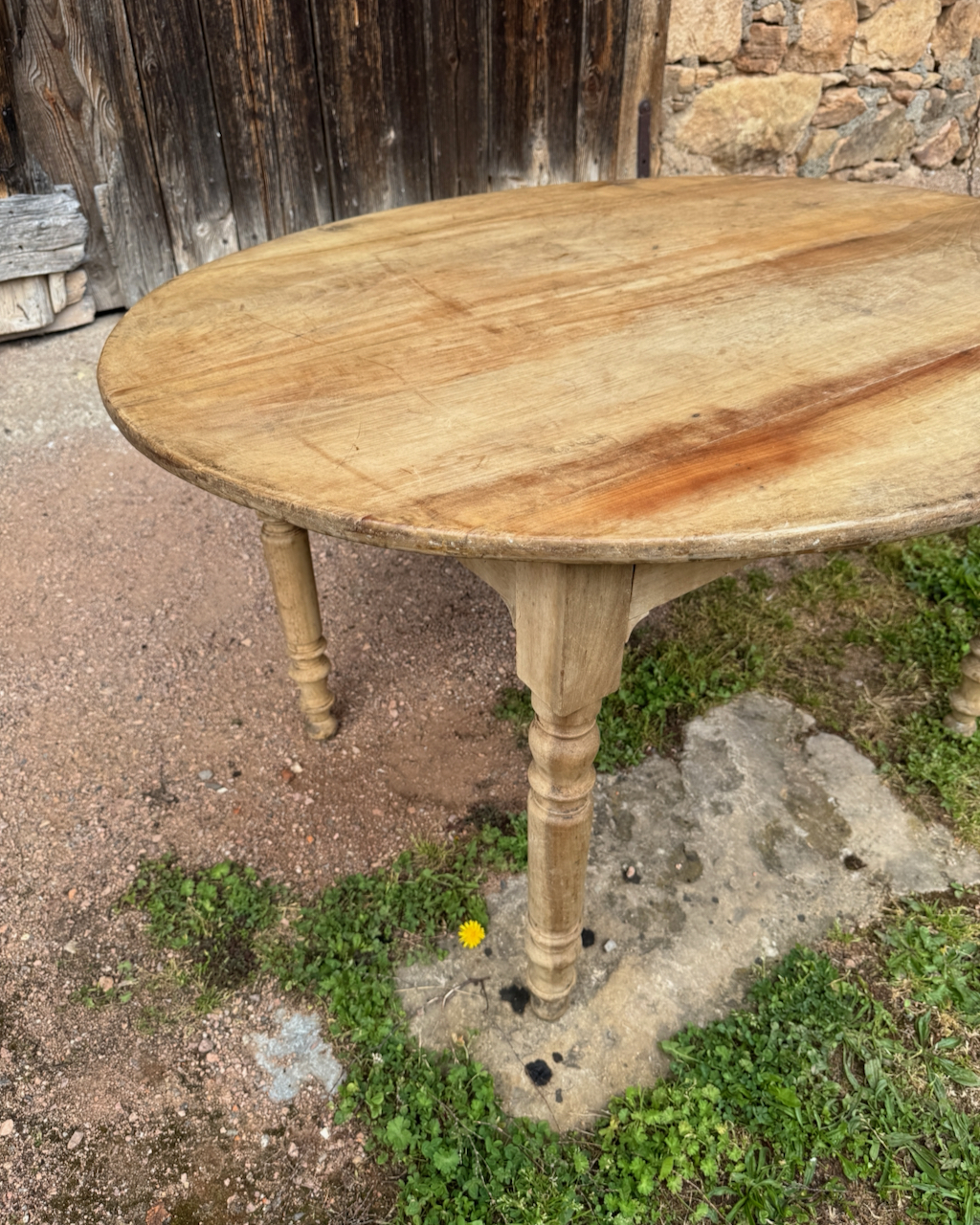 A late 19th century French oval shaped dining table with turned legs and peg construction, possibly in a fruitwood such as cherry with waxed finish. Overall in good condition.