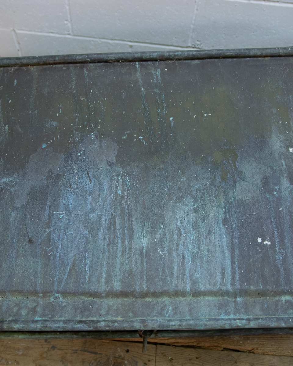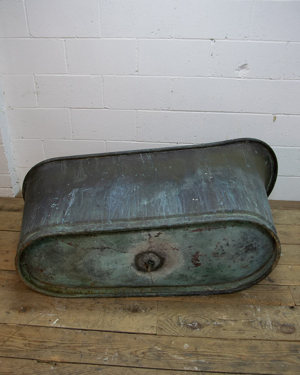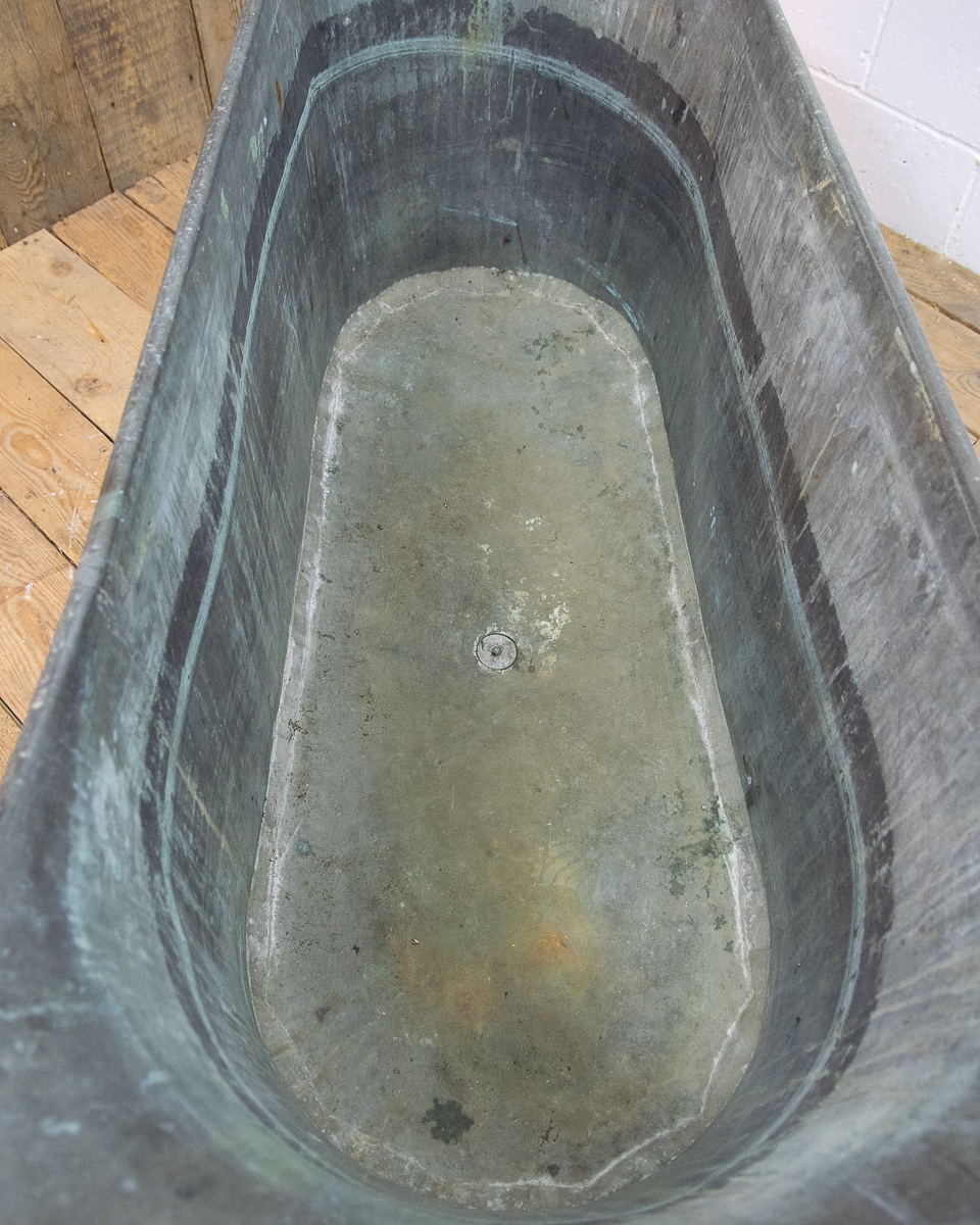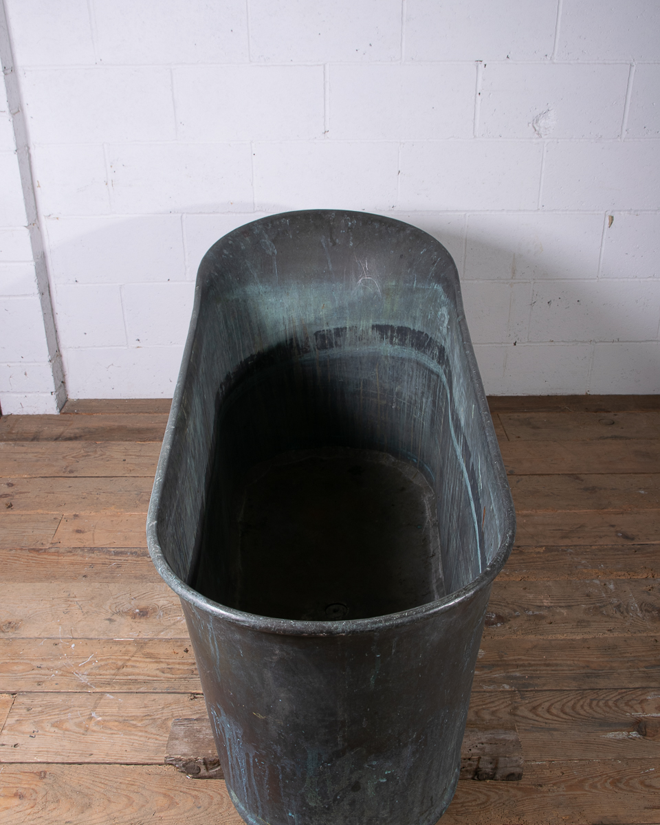 A stunning 19th century French copper slipper bath (tapering from head to feet) reclaimed from a country house near Givernay, France. Beautifully shaped, handmade fabrication, the curvatures of the rim showing the quality of the craftsmanship.