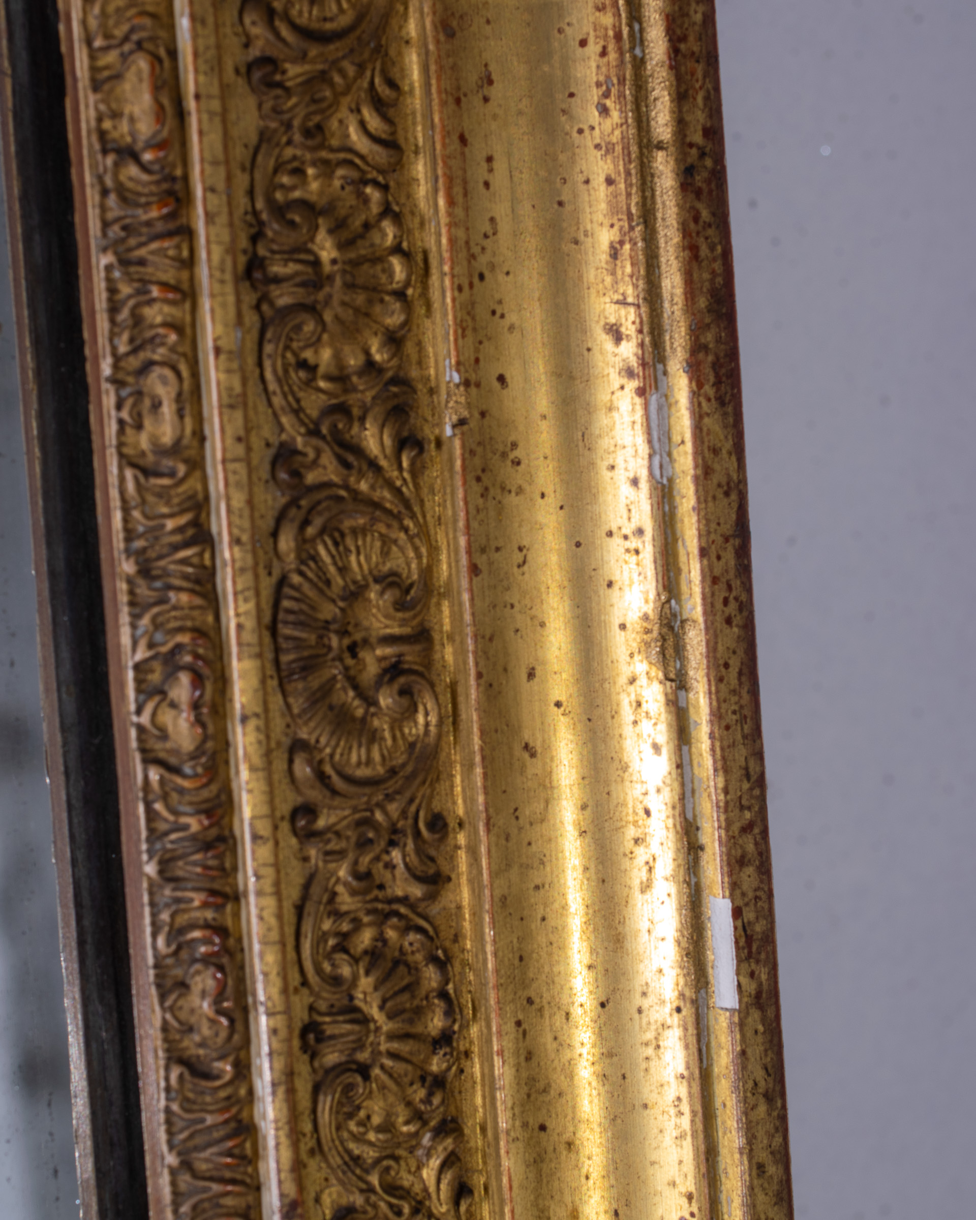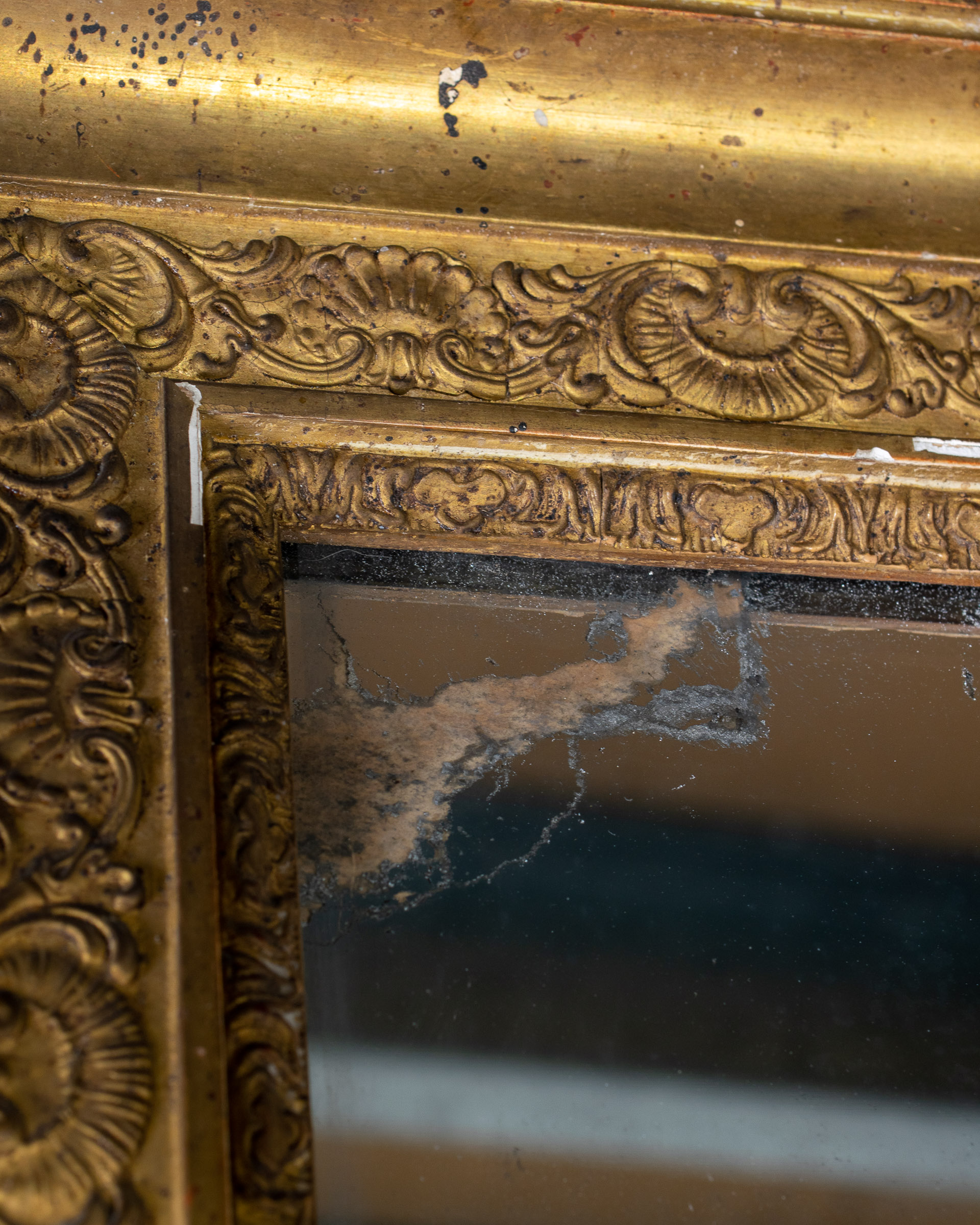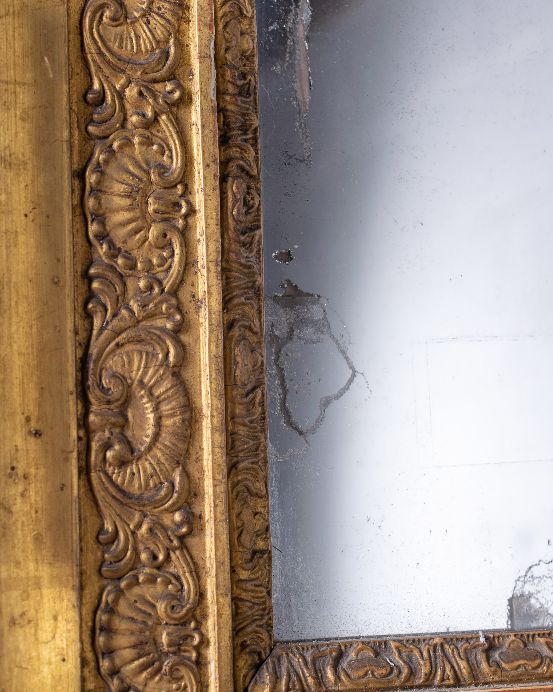 A mid 19th century French gilt wood framed mirror with original mercury glass plate.