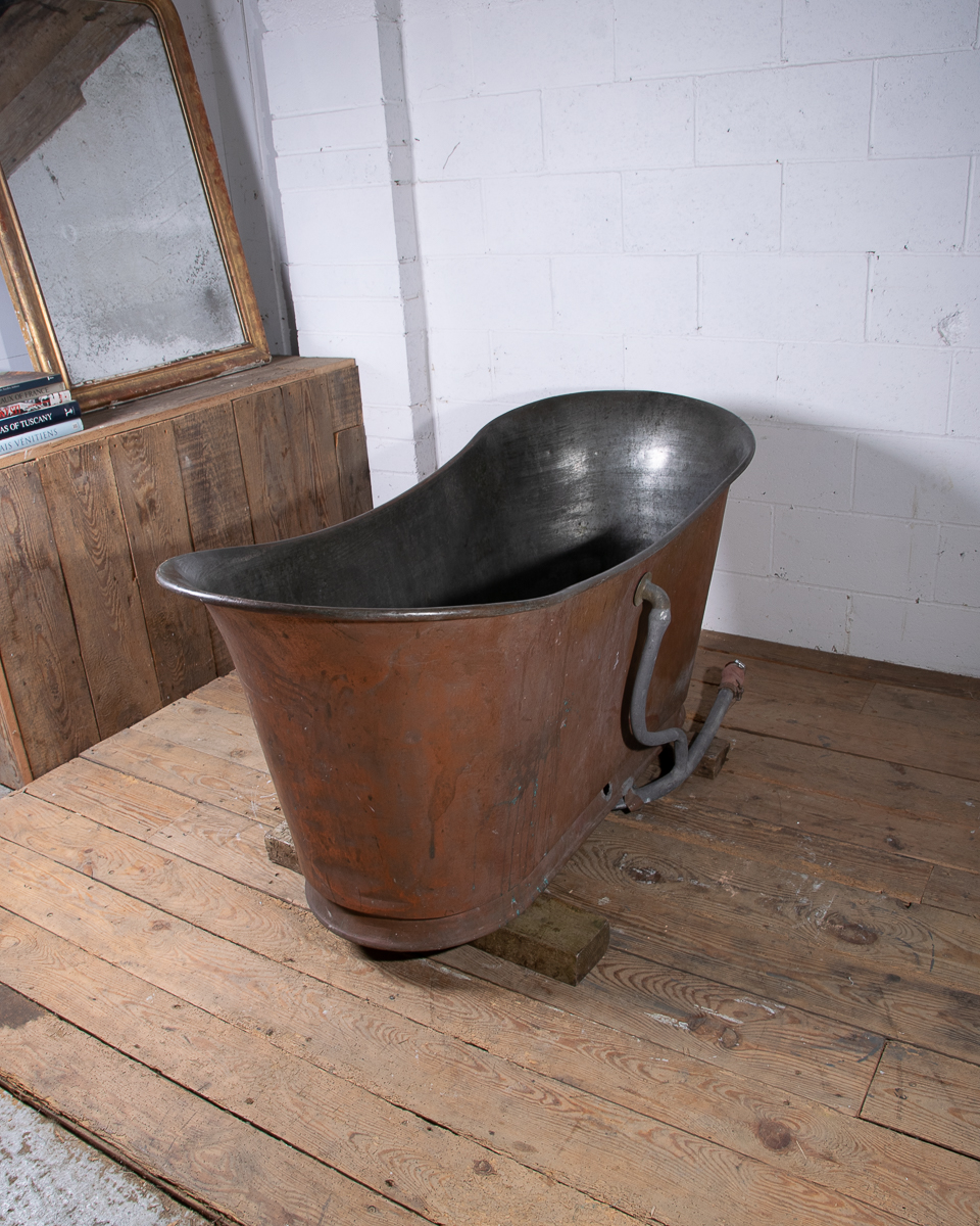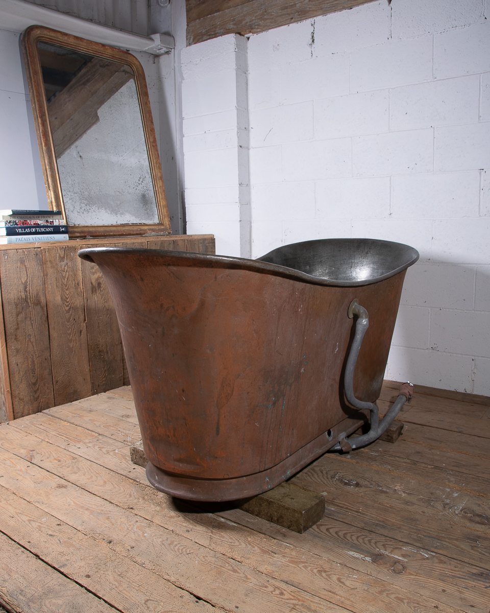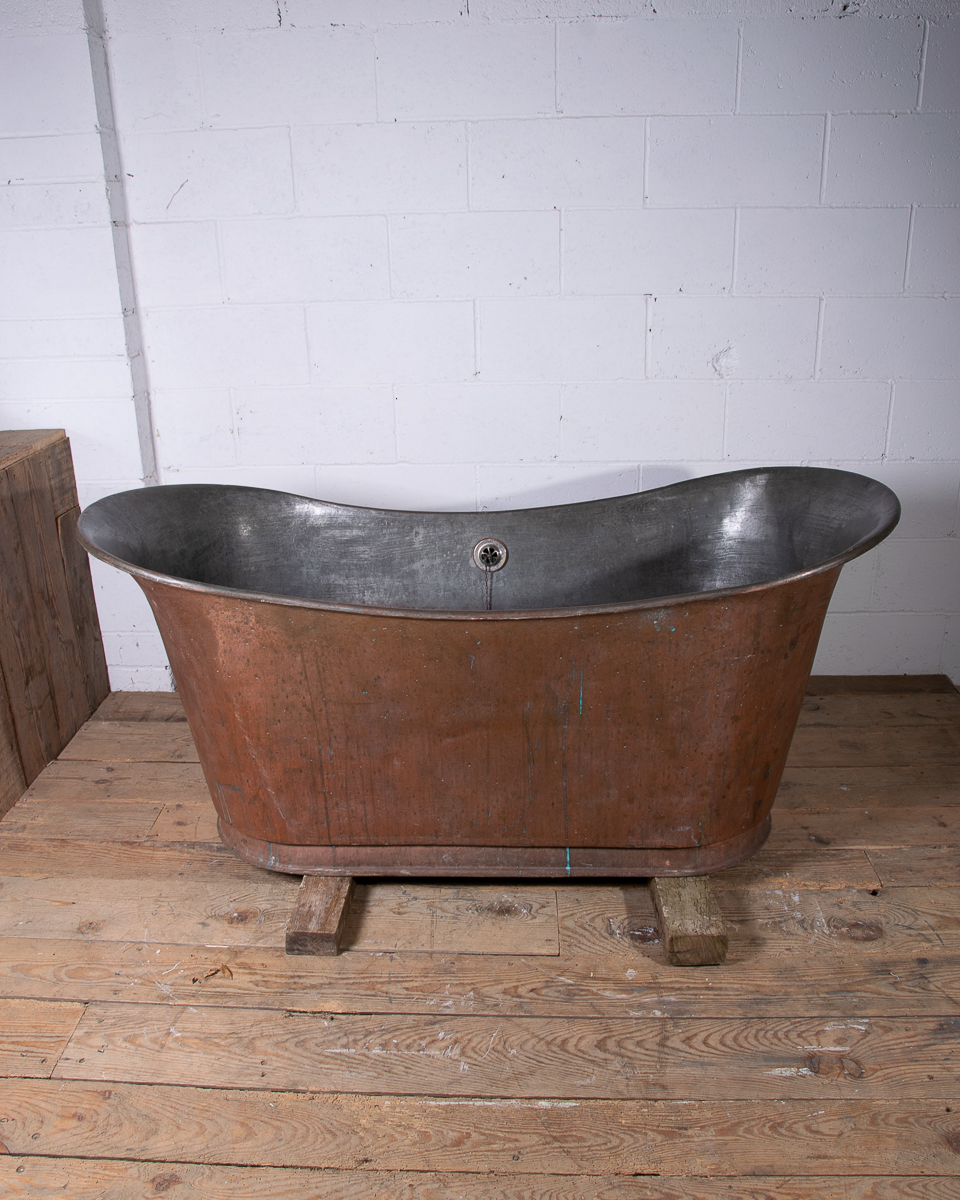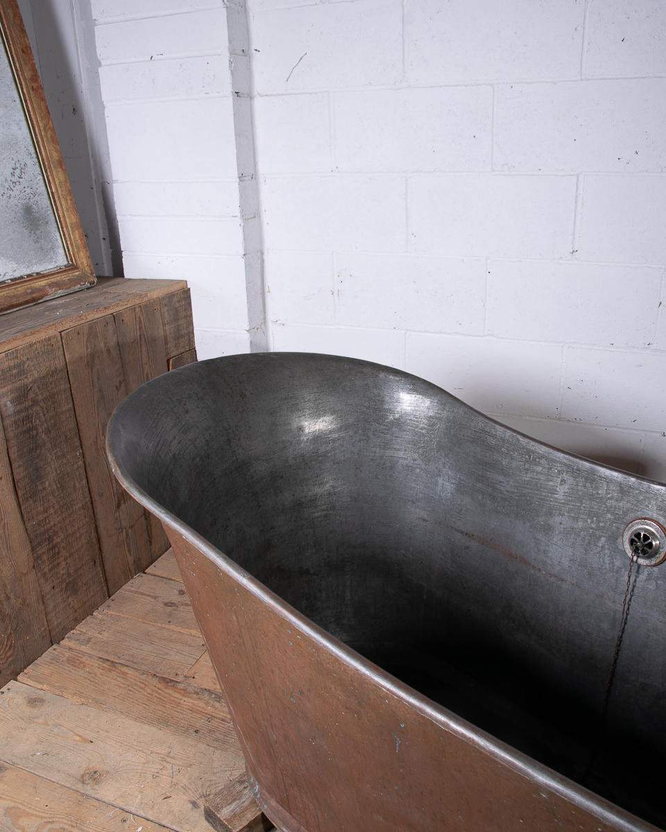 A double ended late 19th century French bath. Still has its original lead plumbing attached (which we can be replaced with modern fittings). Seals in good condition.