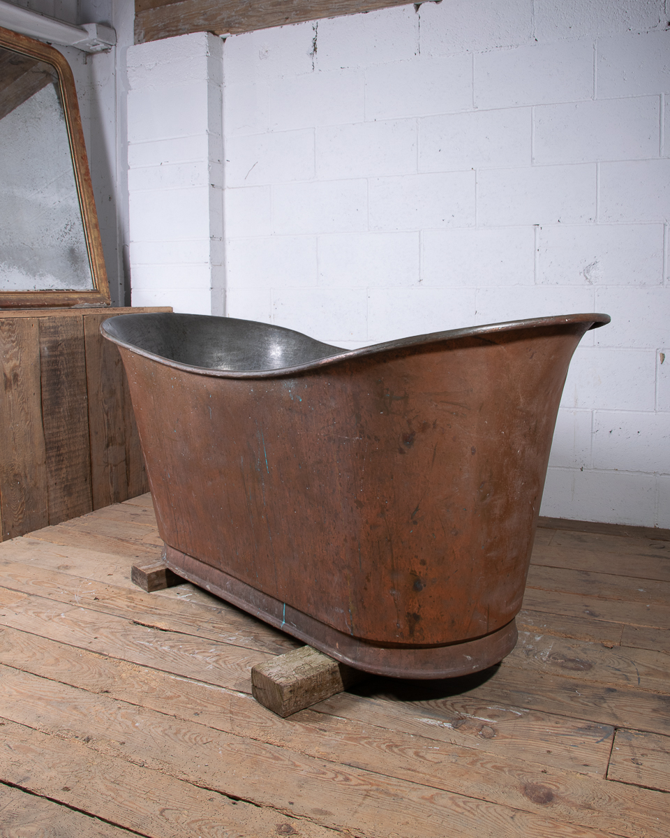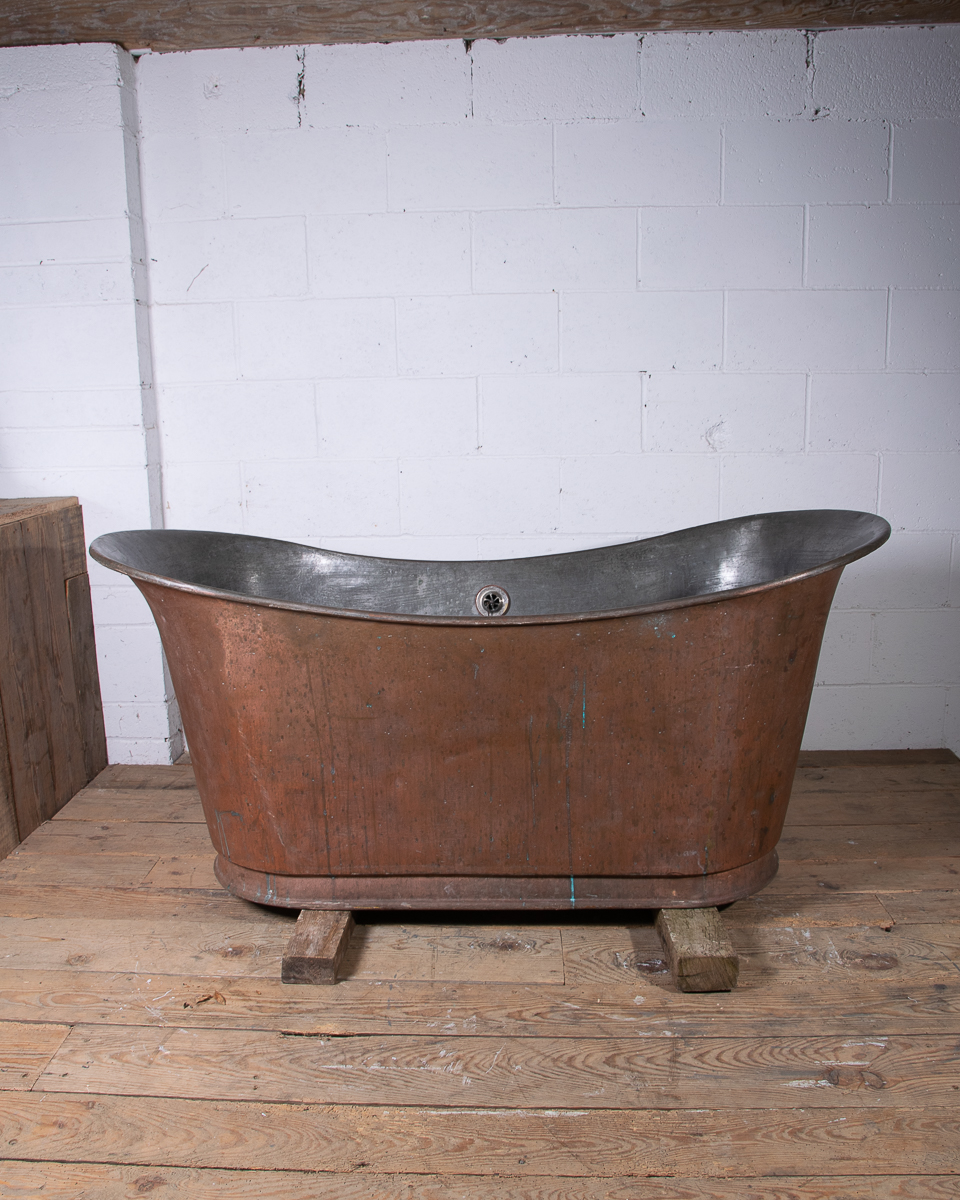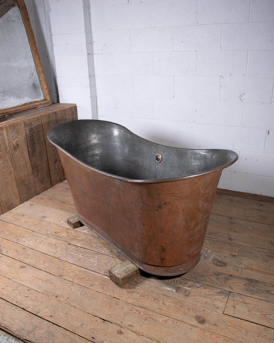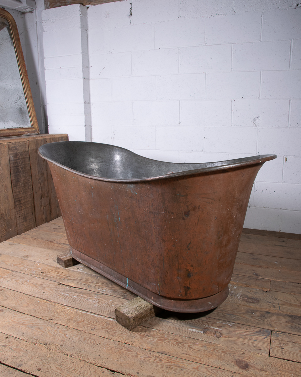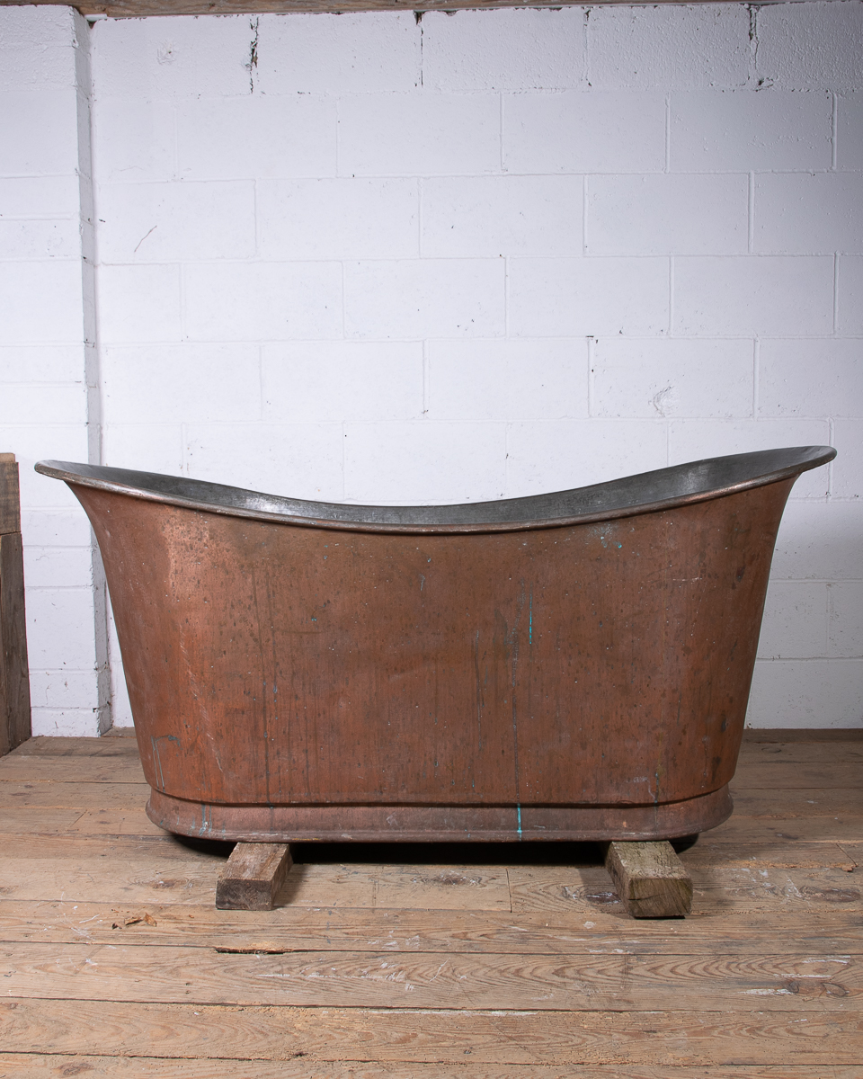 A double ended late 19th century French bath. Still has its original lead plumbing attached (which we can be replaced with modern fittings). Seals in good condition.