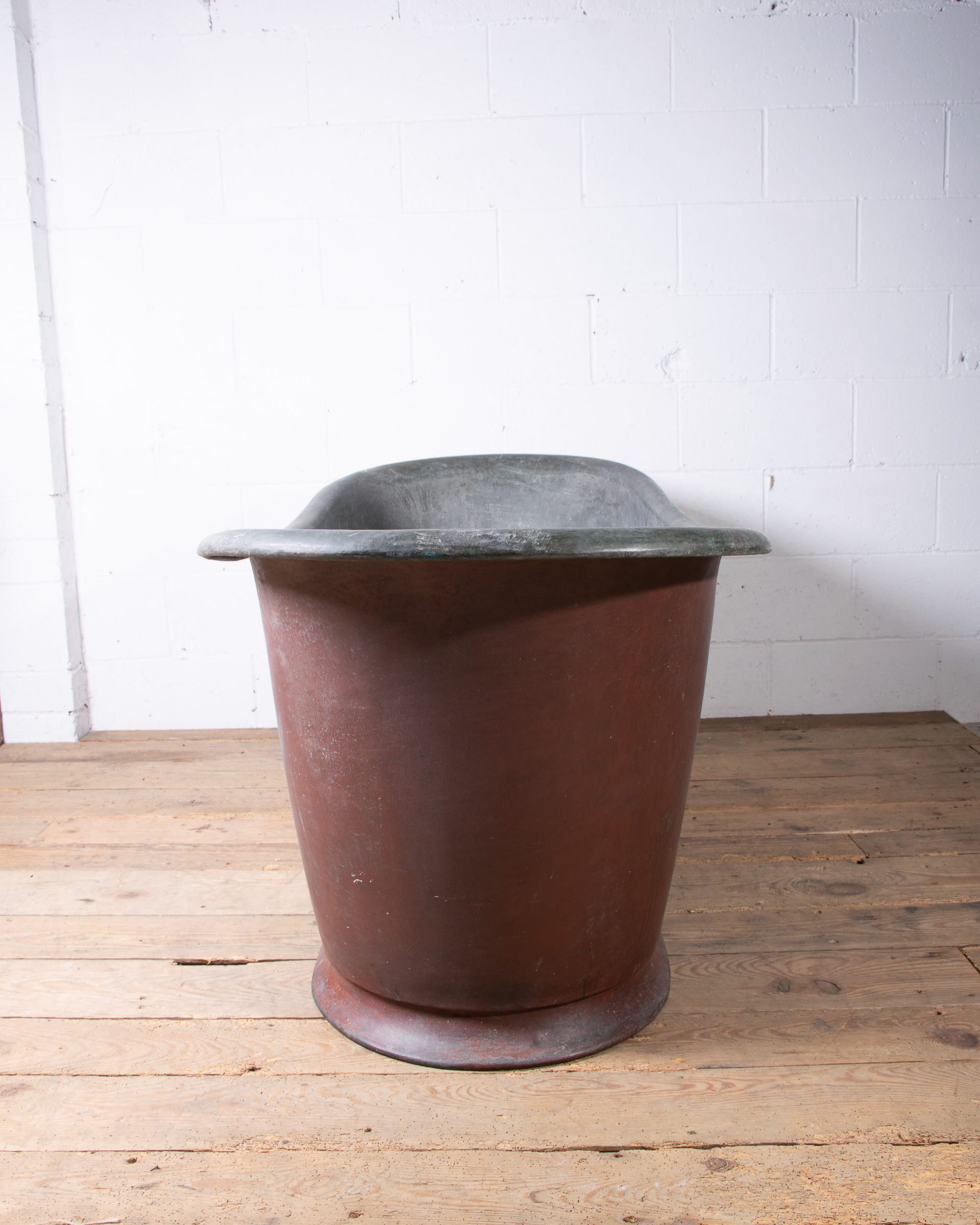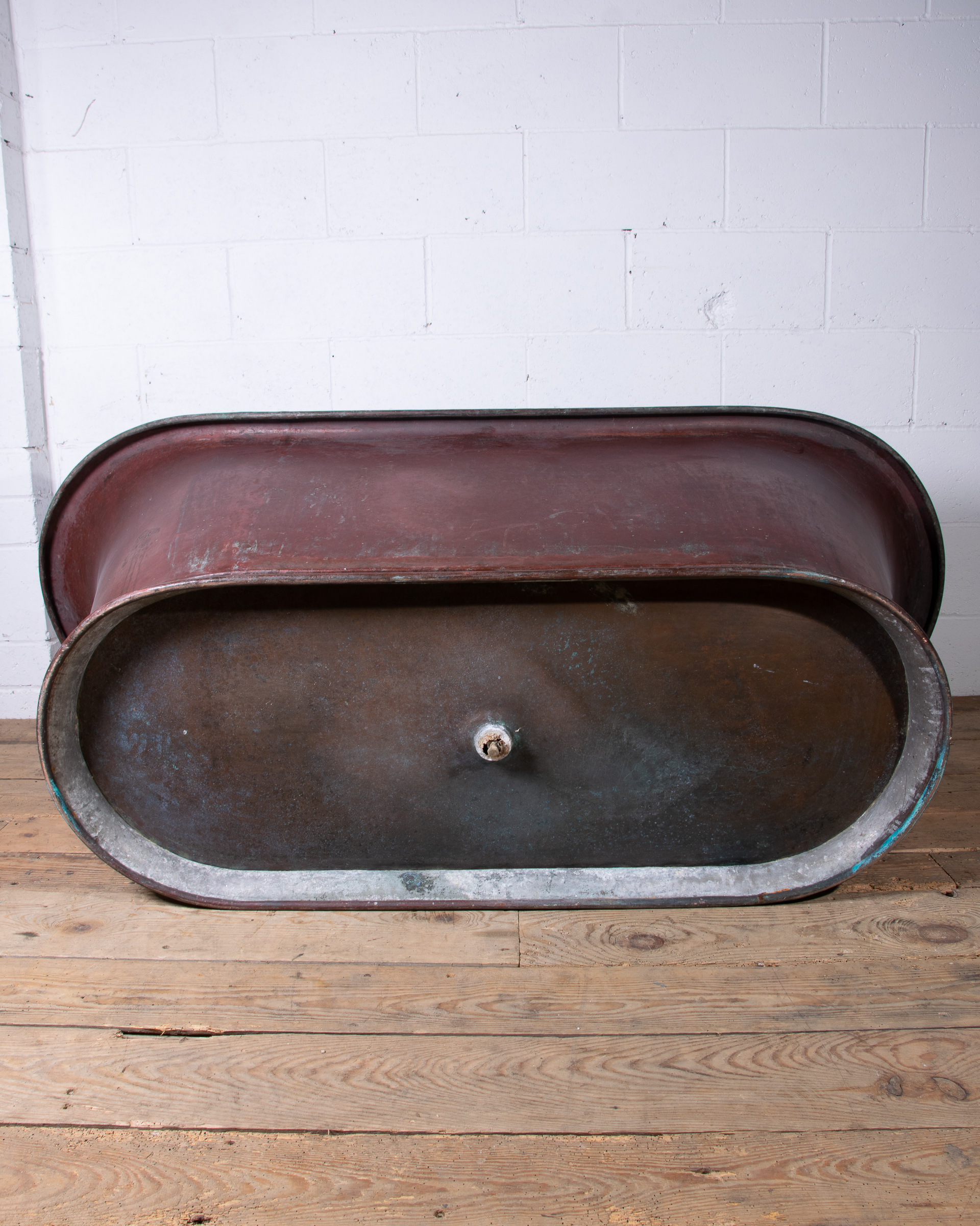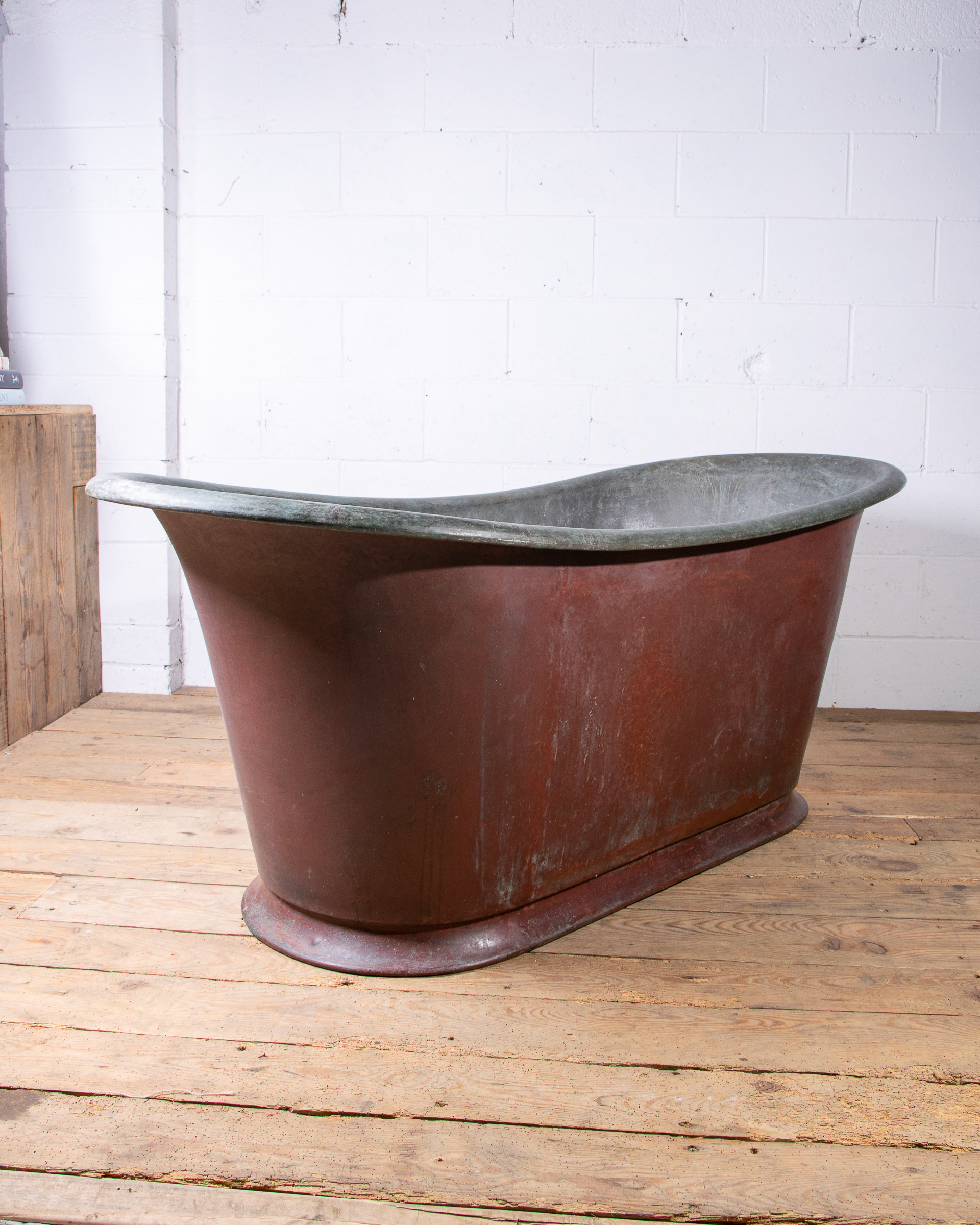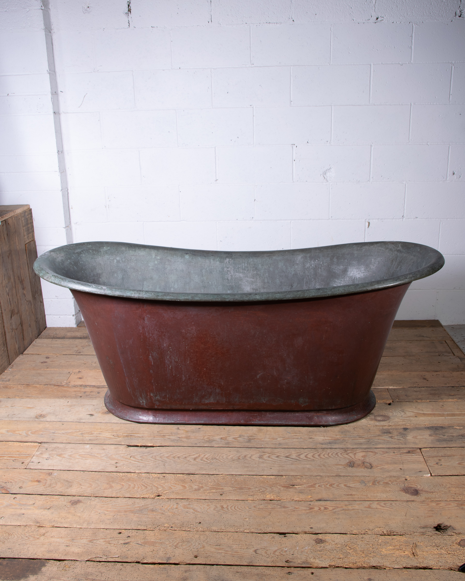 A larger than usual 19th century copper double ended bathtub. Reclaimed from a chateau near Albi, France. Original burgundy coloured exterior, electro-plated interior and plug/waste fitting.