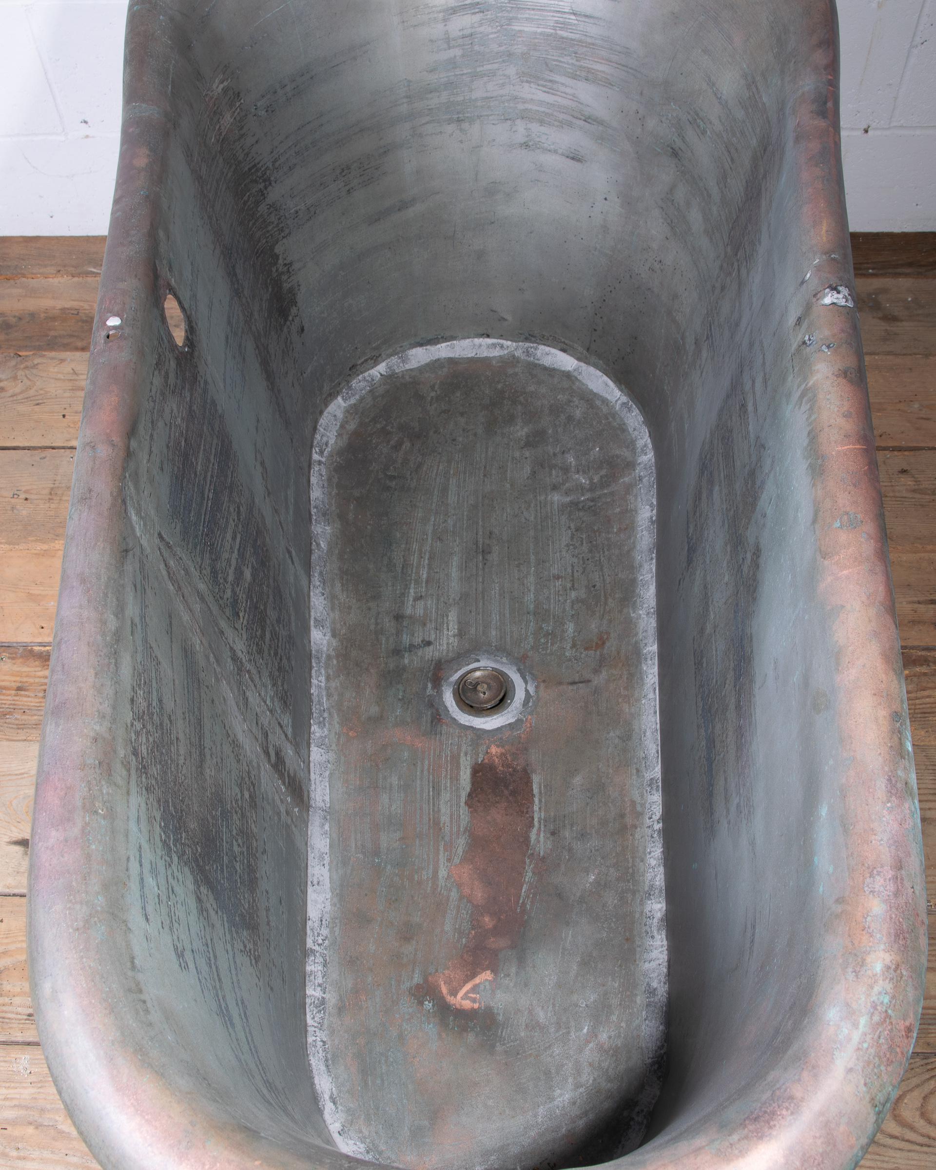 Original waste can be removed and replaced with a modern aged brass fitting that easily connects to UK plumbing. Overflow hole which could either be covered up with a brass plate we can make or an overflow fitting added.