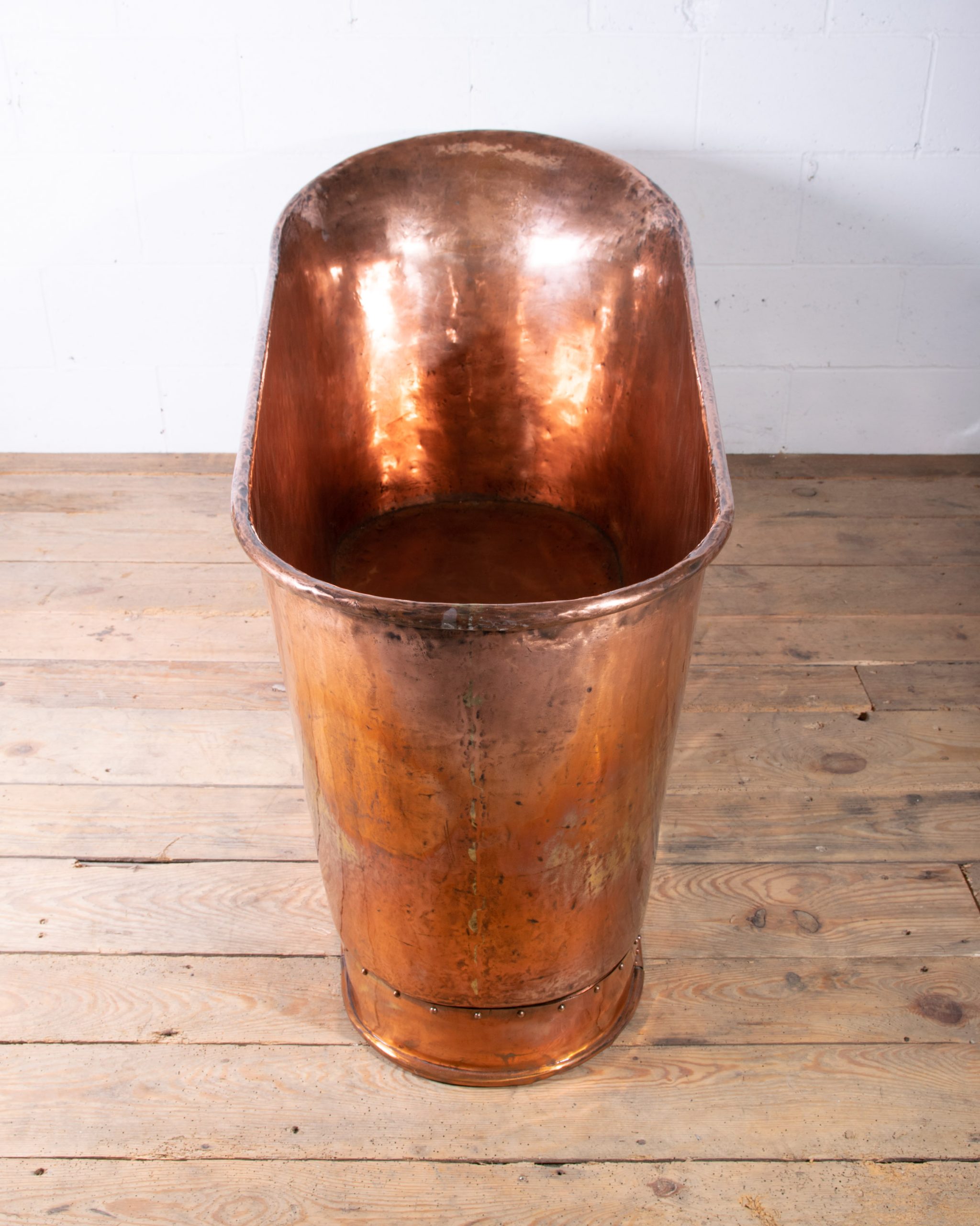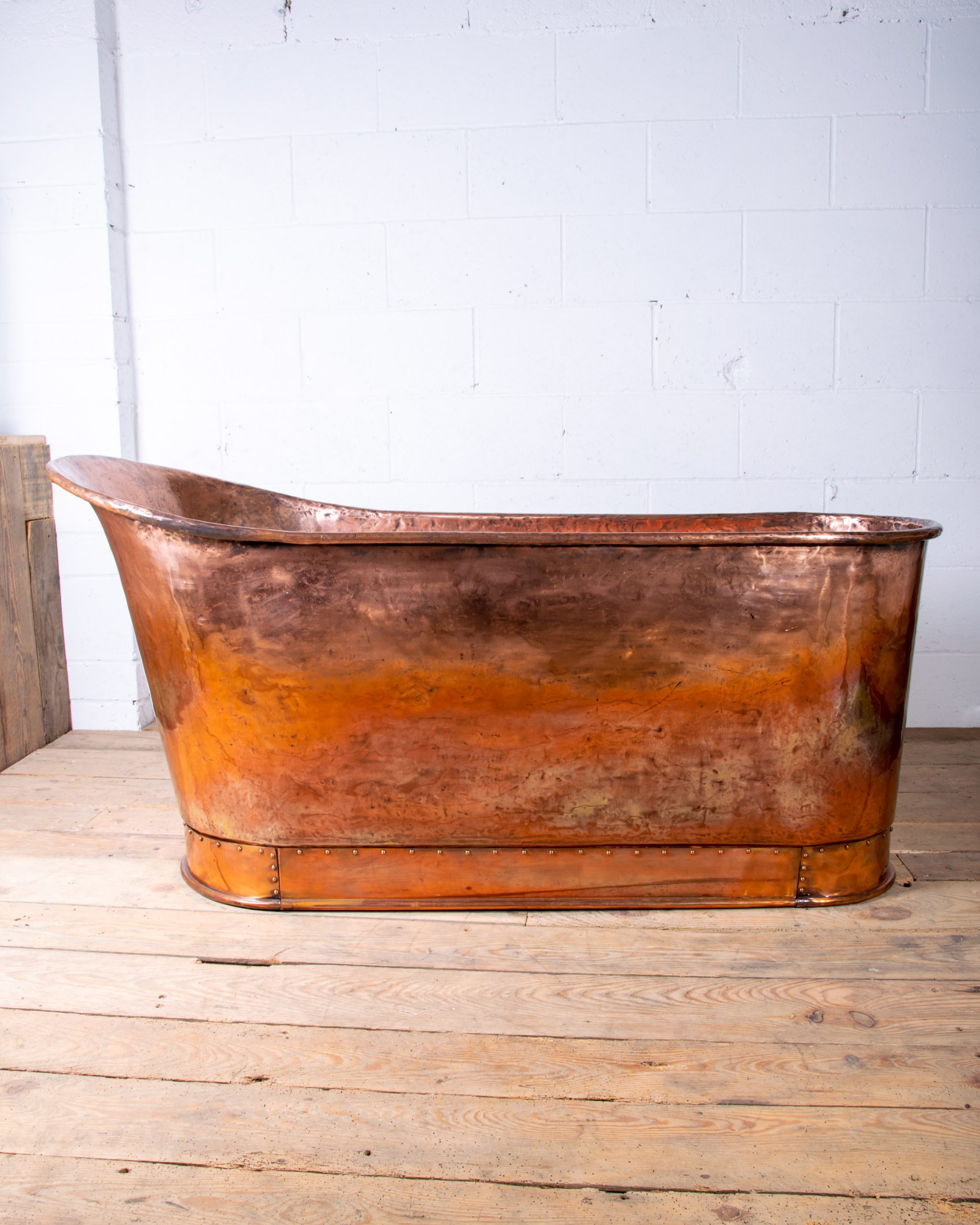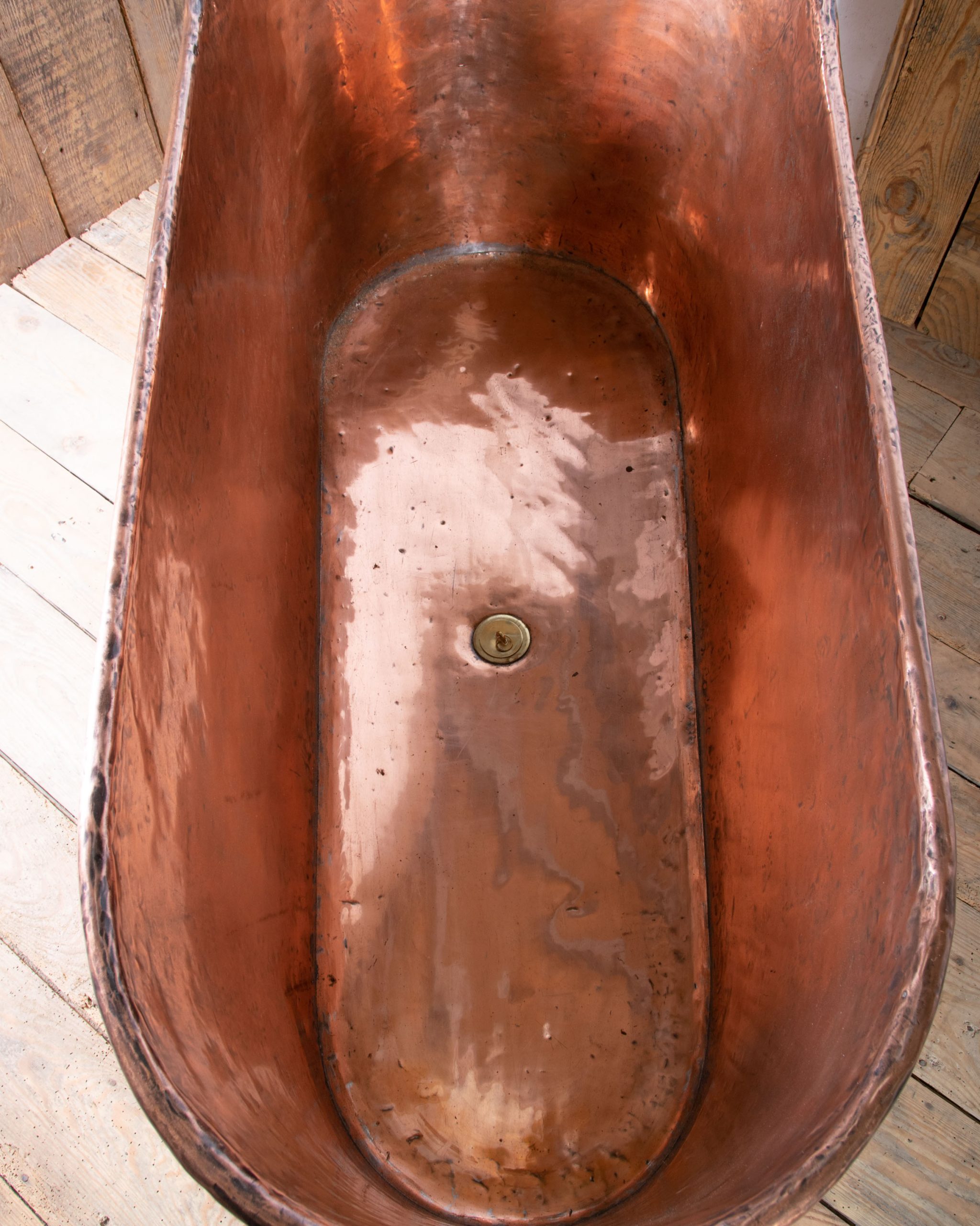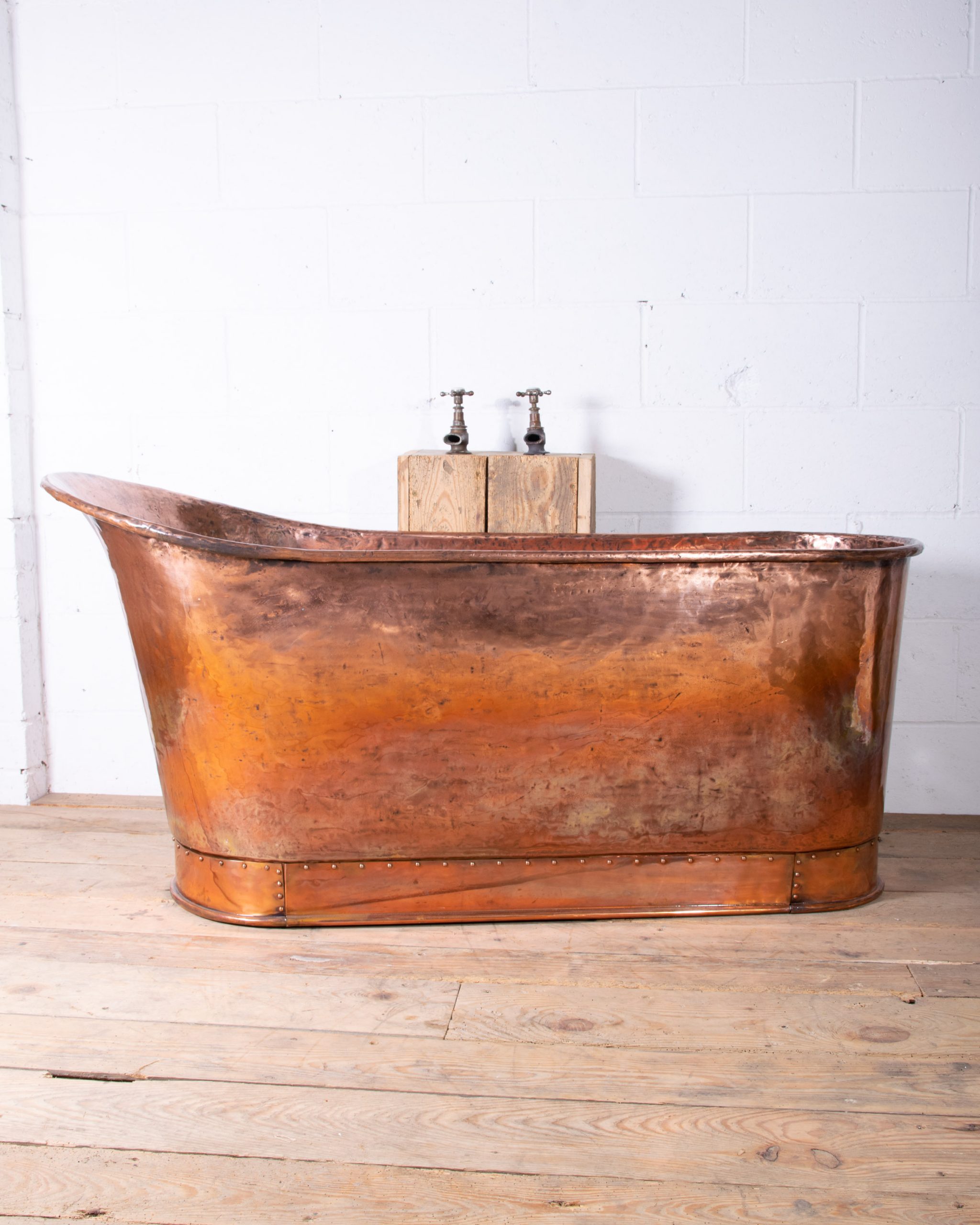 A late 19th century French copper slipper bathtub that has been restored on the TV programme Salvage Hunters The Restorers. To view the episode and how the bathtub was restored click on this link https://www.dplay.co.uk/show/salvage-hunters-the-restorers/video/season-3-episode-13/EHD_274000B