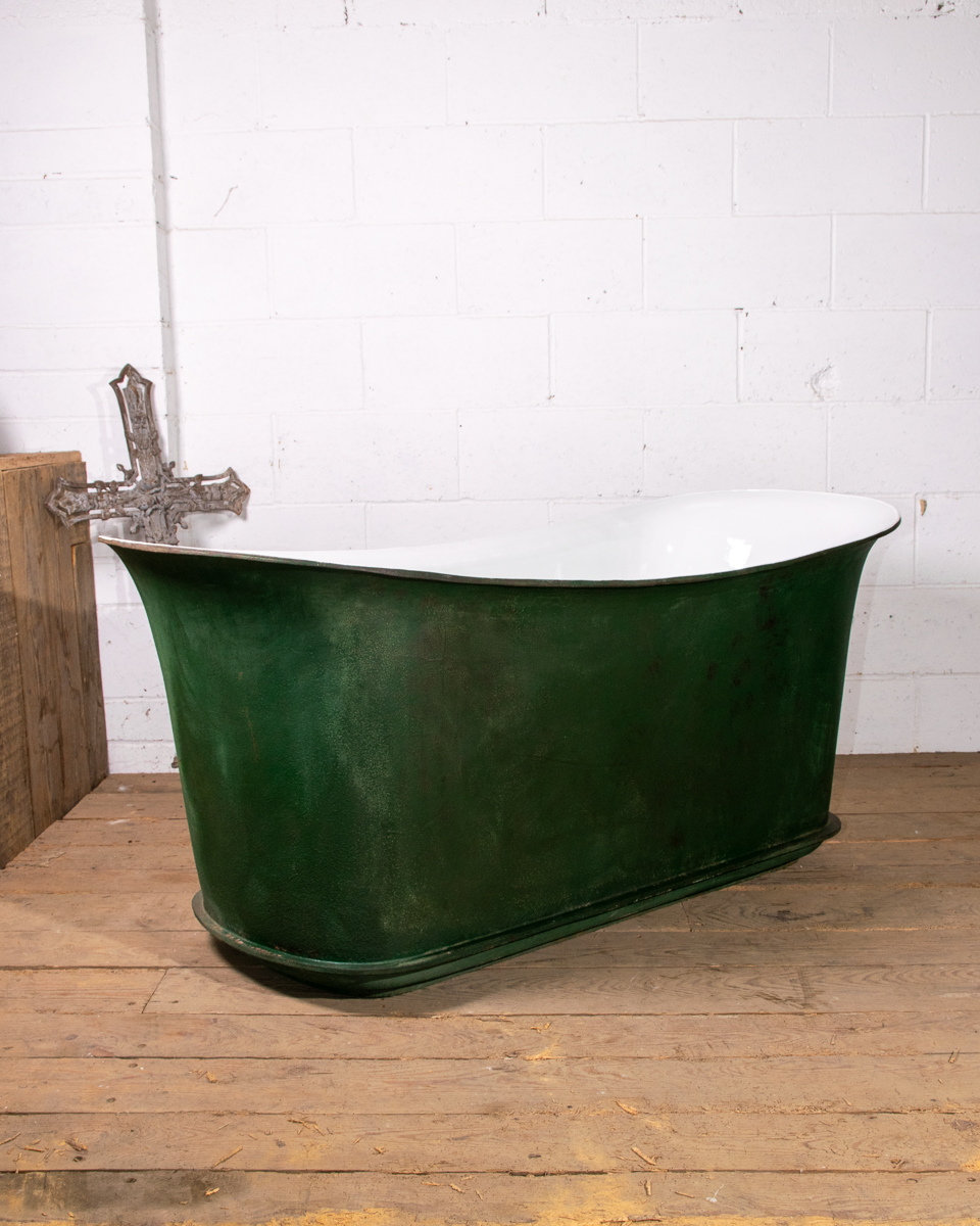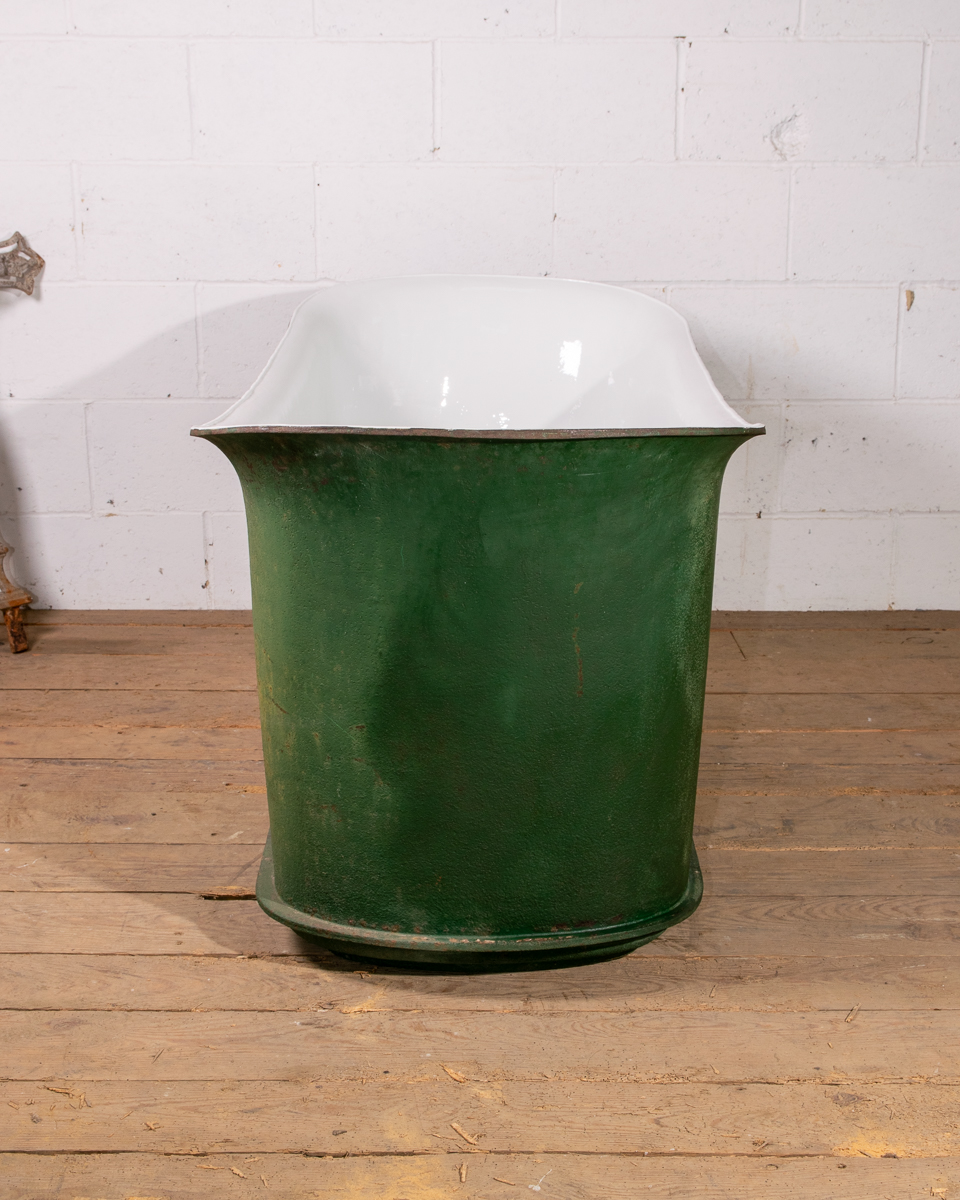 A late 19th Century cast iron double ended rolltop freestanding bath.