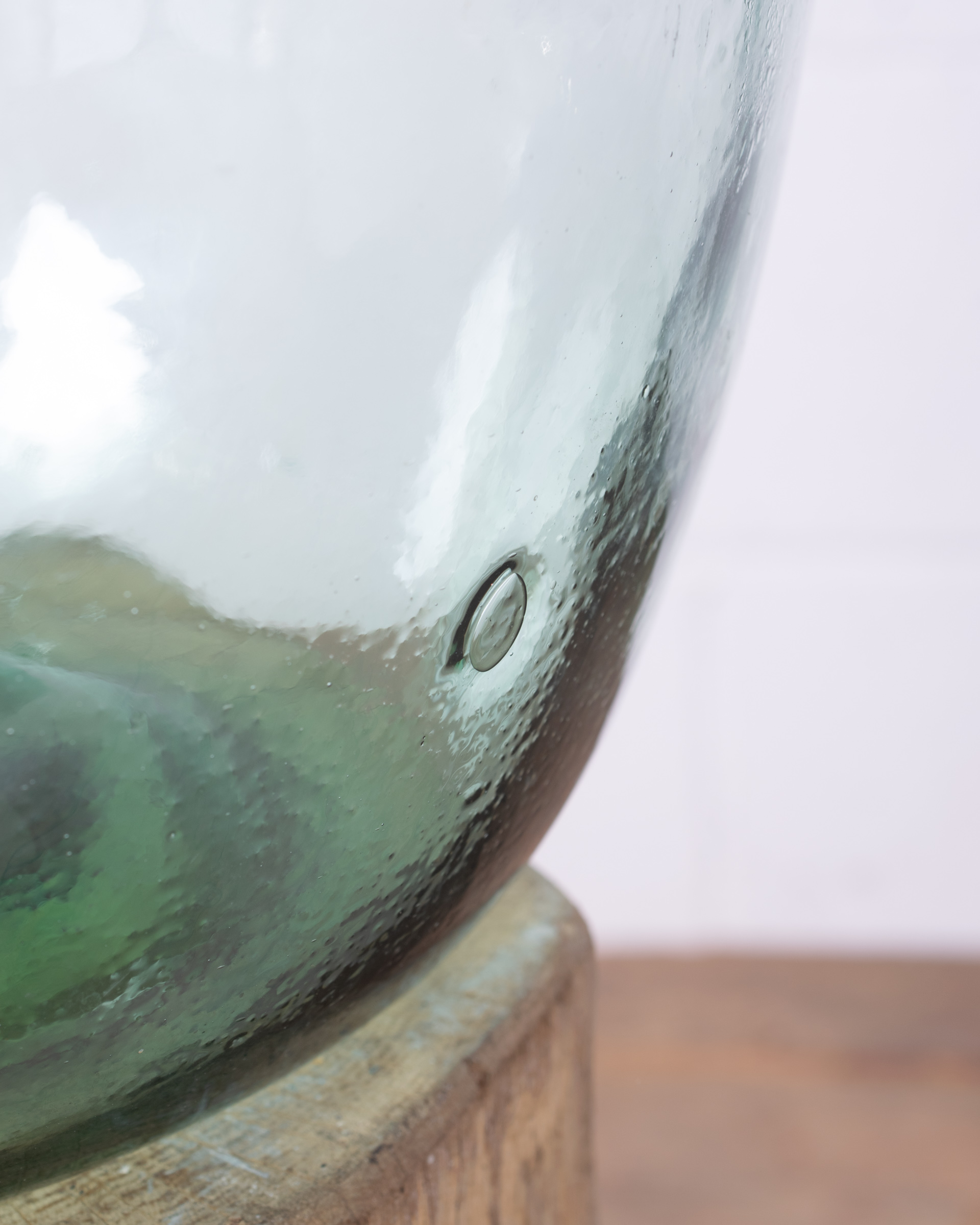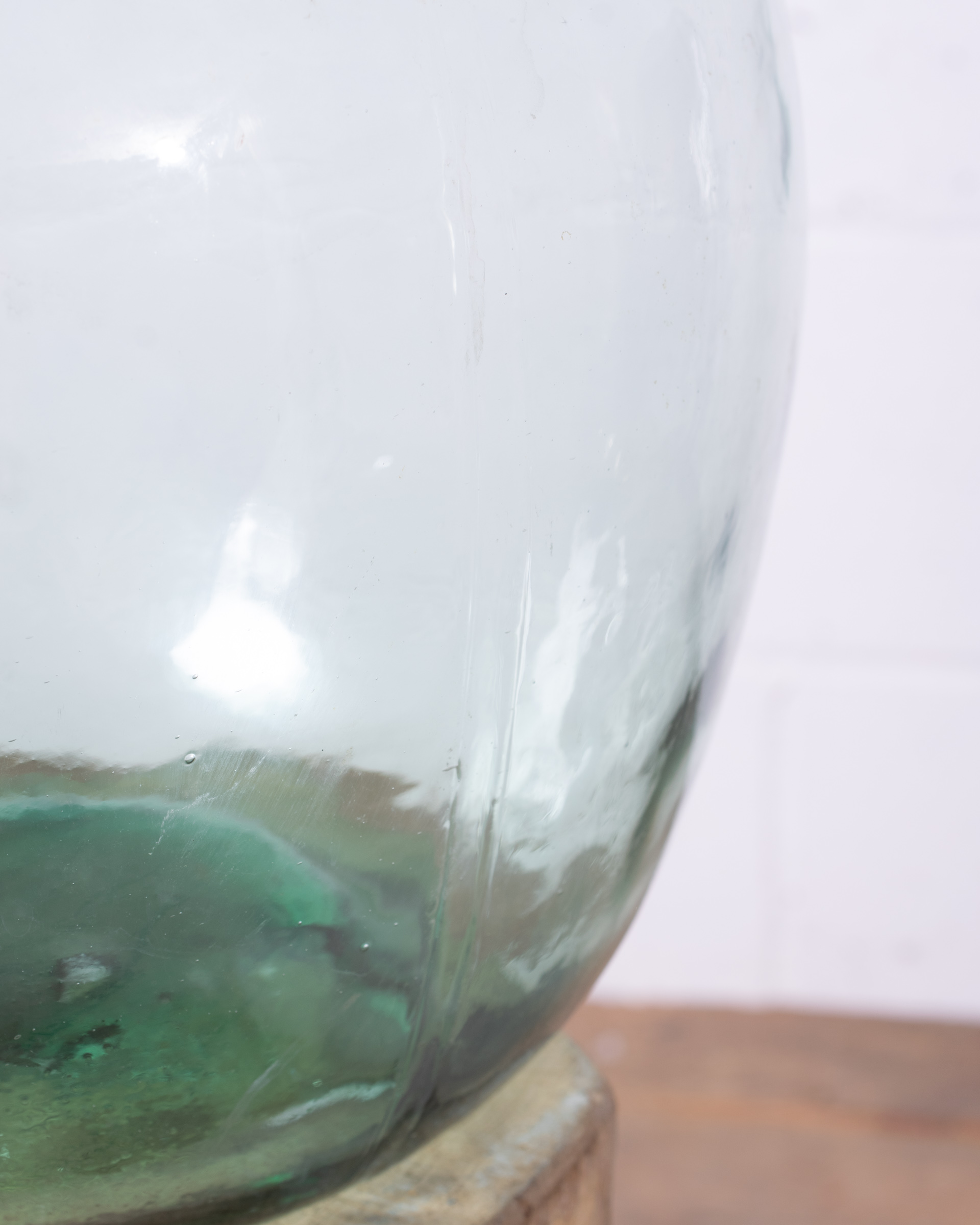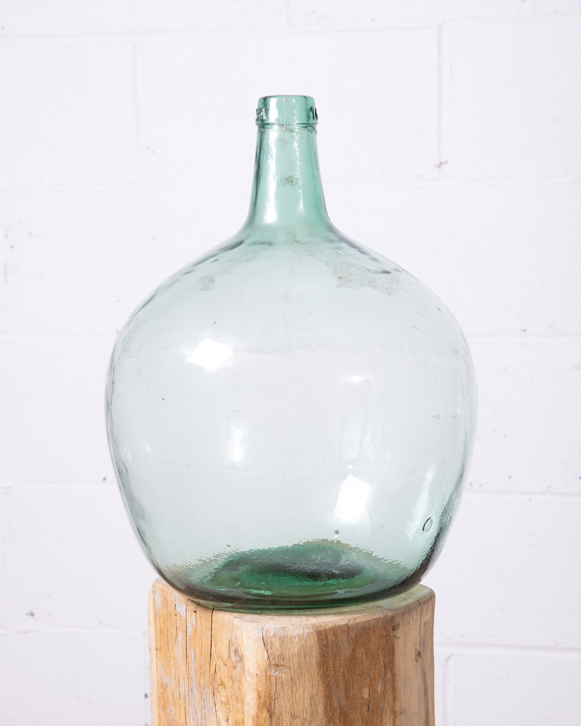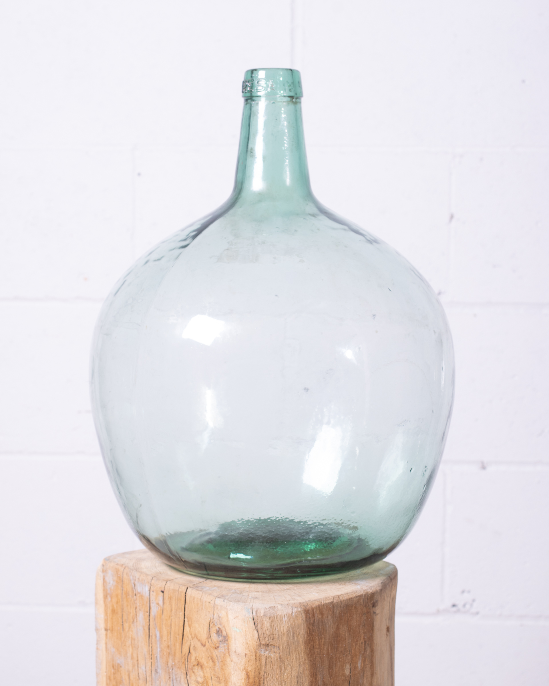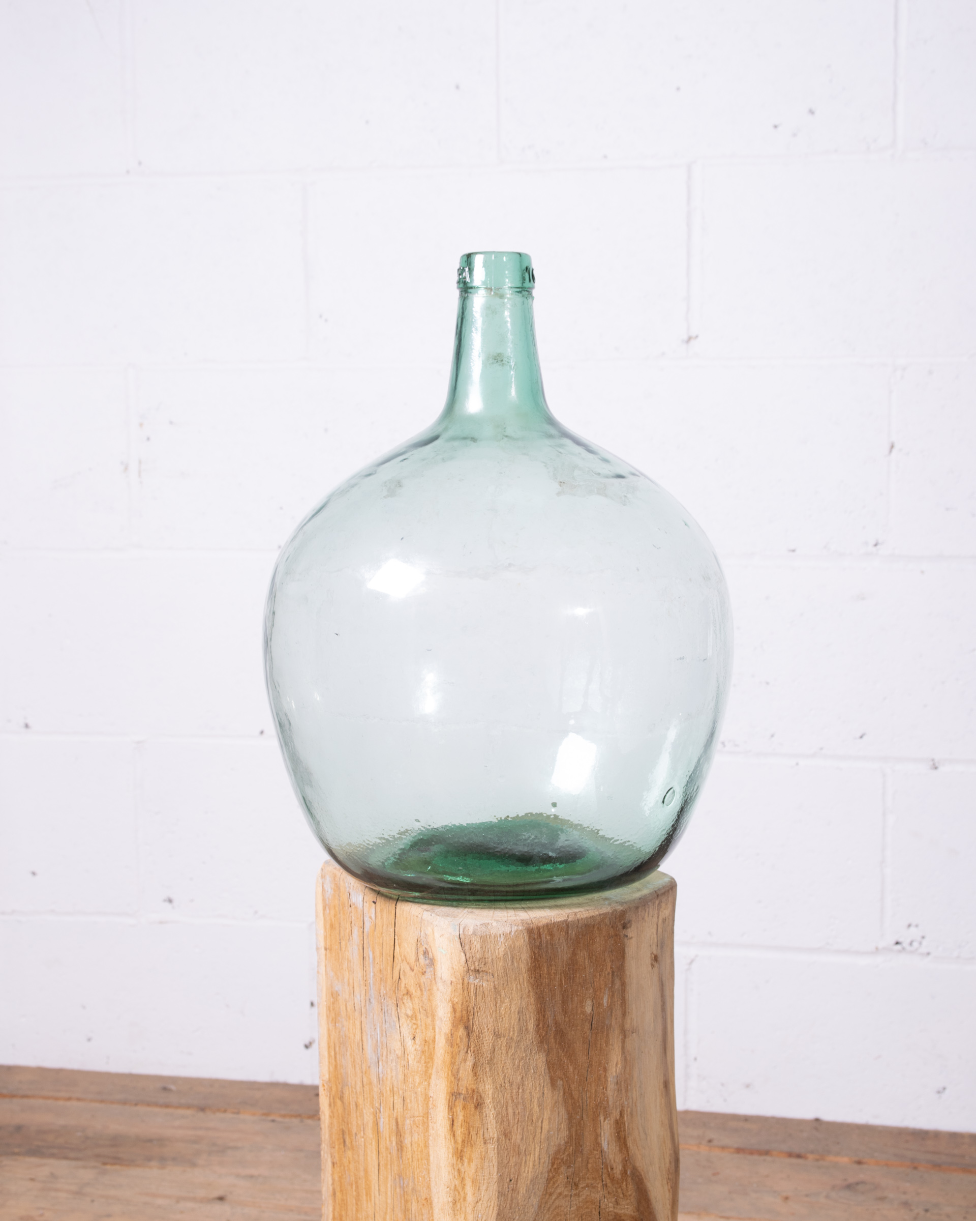 A demijohn or carboy hand blow bottle original used for storing alcohol such as brandy.