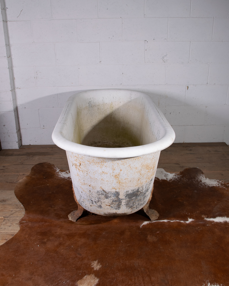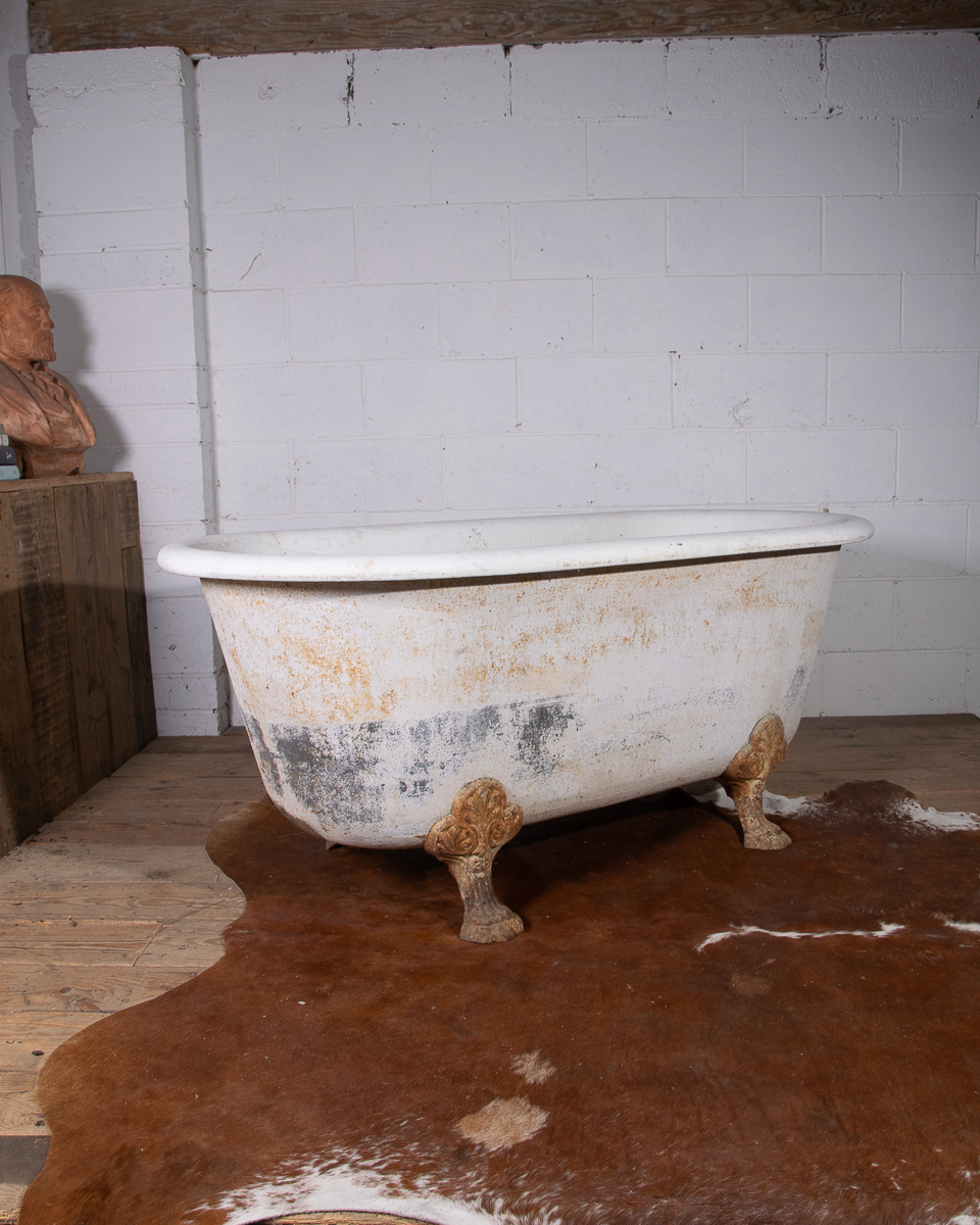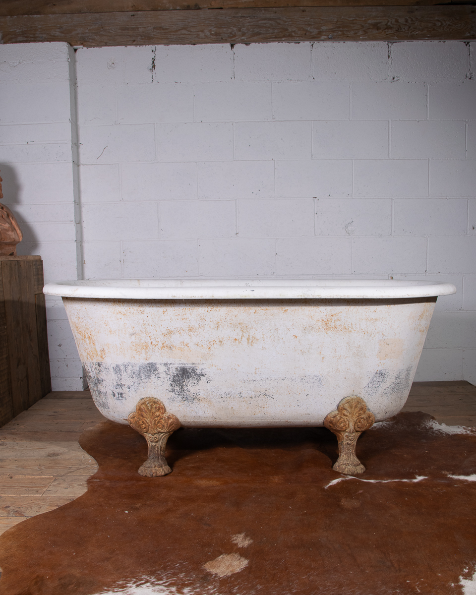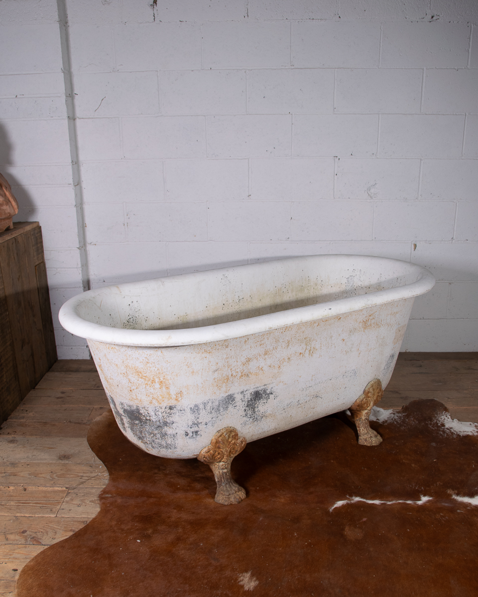 A late 19th century French lionfoot bath reclaimed from a maison bourgeoise in the Puy de Dome region of France. Showing interesting patina on the exterior. The bath is ready for interior enamel resurfacing (included in price).