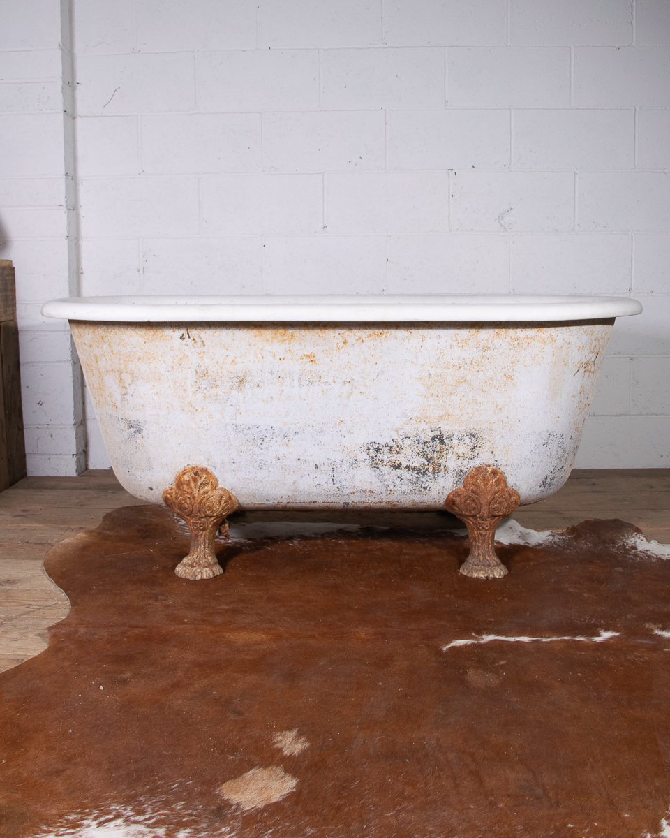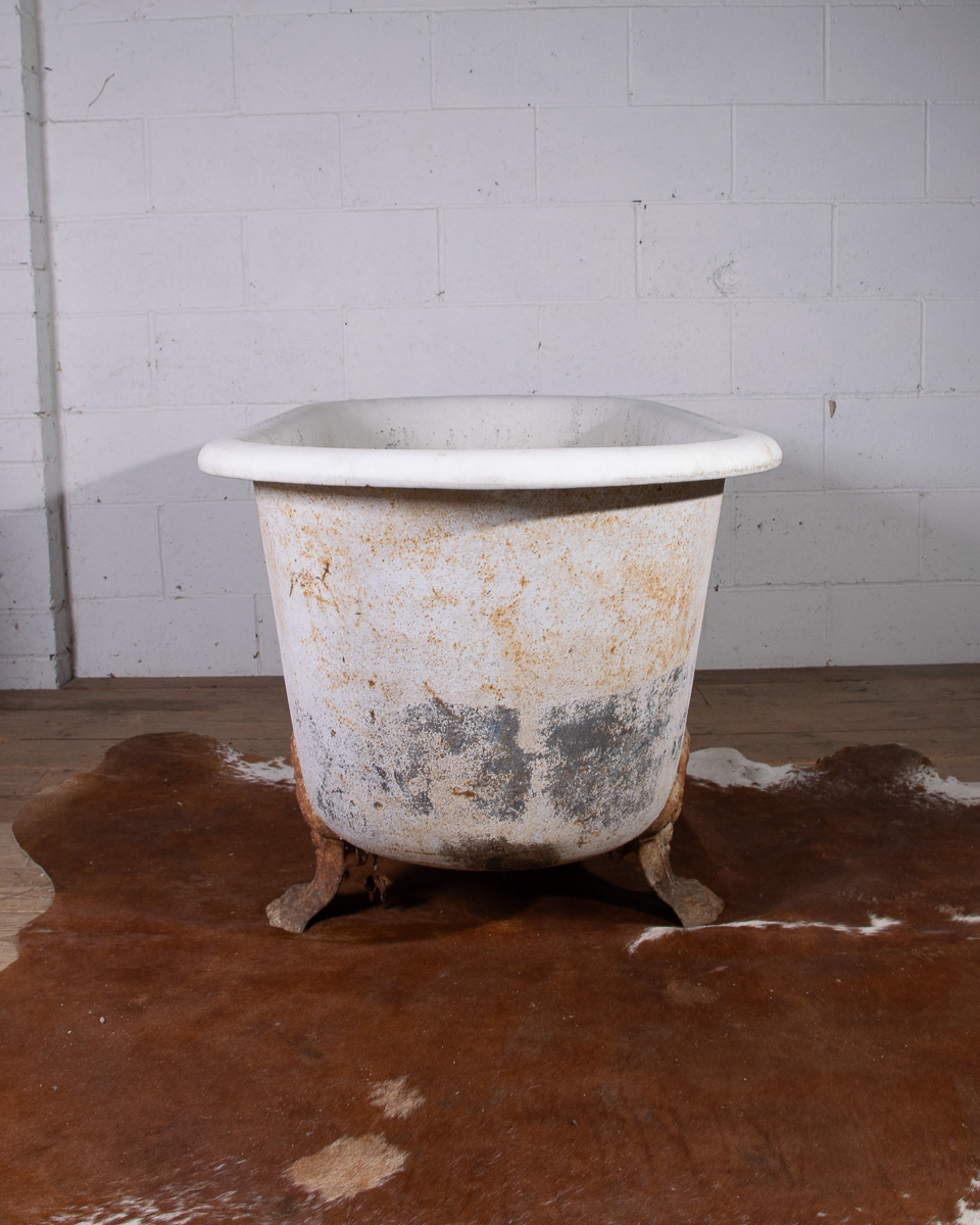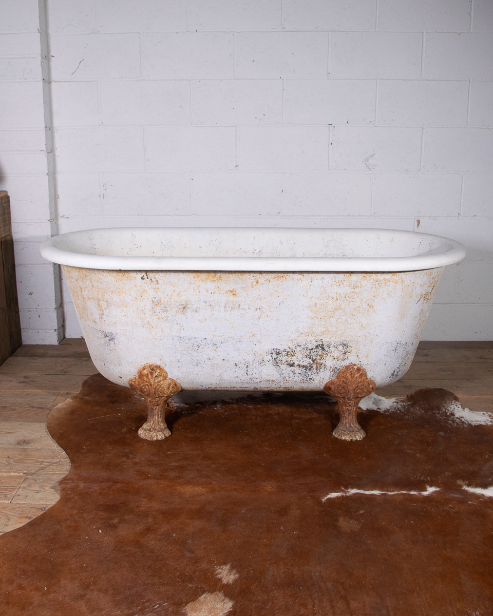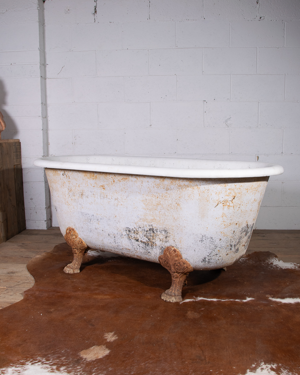 A late 19th century French lionfoot bath reclaimed from a maison bourgeoise in the Puy de Dome region of France. Showing interesting patina on the exterior. The bath is ready for interior enamel resurfacing (included in price).