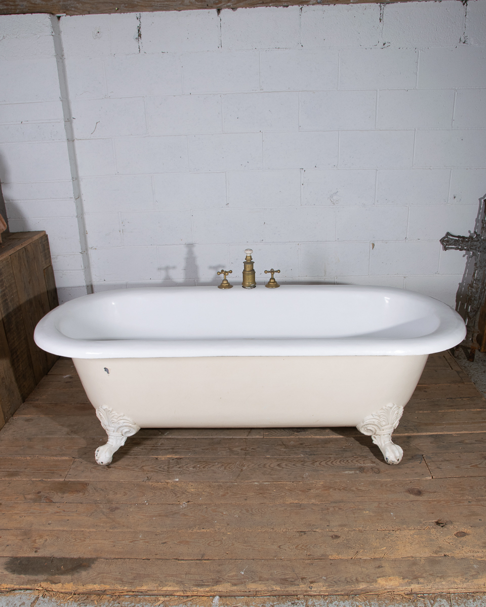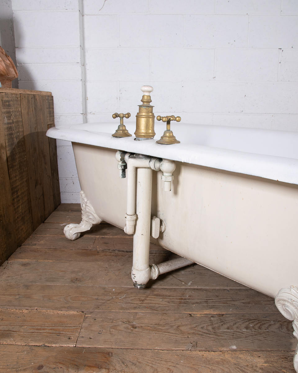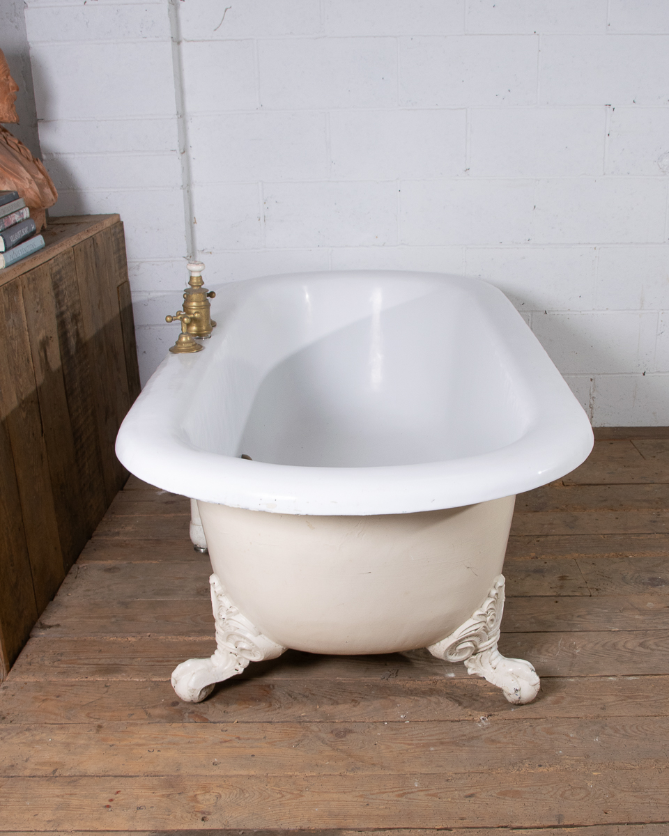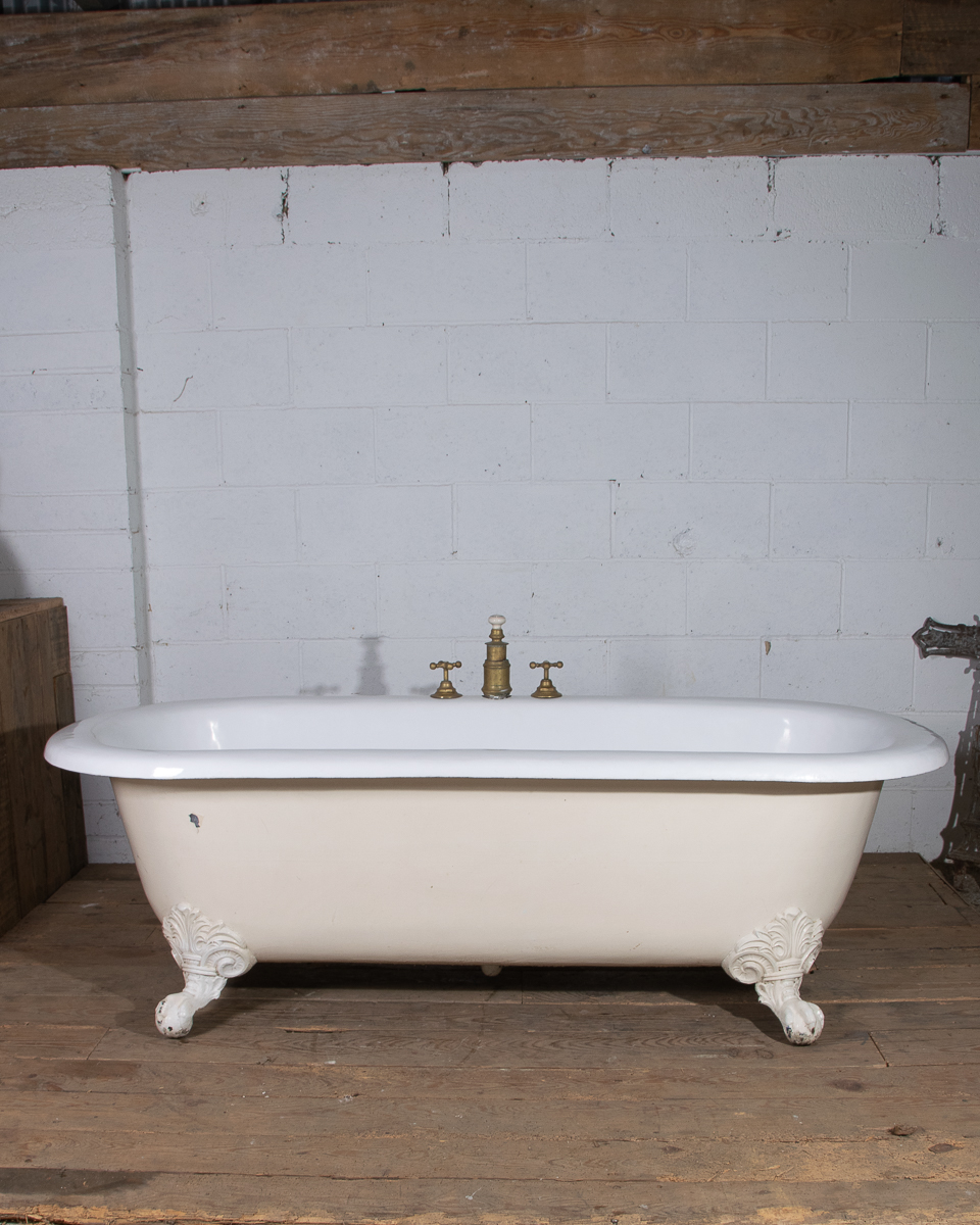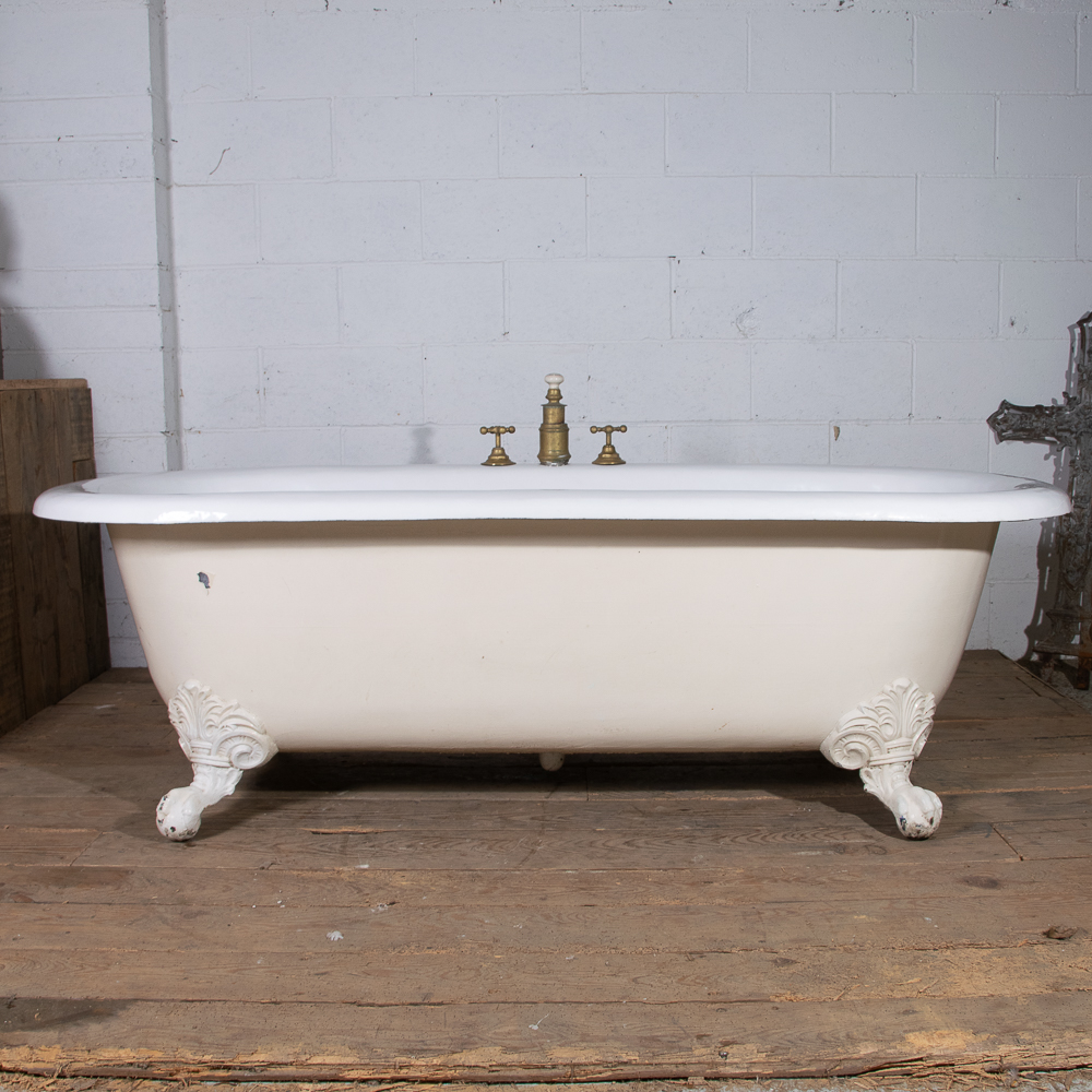 A huge and rare late 19th century double ended French cast iron freestanding bath manufactured by Porcher Paris.  The rolledge measures 13cm wide!  Intergrated taps, waste and water filling system. This bath was salvaged from a large bourgeoise house in the 16eme arrondissement in Paris.