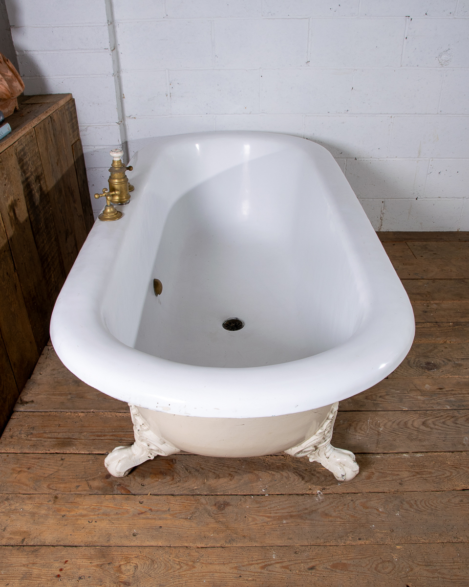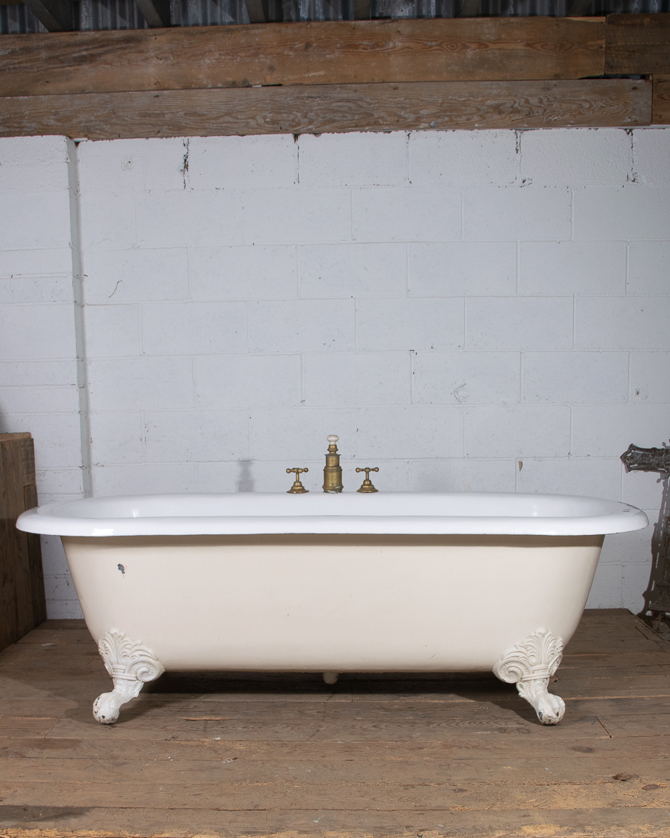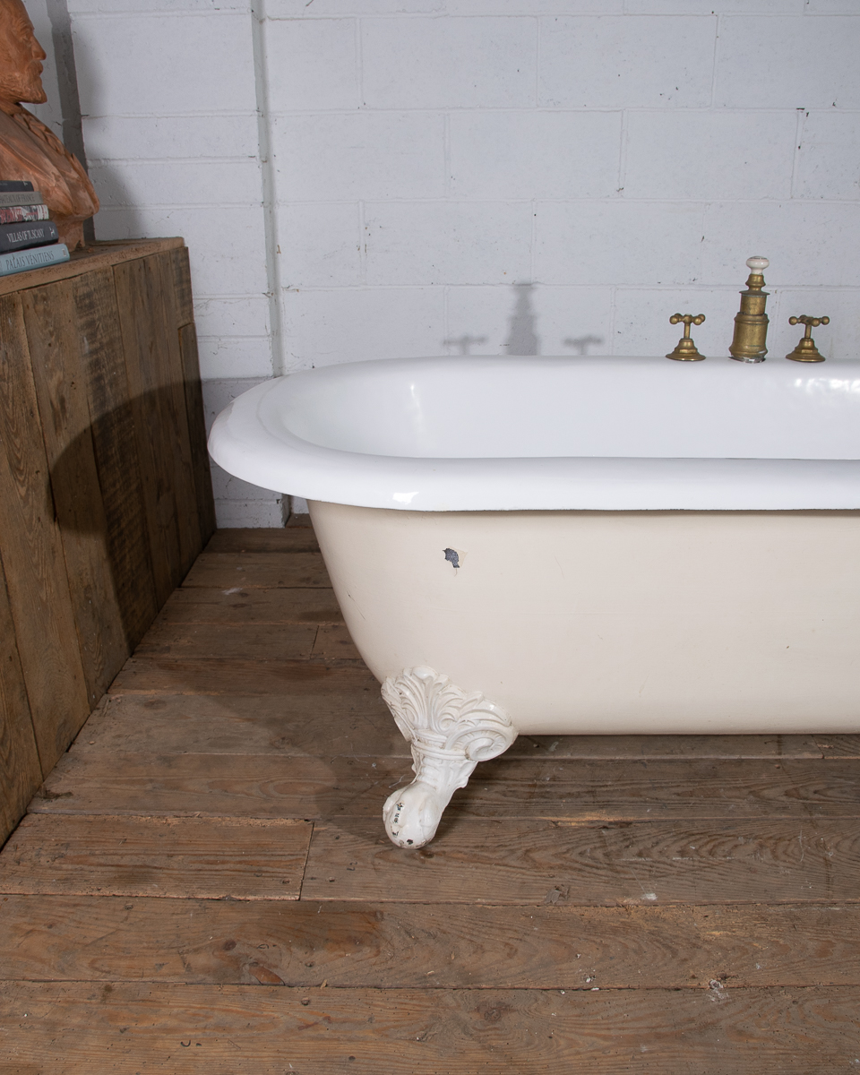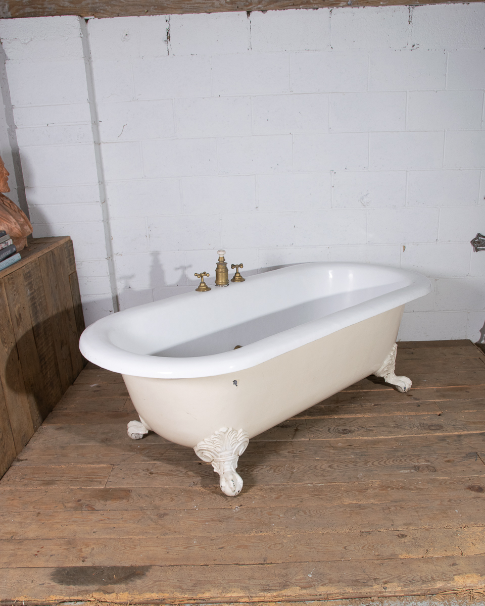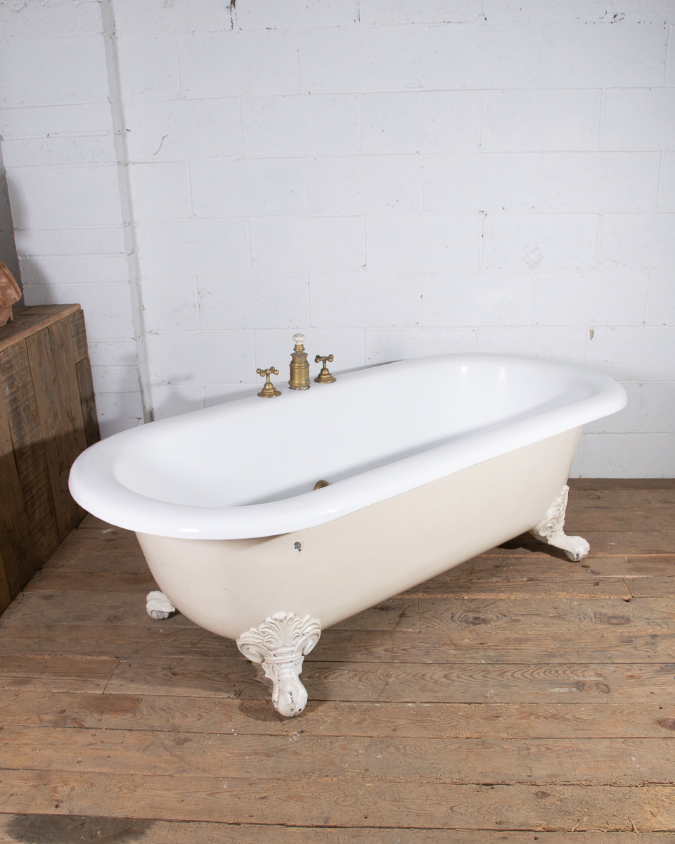 A huge and rare late 19th century double ended French cast iron freestanding bath manufactured by Porcher Paris.  The rolledge measures 13cm wide!  Intergrated taps, waste and water filling system. This bath was salvaged from a large bourgeoise house in the 16eme arrondissement in Paris.