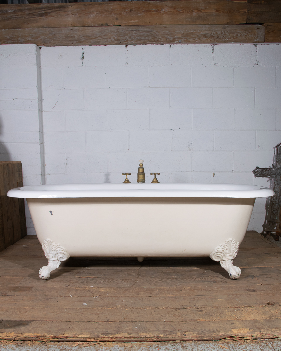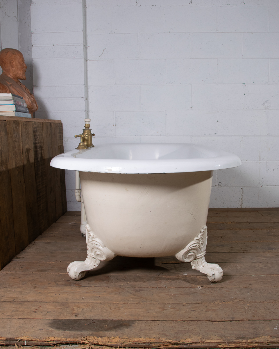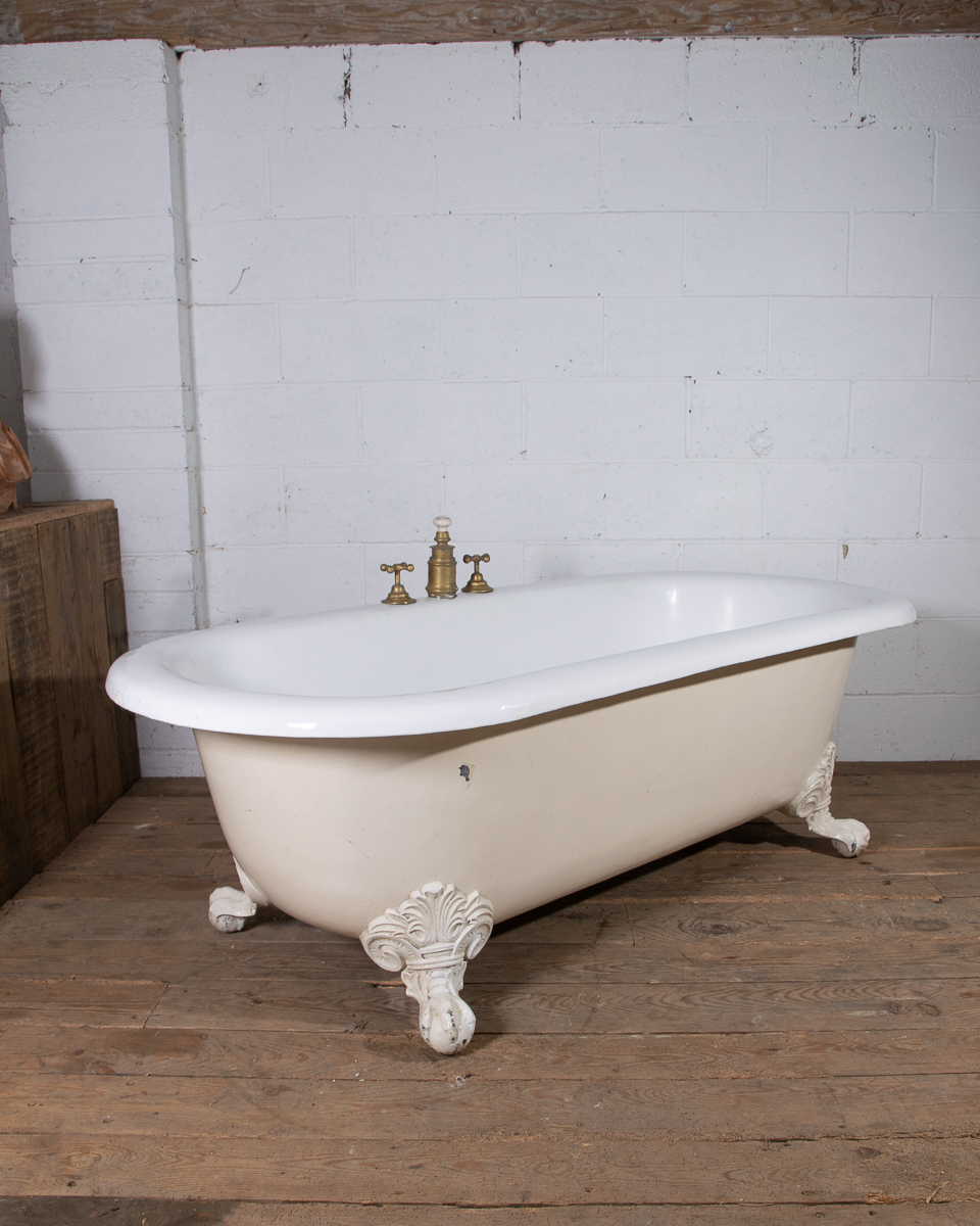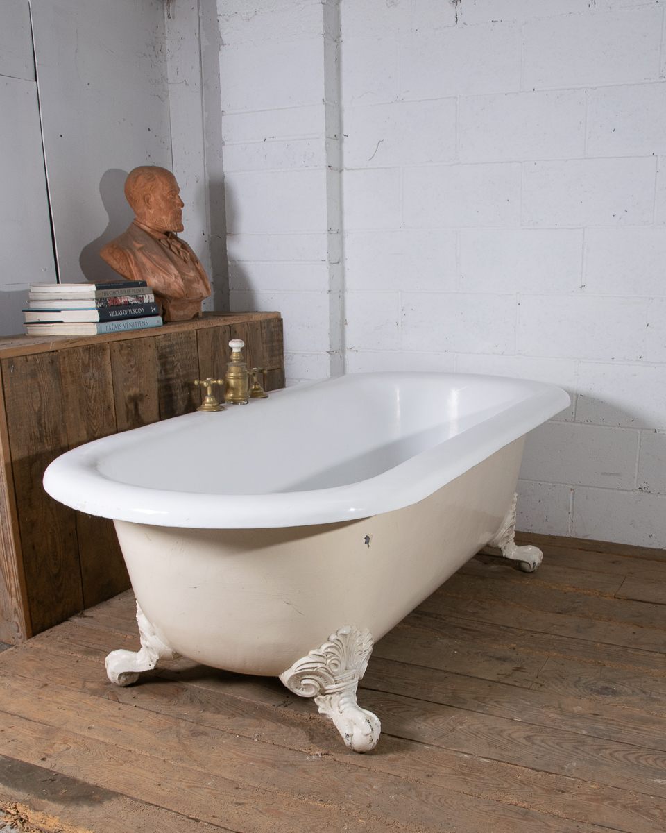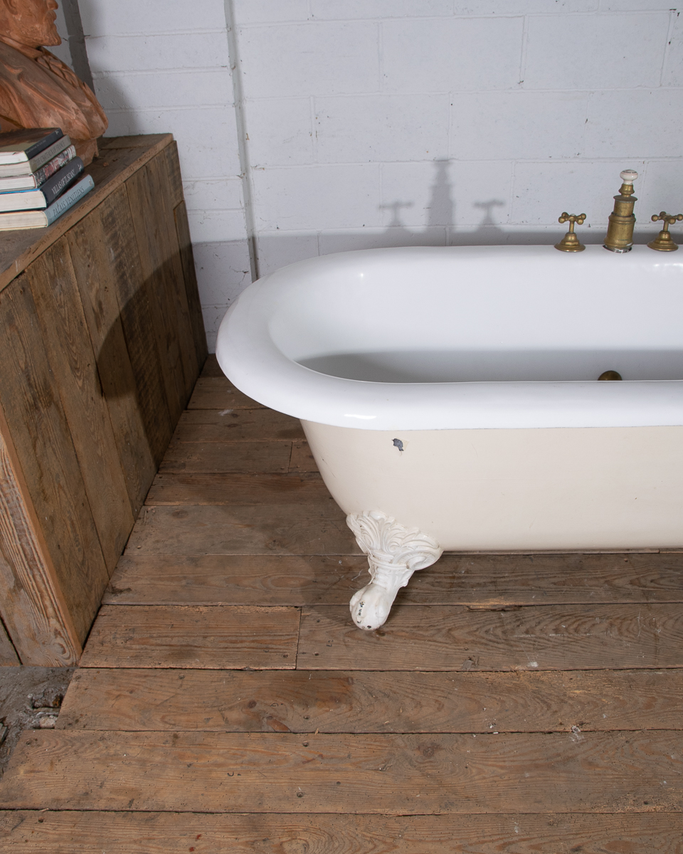 A huge and rare late 19th century double ended French cast iron freestanding bath manufactured by Porcher Paris.  The rolledge measures 13cm wide!  Intergrated taps, waste and water filling system. This bath was salvaged from a large bourgeoise house in the 16eme arrondissement in Paris.