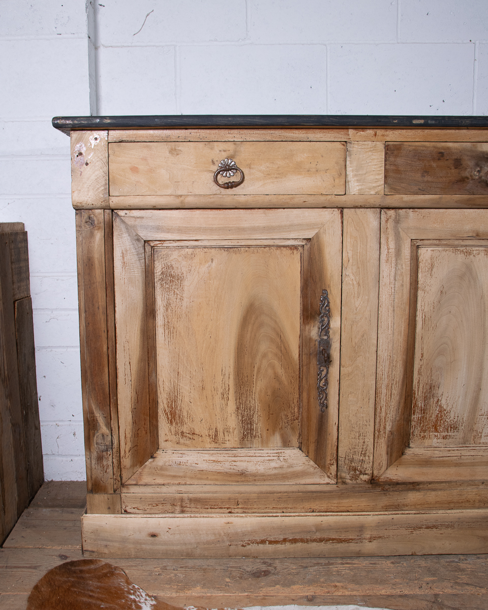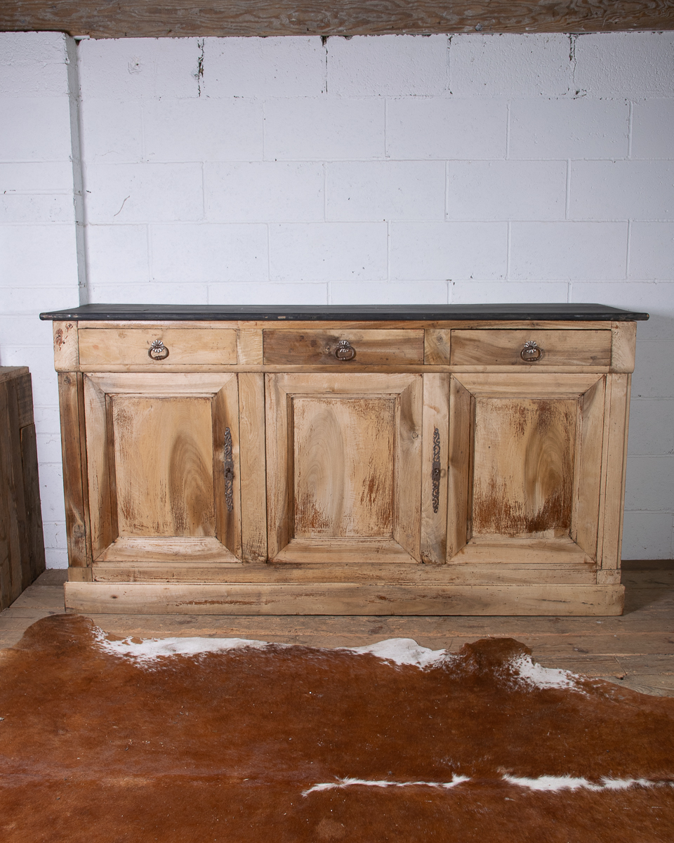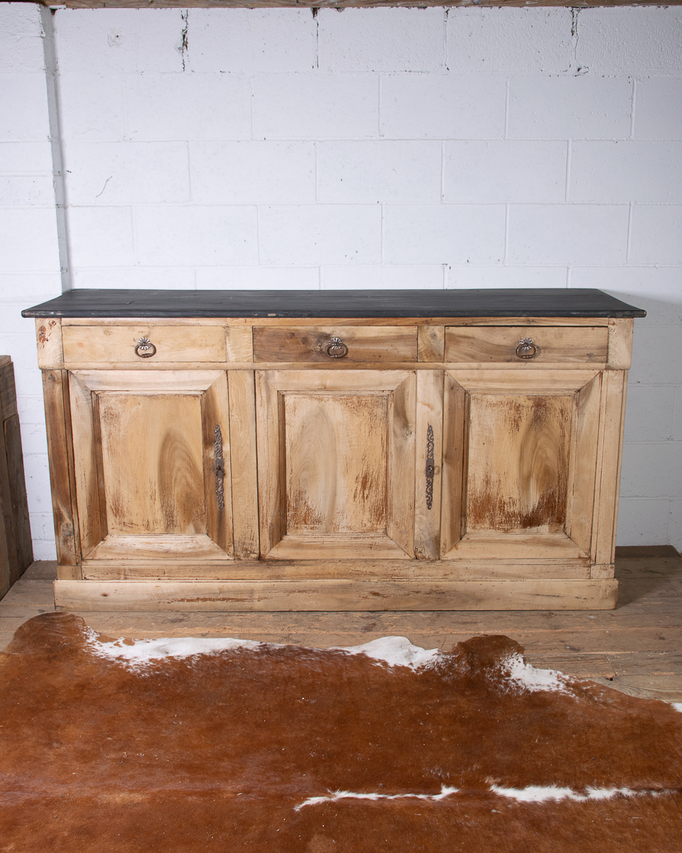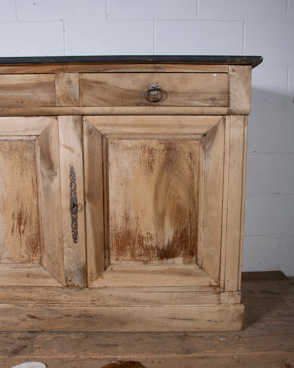 A classic provincial 19th century French walnut cupboard sideboard from the Jura region of France. Peg construction, dovetail joints in the drawers. Originally in a Jura farmhouse the cupboard has been beautifully stripped and waxed to give it a cleaner, modern look, ideal for a restored English country property.