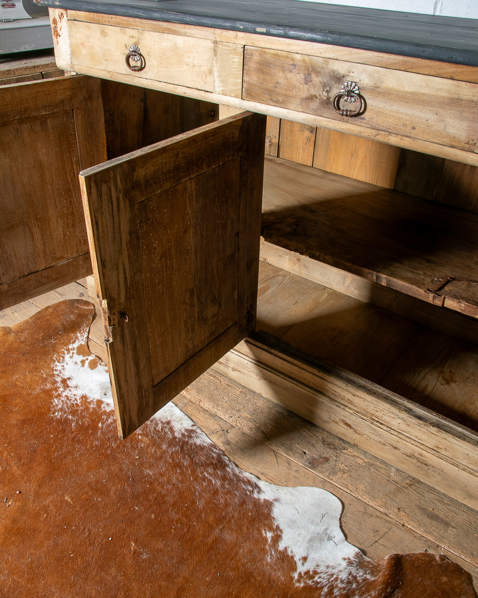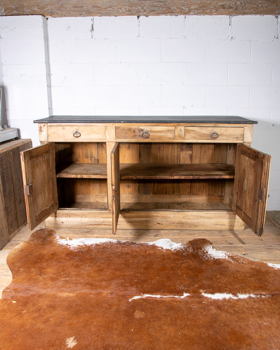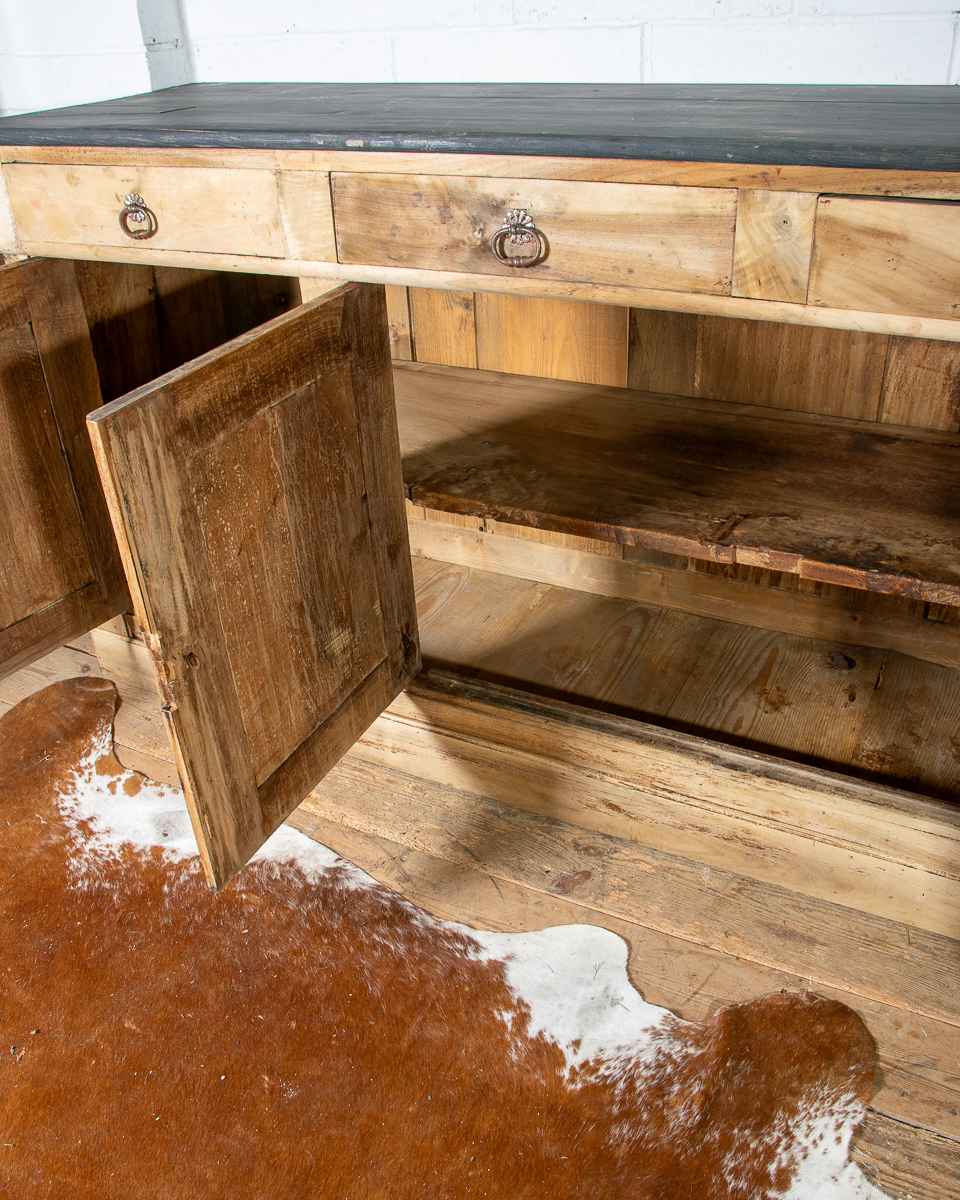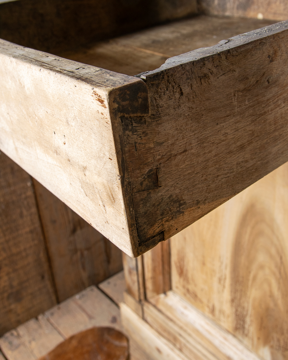 A classic provincial 19th century French walnut cupboard sideboard from the Jura region of France. Peg construction, dovetail joints in the drawers. Originally in a Jura farmhouse the cupboard has been beautifully stripped and waxed to give it a cleaner, modern look, ideal for a restored English country property.