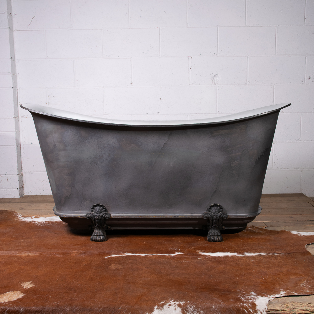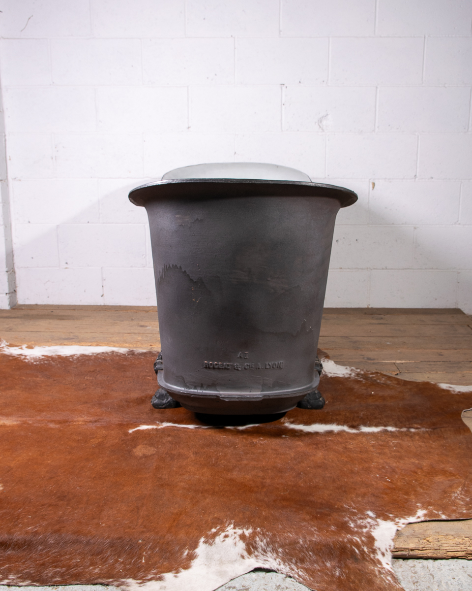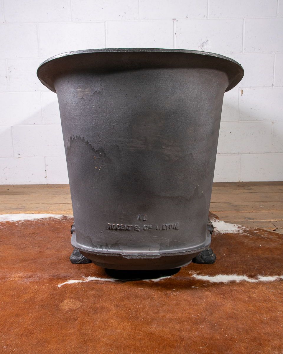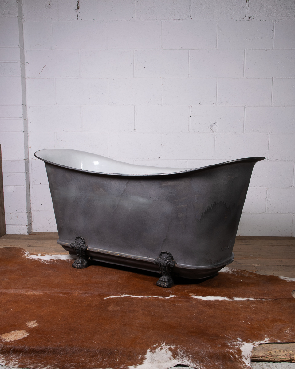 A 19th century Rogeat (Lyon) Empire bath.  An A1 model which was their first so made around 1860.  On its original cast iron feet which have lovely black patina.  The original interior enamel is in good usable condition for its age with some minor wear and tear which could be patched up.  The exterior has been shot blasted by us ready for the customer to decide on exterior finishing.