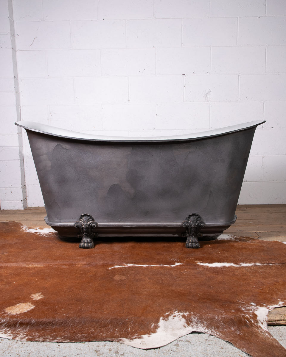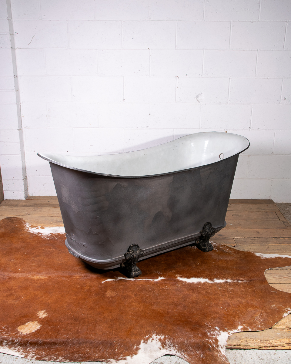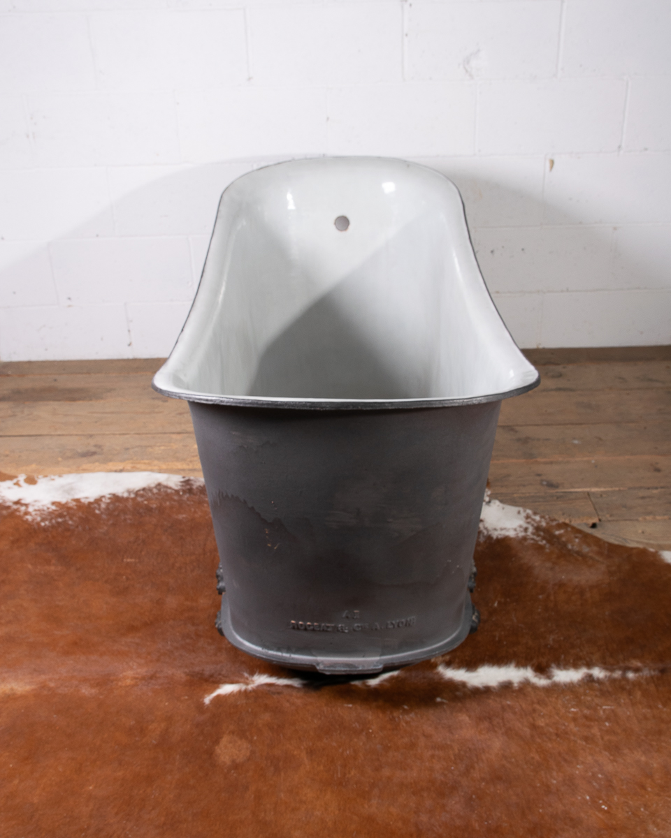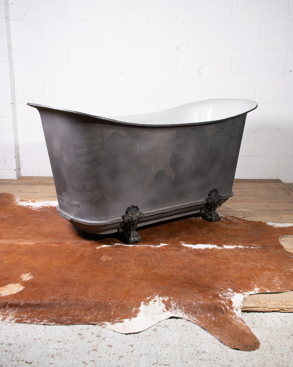 A 19th century Rogeat (Lyon) Empire bath.  An A1 model which was their first so made around 1860.  On its original cast iron feet which have lovely black patina.  The original interior enamel is in good usable condition for its age with some minor wear and tear which could be patched up.  The exterior has been shot blasted by us ready for the customer to decide on exterior finishing.