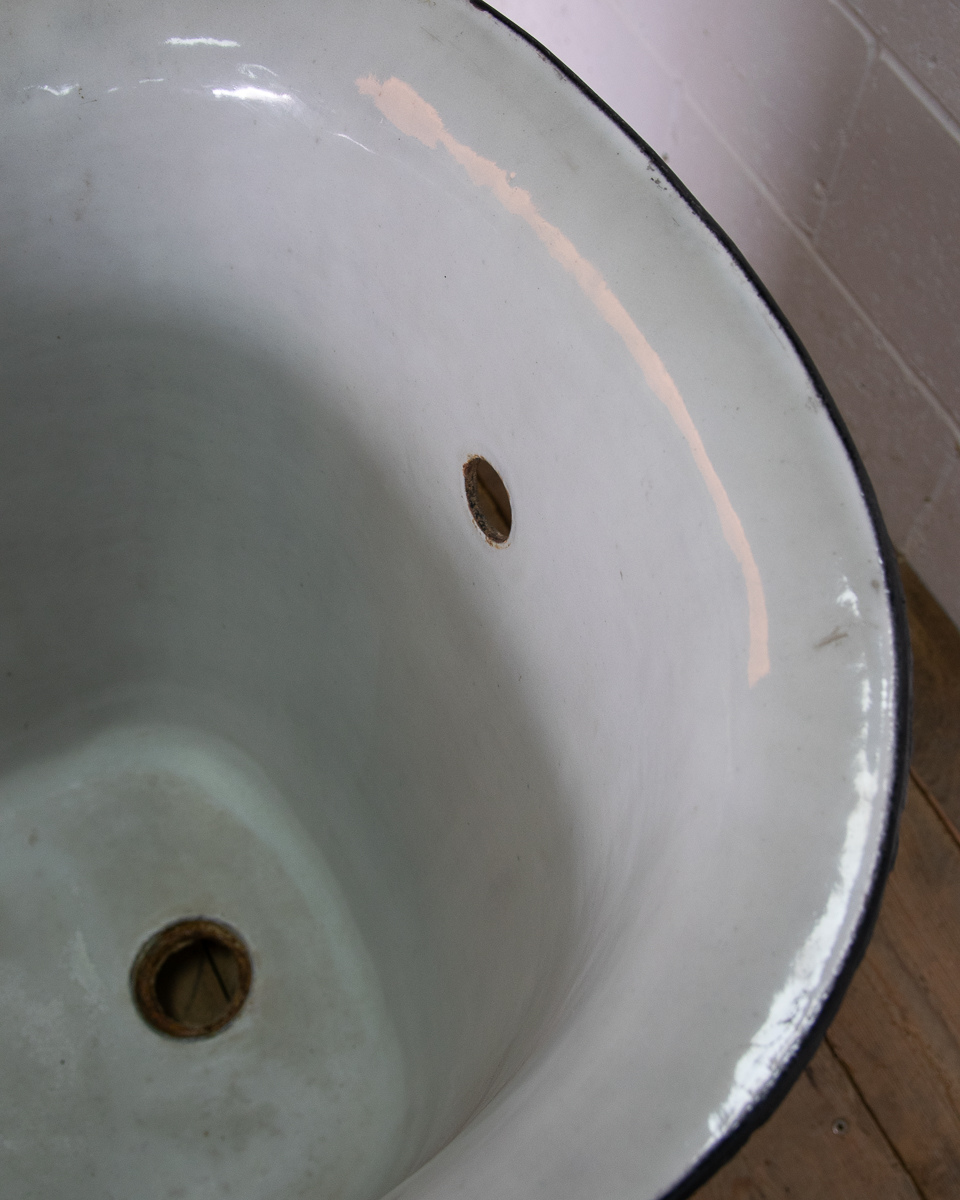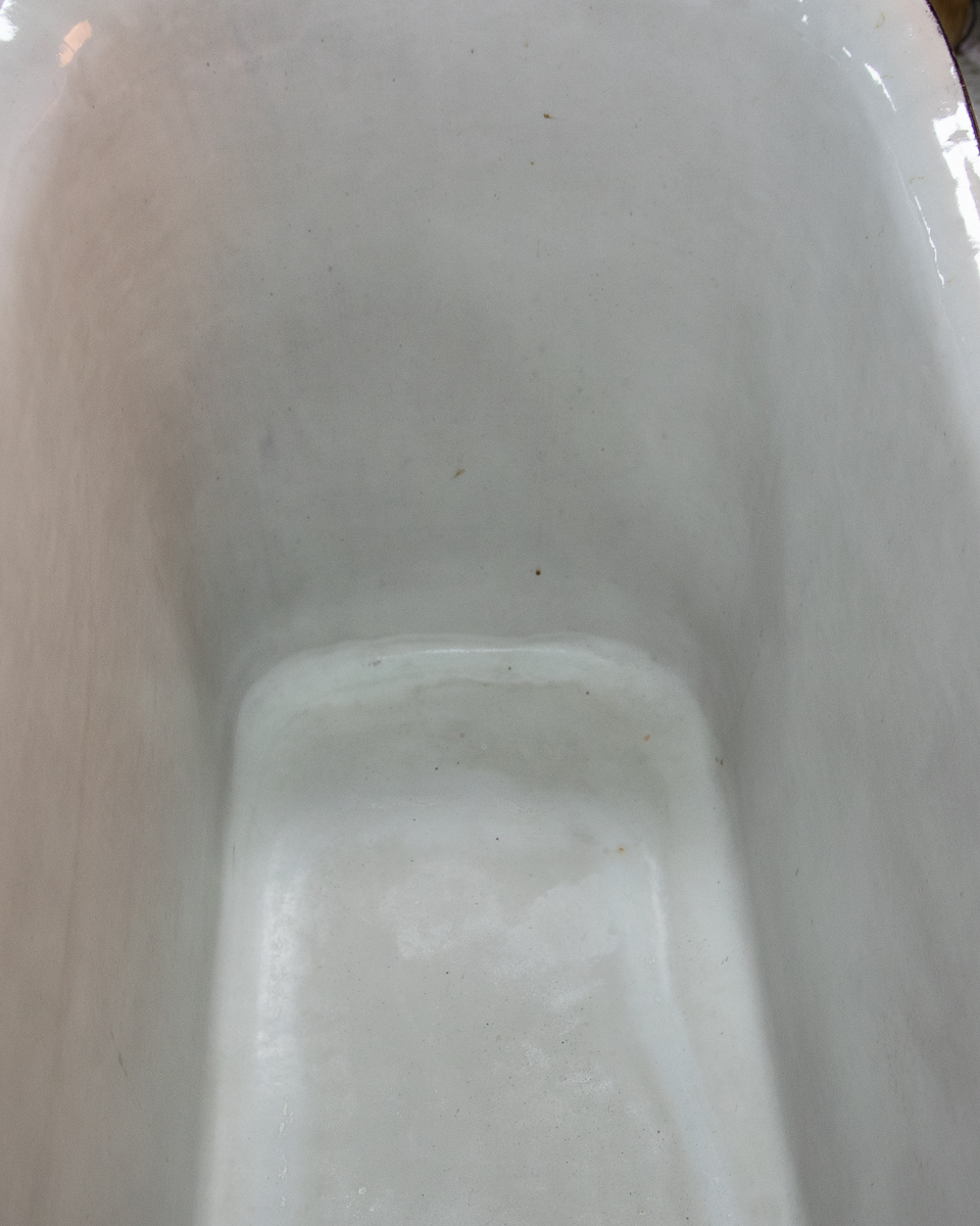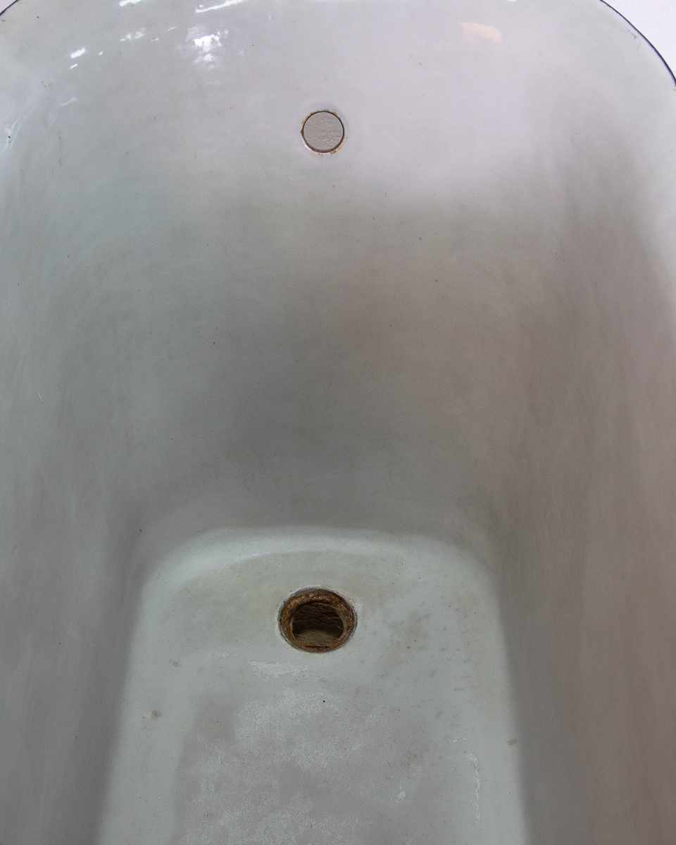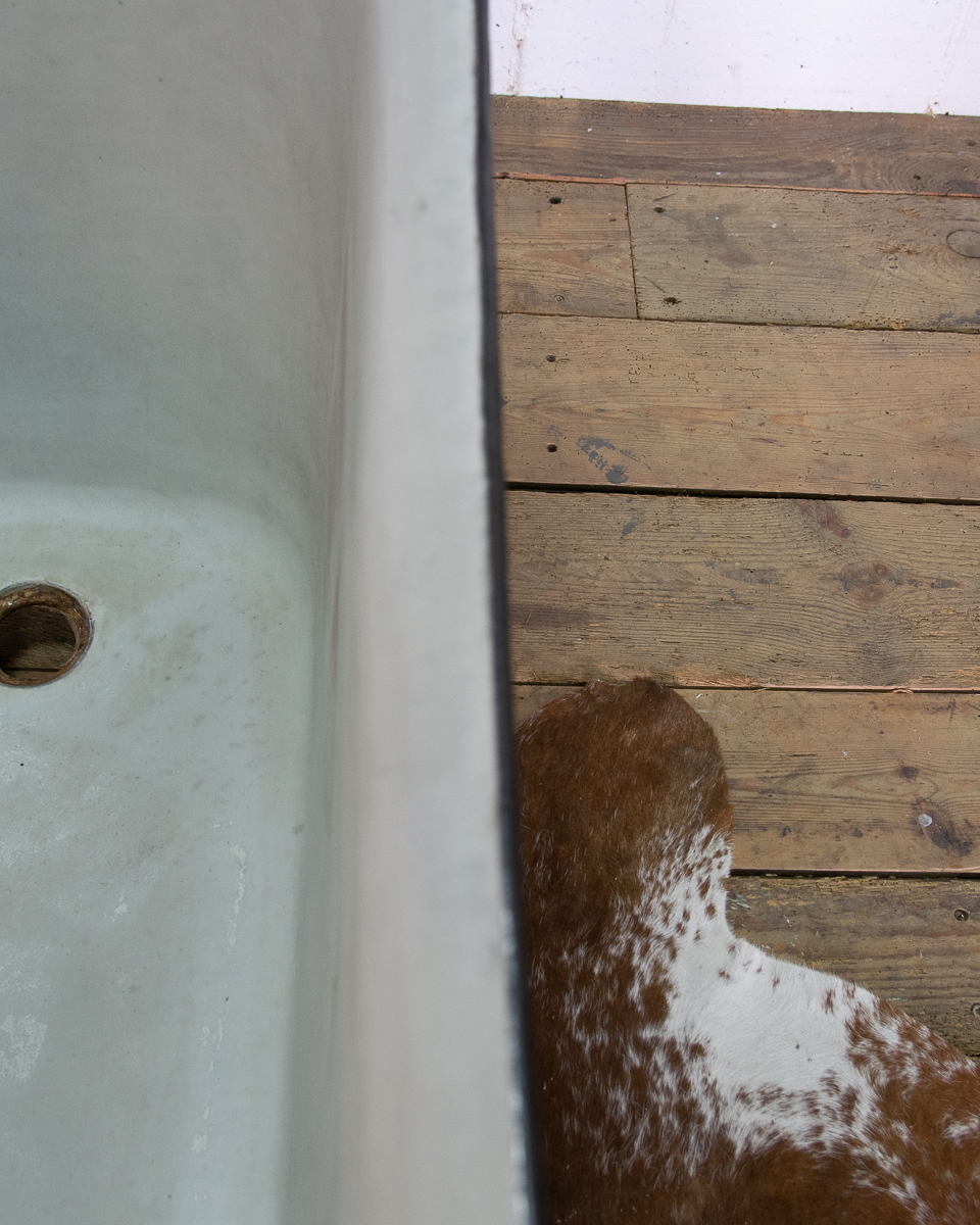 A 19th century Rogeat (Lyon) Empire bath.  An A1 model which was their first so made around 1860.  On its original cast iron feet which have lovely black patina.  The original interior enamel is in good usable condition for its age with some minor wear and tear which could be patched up.  The exterior has been shot blasted by us ready for the customer to decide on exterior finishing.
