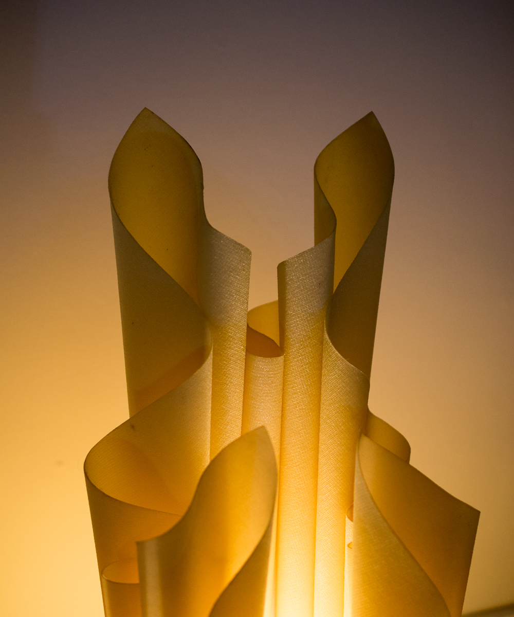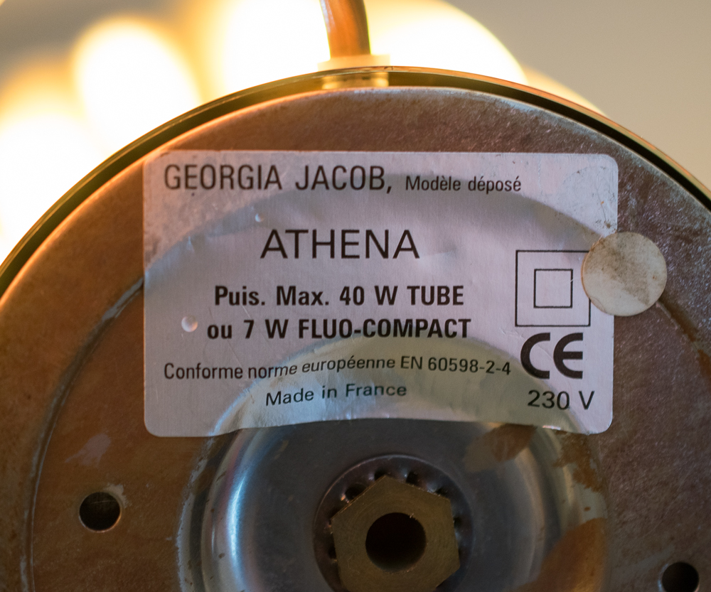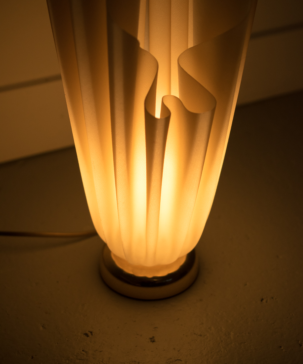 This “Athena” lamp was designed by Georgia Jacob and was produced in France in the 1970s. She was inspired by the form of a hanging handtowel and is made from curved synthetic resin.