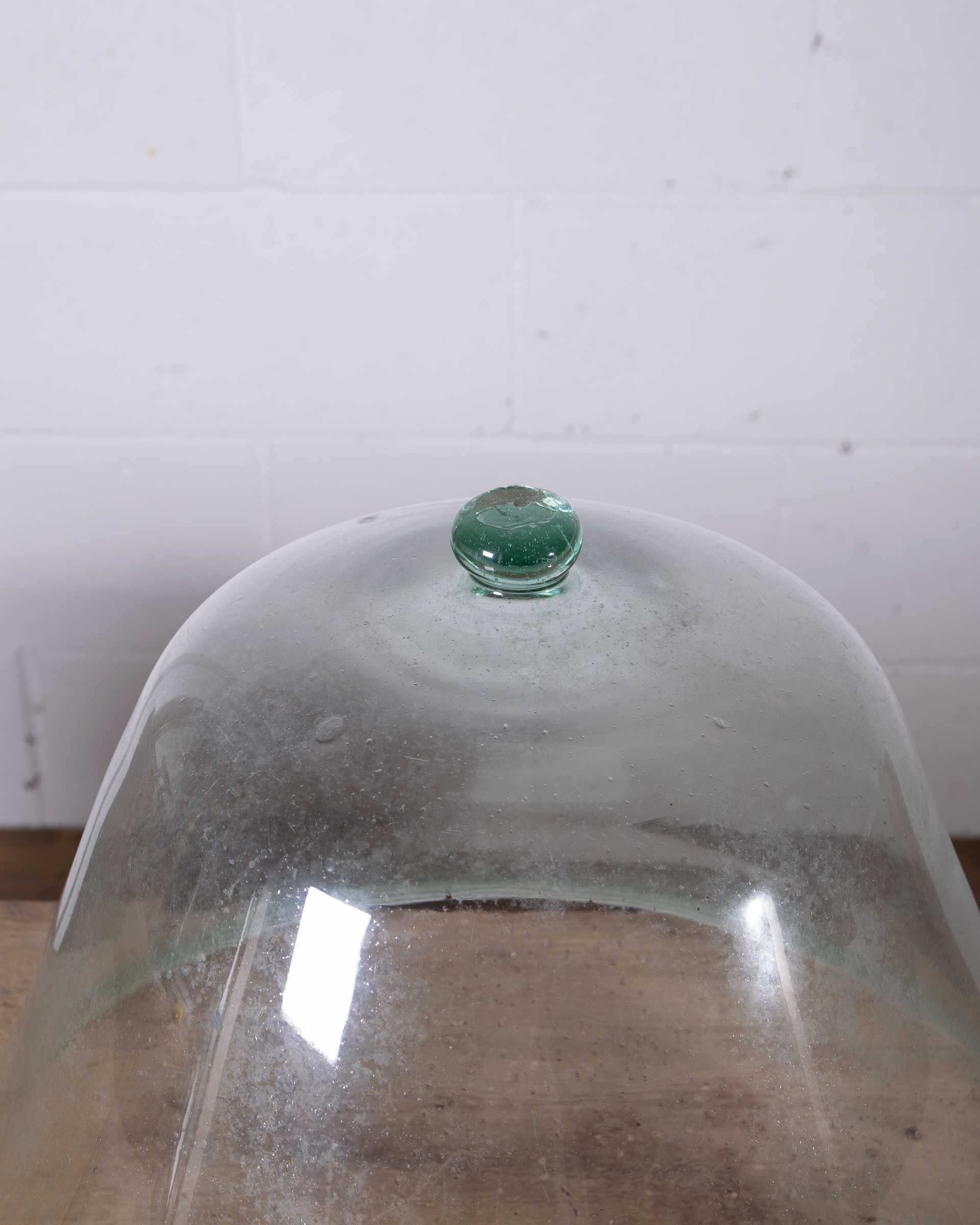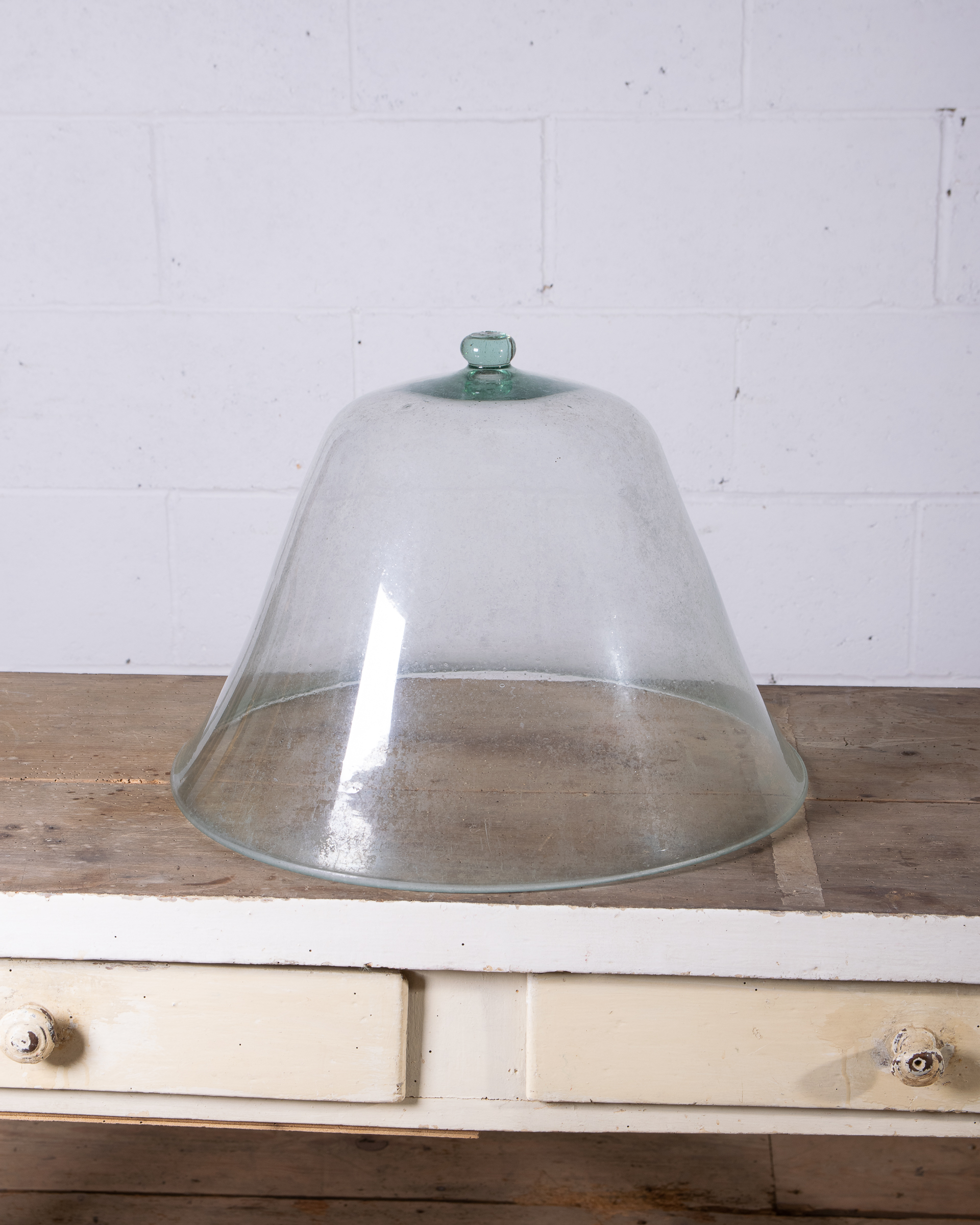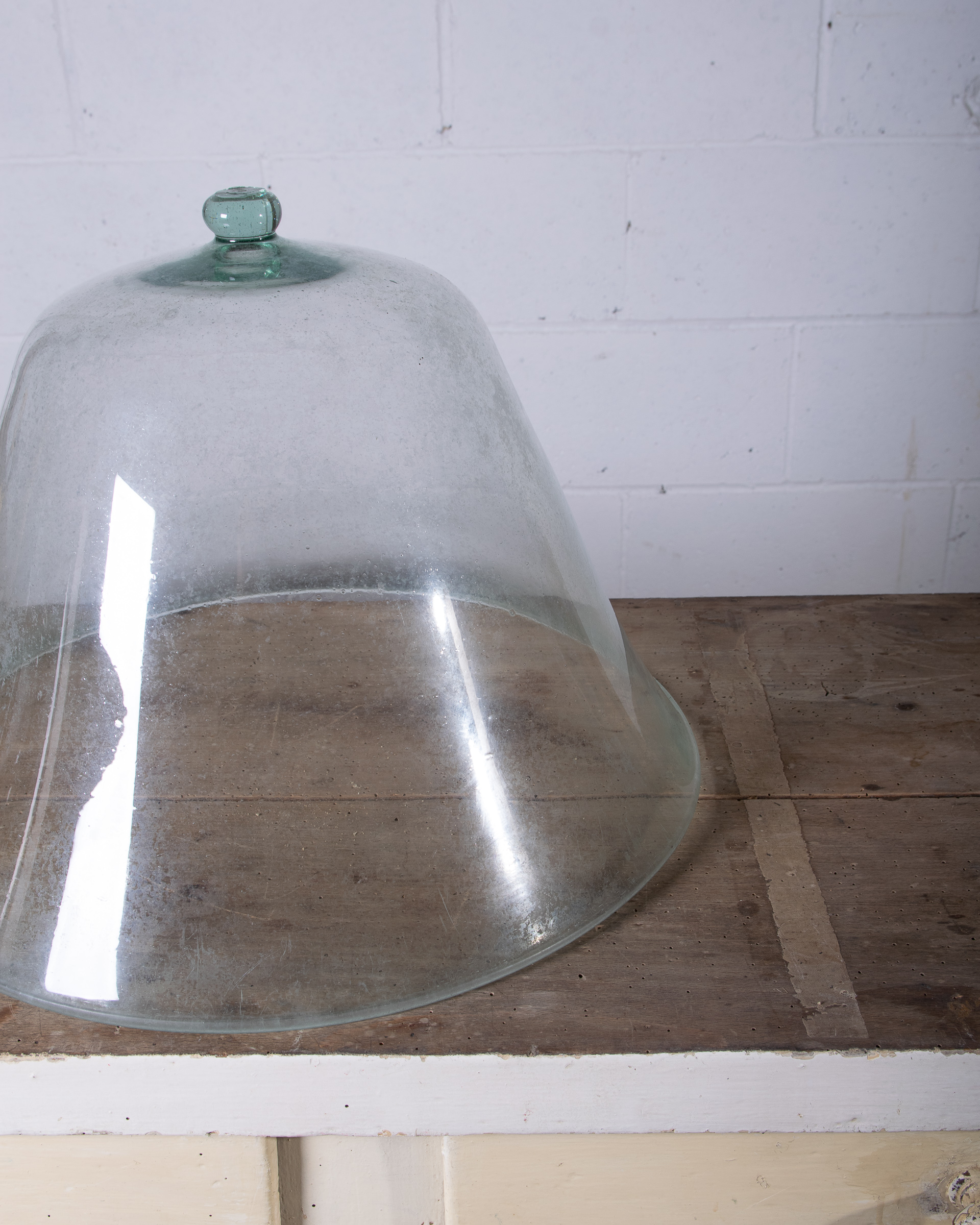 A large hand-blown glass melon garden cloche. Formed as a single piece of clear glass with a unique and irregular form and imperfections that add to its originality and charm.