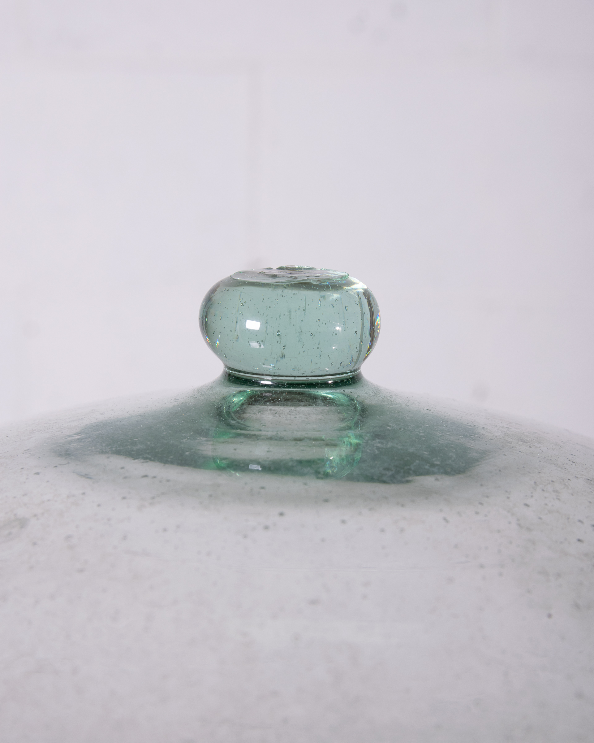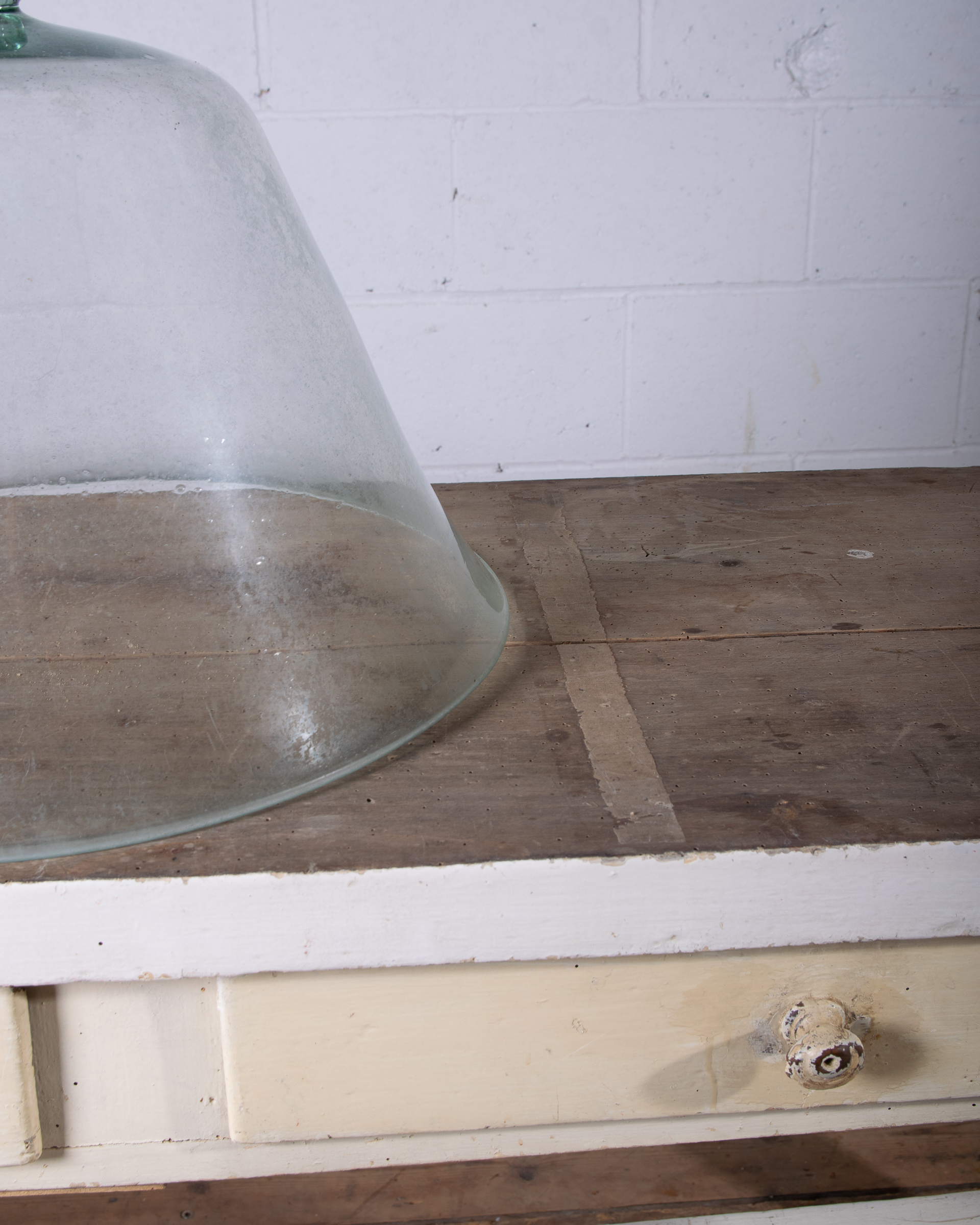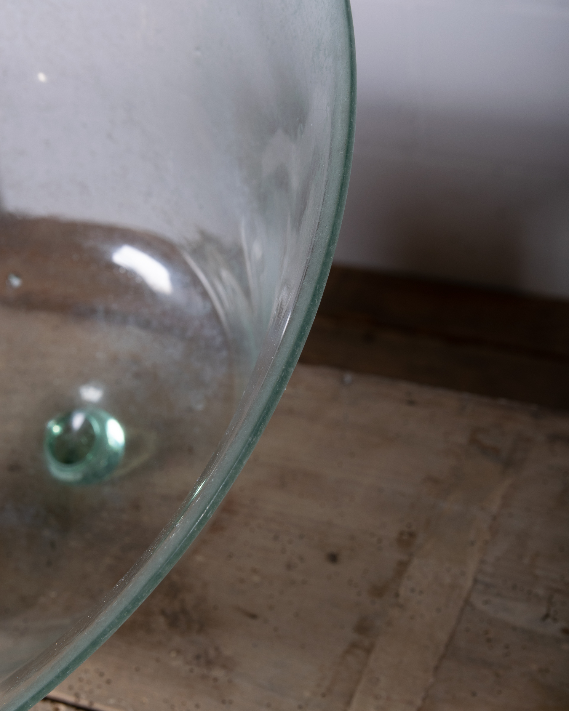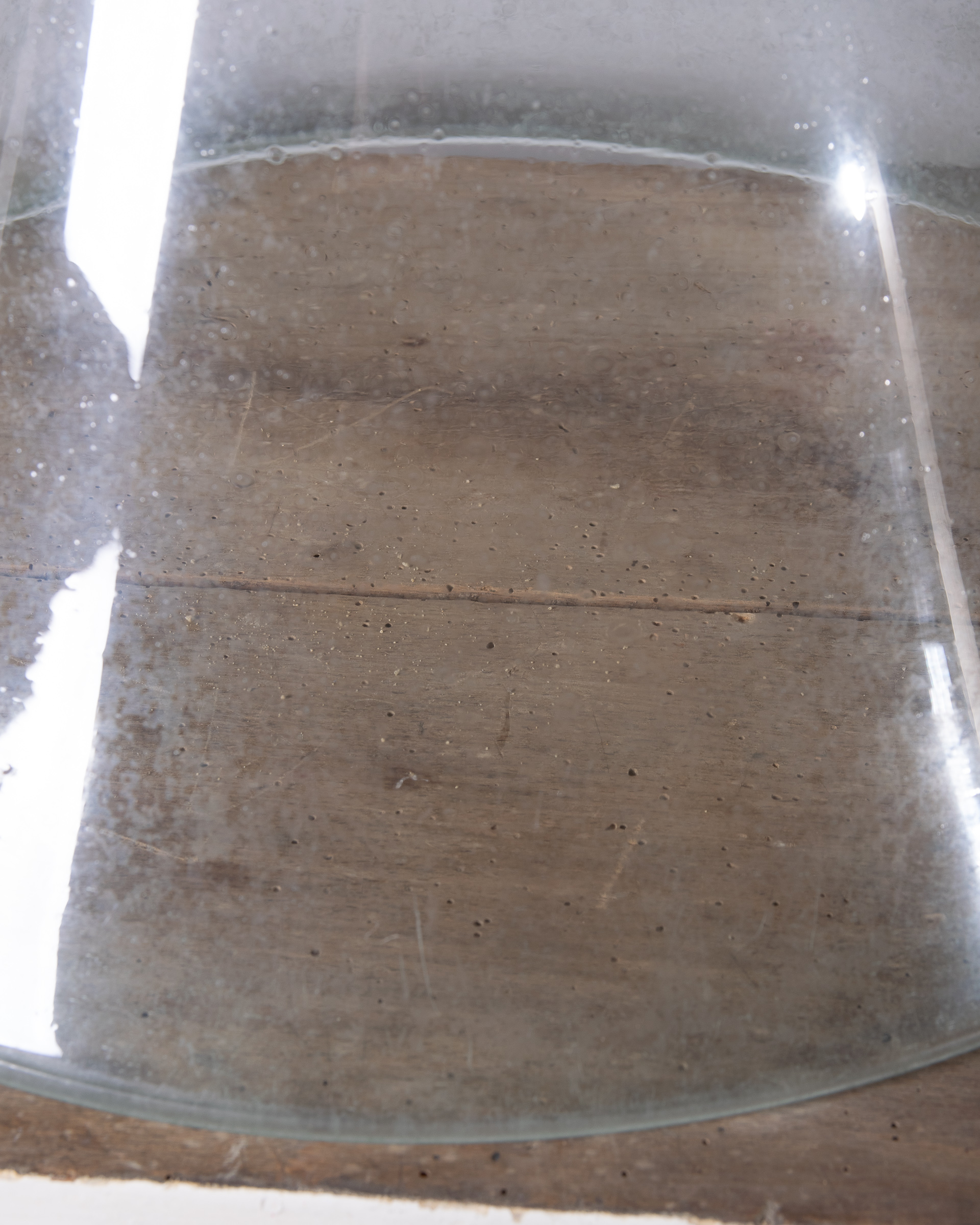 A large hand-blown glass melon garden cloche. Formed as a single piece of clear glass with a unique and irregular form and imperfections that add to its originality and charm.