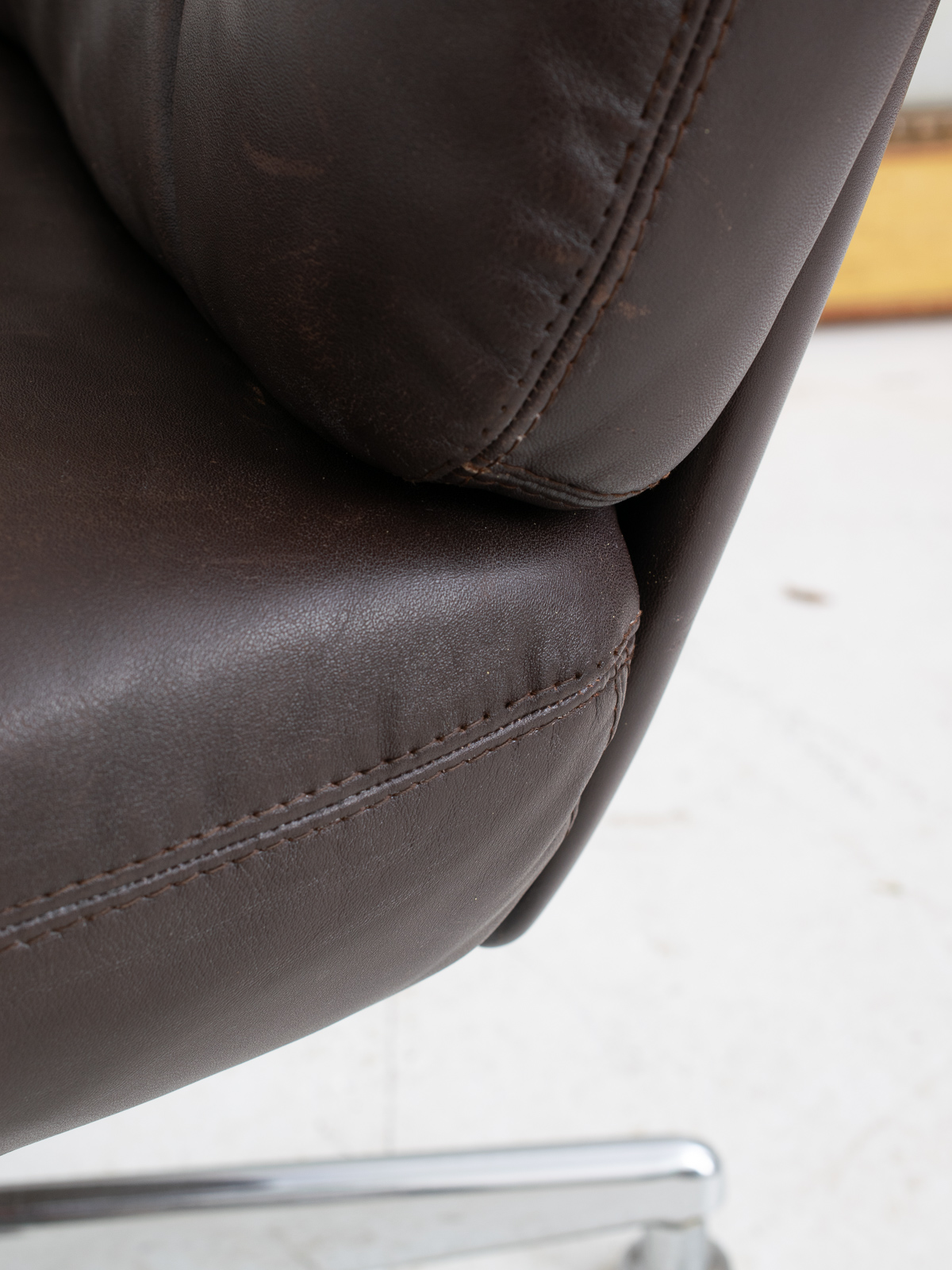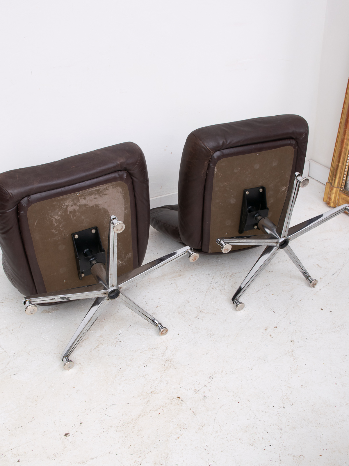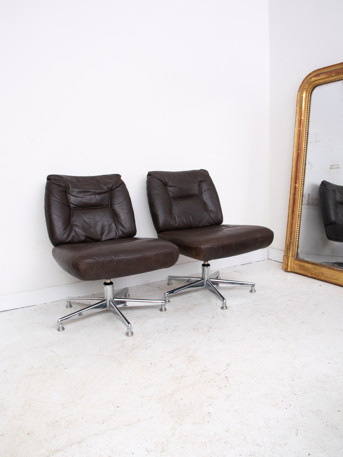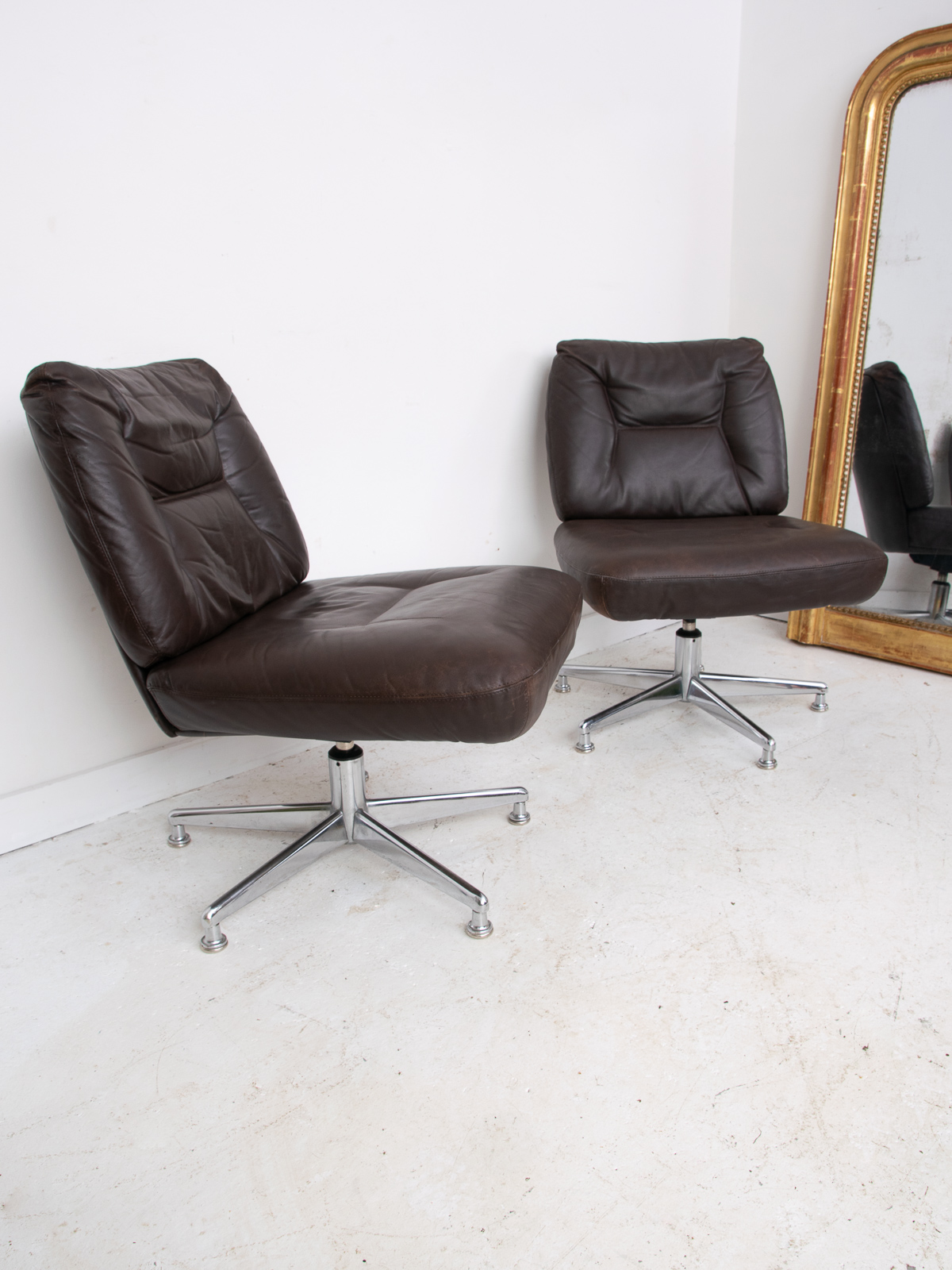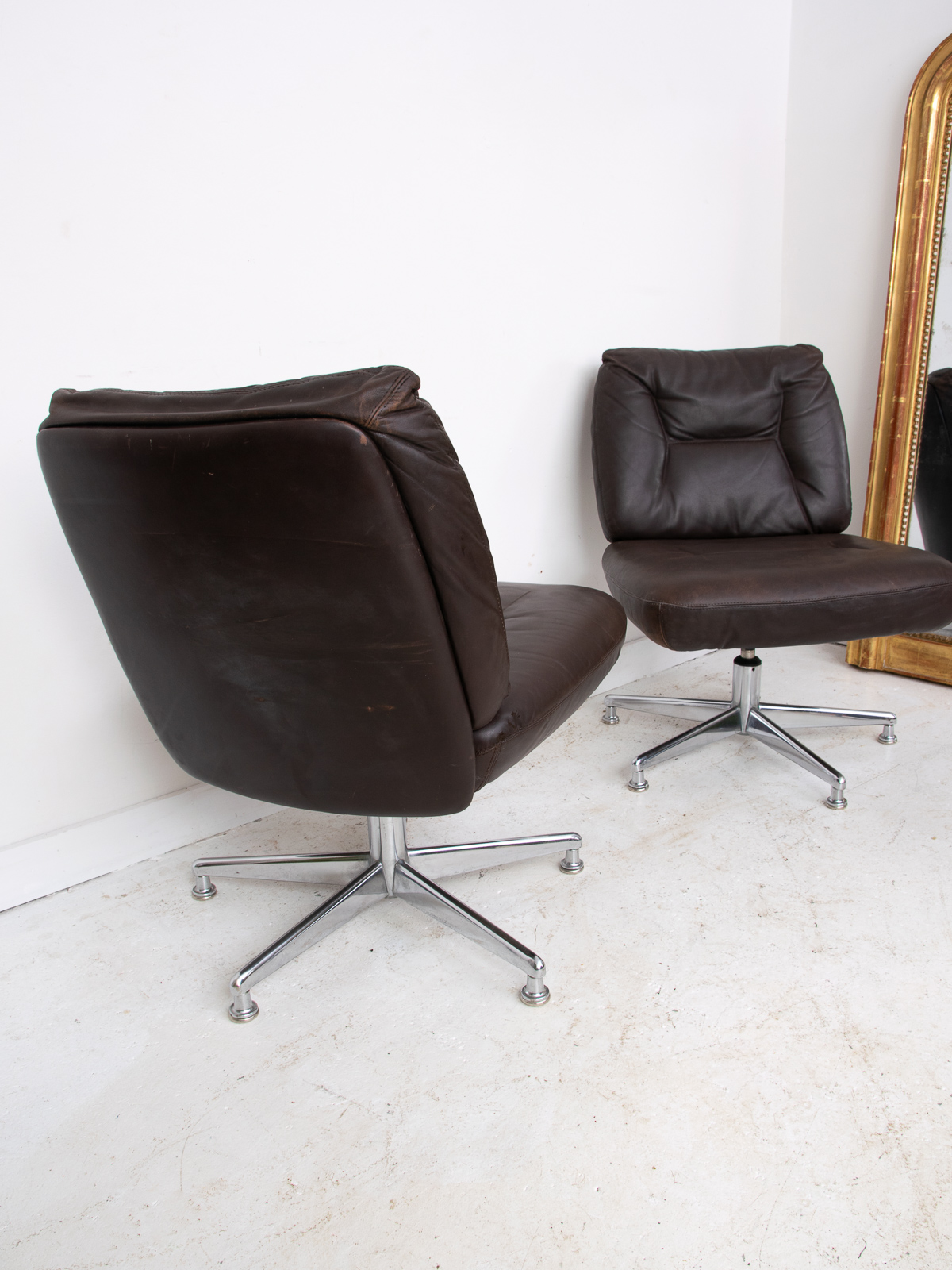 1960/70s French dark brown leather office chair pair. No rips or tears, just the right amount of wear.