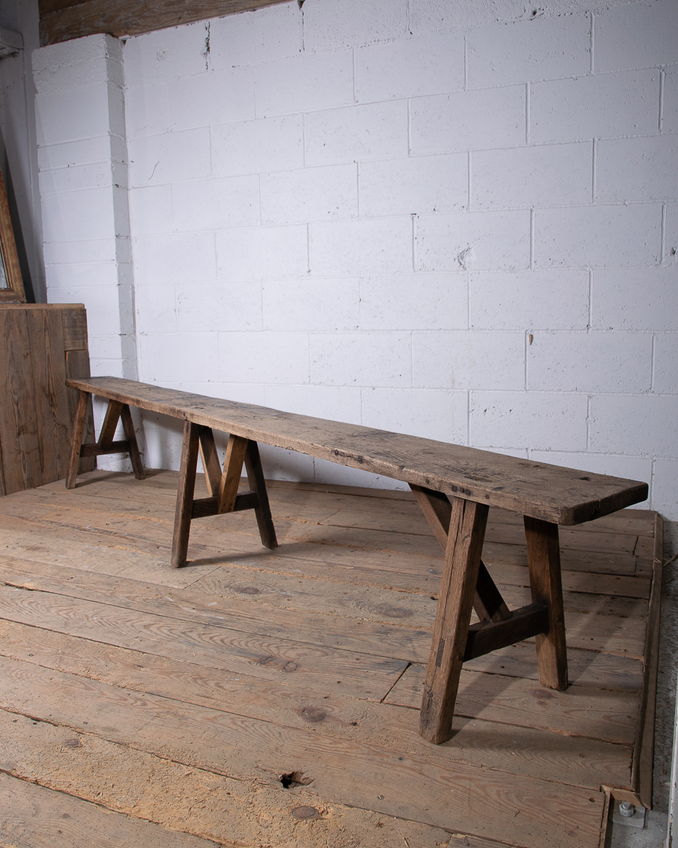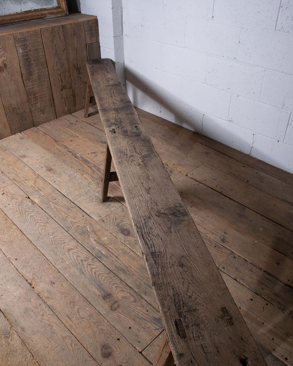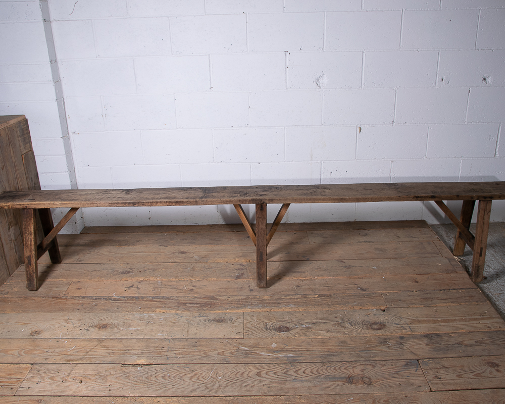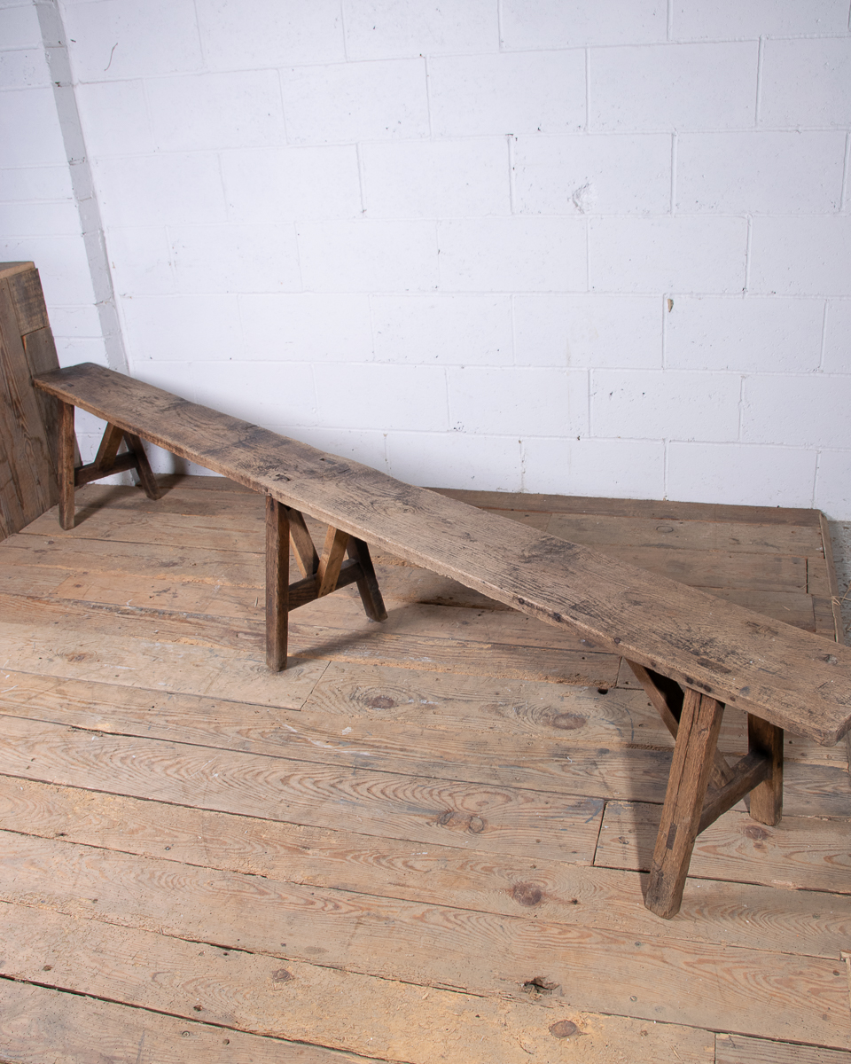 A long 19th century French oak bench. Lovely aged colour to the wood.
