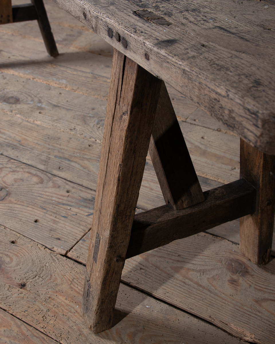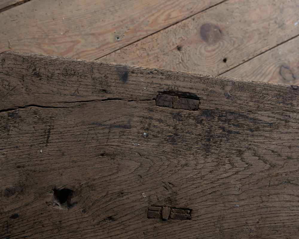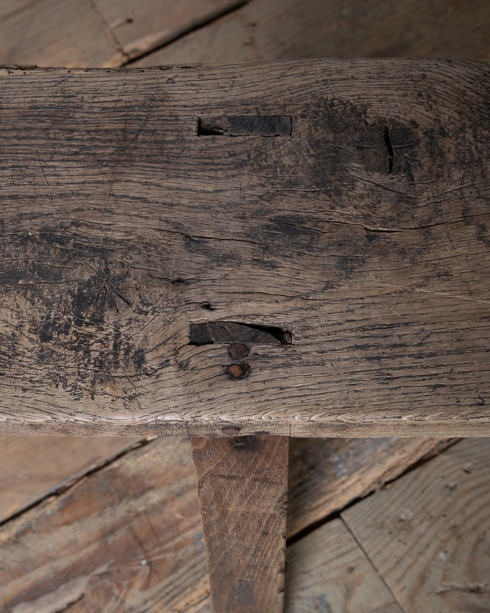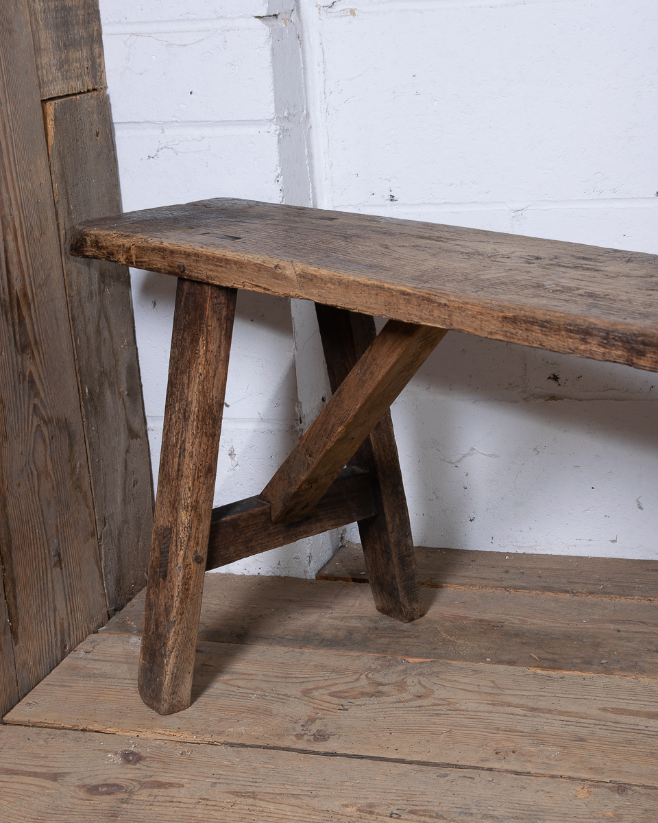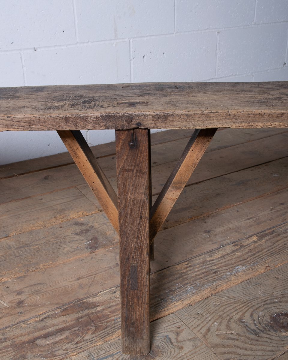 A long 19th century French oak bench. Lovely aged colour to the wood.