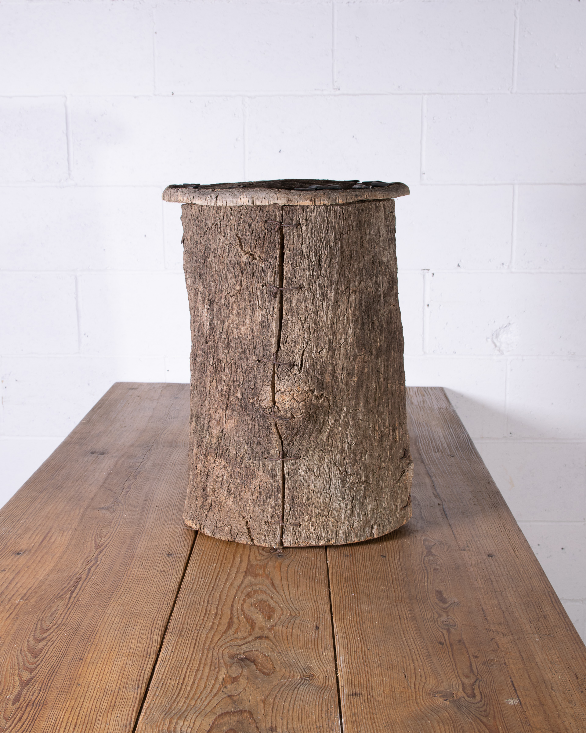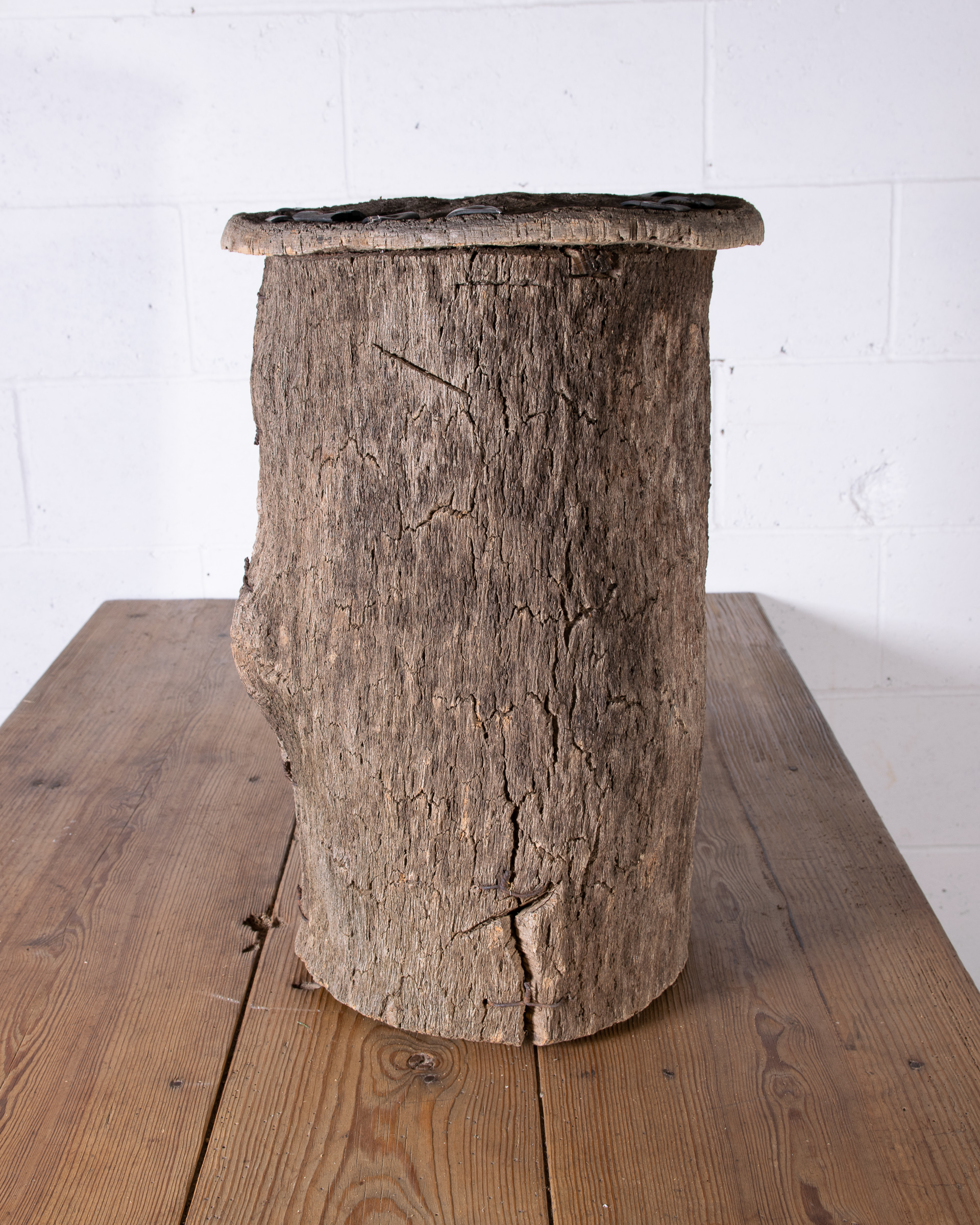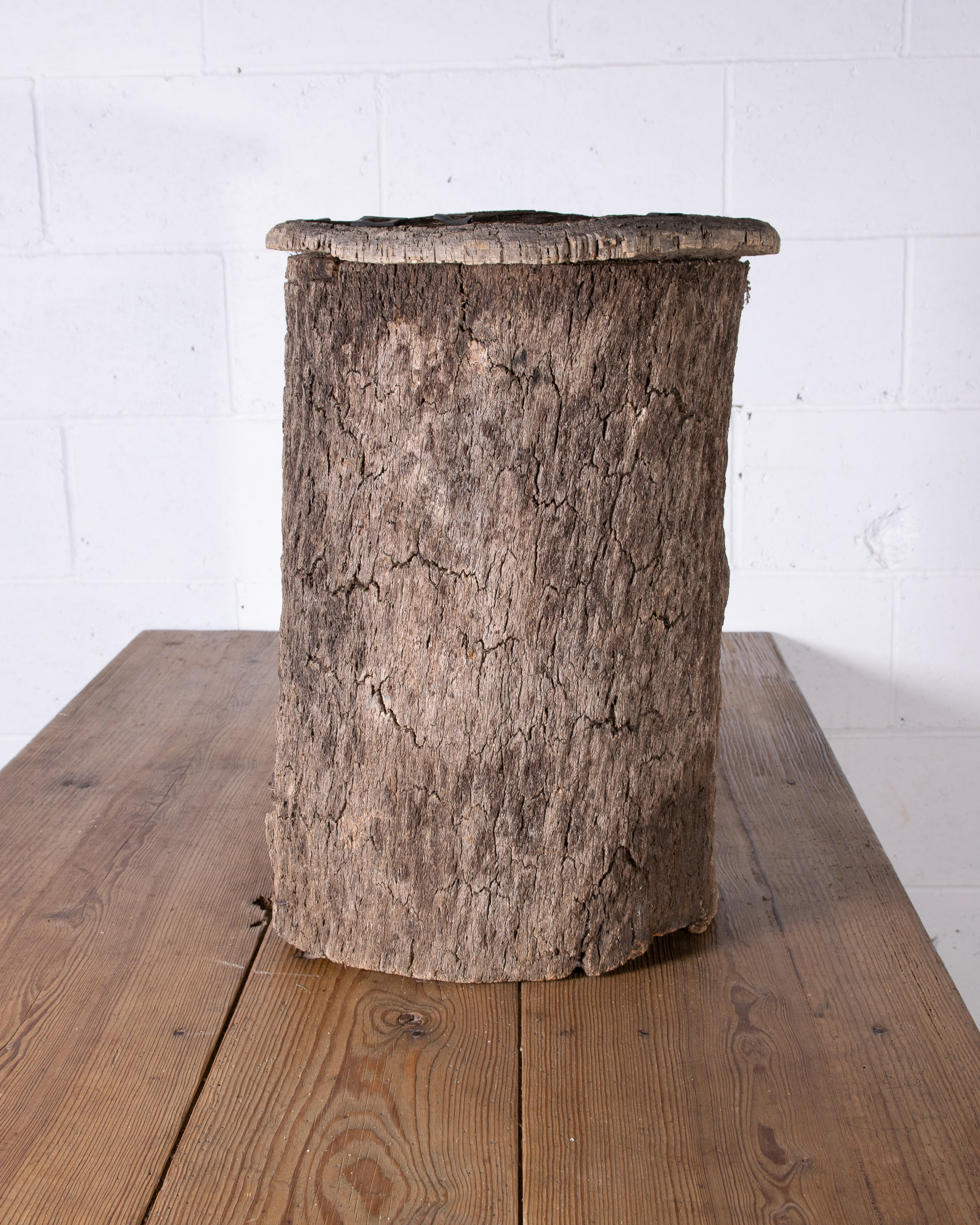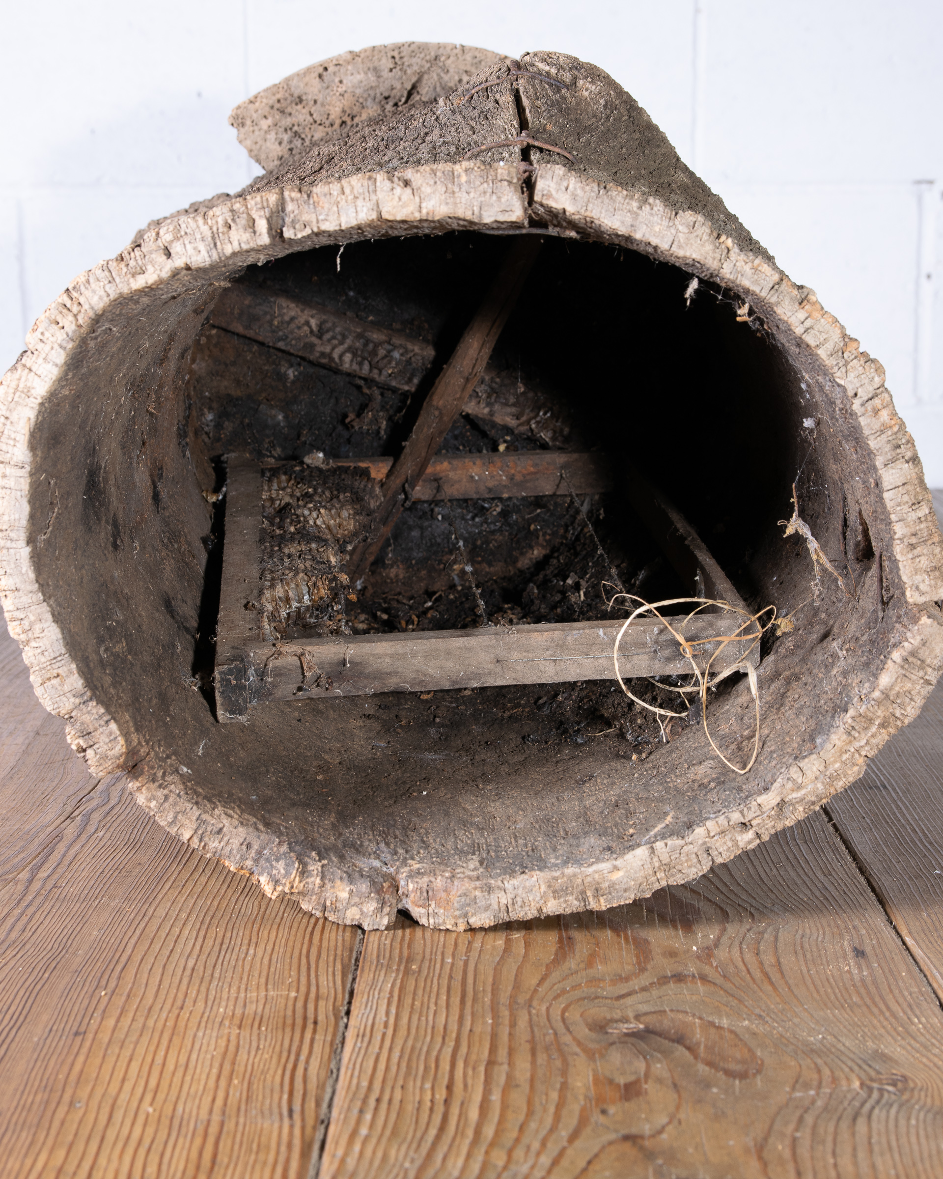 Old cork beehive from Portugal. Romans first began making beehives out of this light versatile tree bark over 2000 years ago because of its lack of heat conductivity allowing bees to stay cool inside.