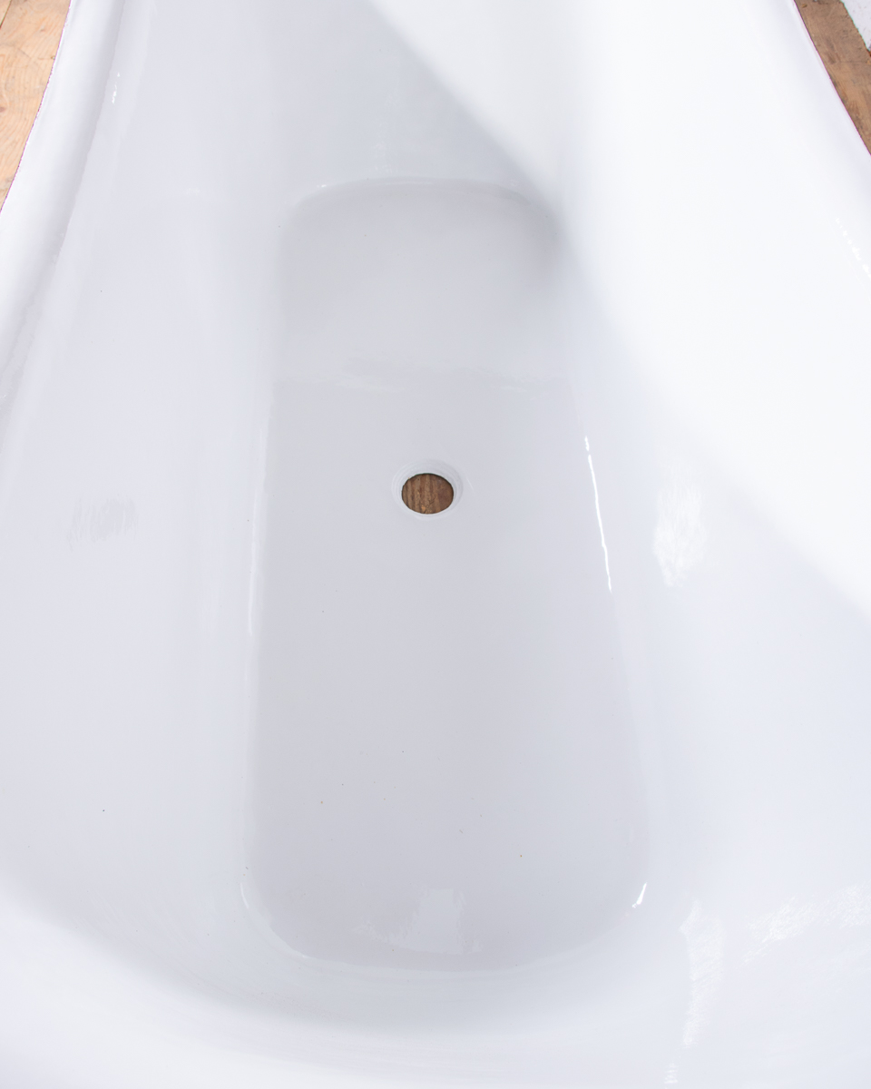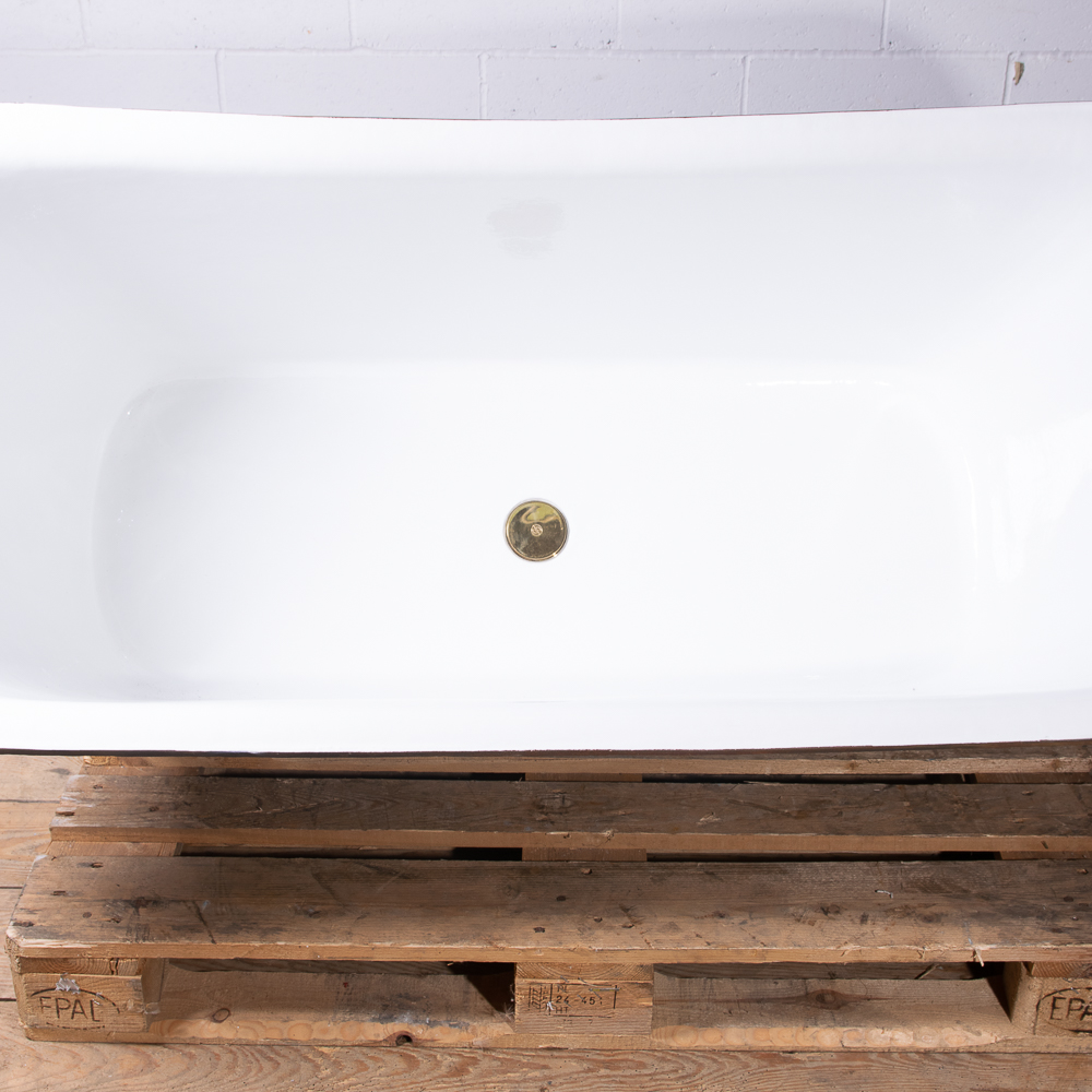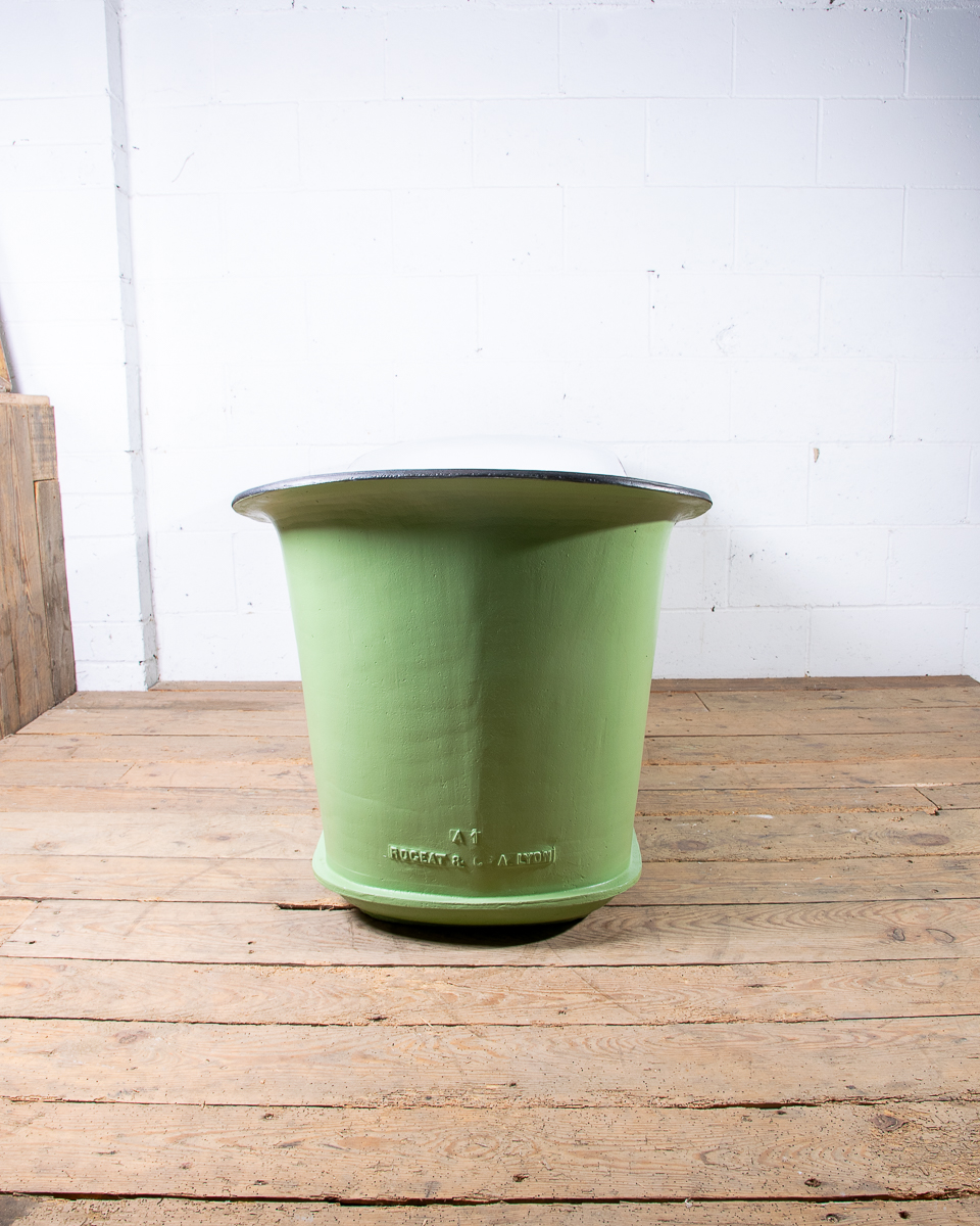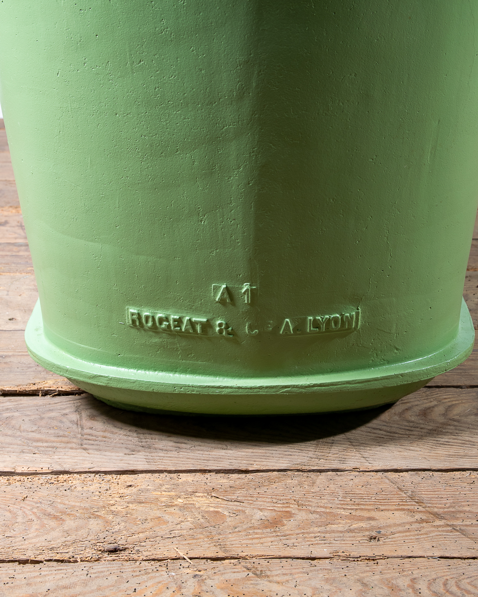 A late 19th century cast iron empire bath manufactured by Rogeat (Lyon). Marked at one of the ends of the bathtub Rogeat model number A1. The bath has been recently resurfaced and the exterior sandblasted and painted in Little Greene Tom’s oil eggshell (colour Garden).