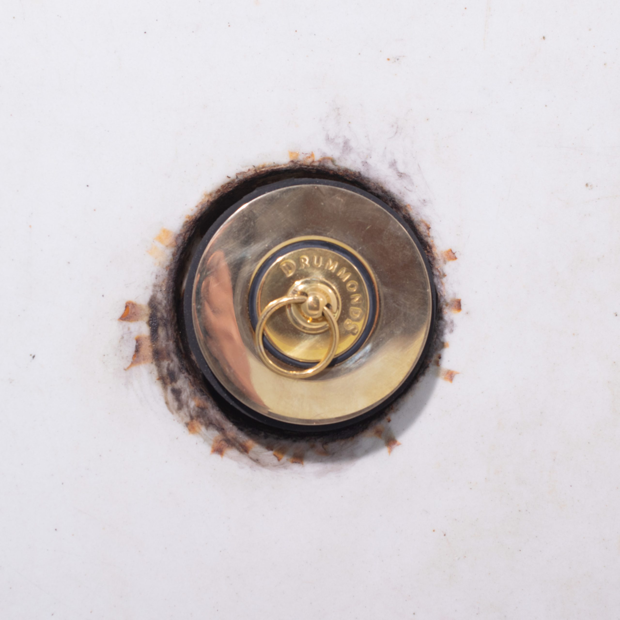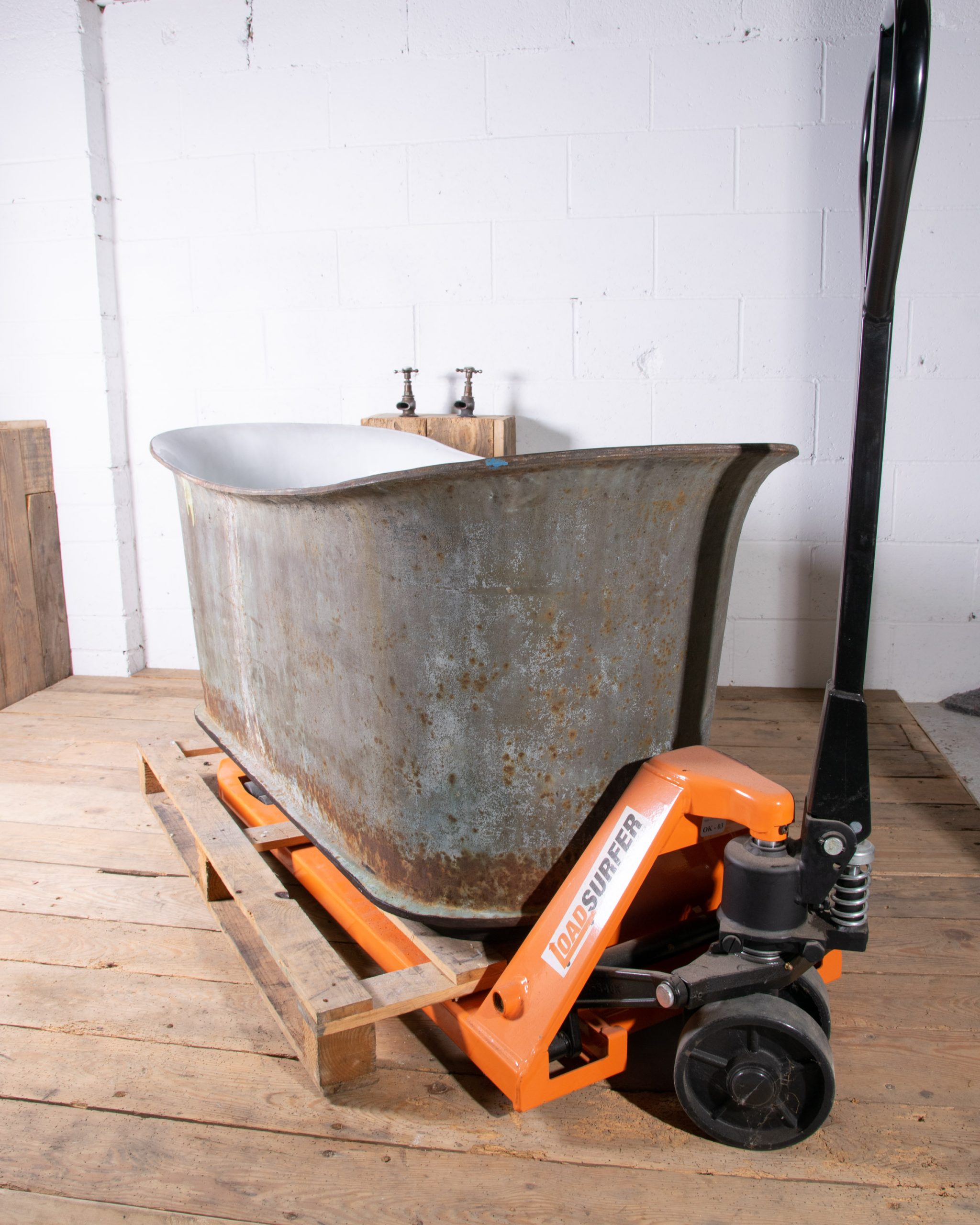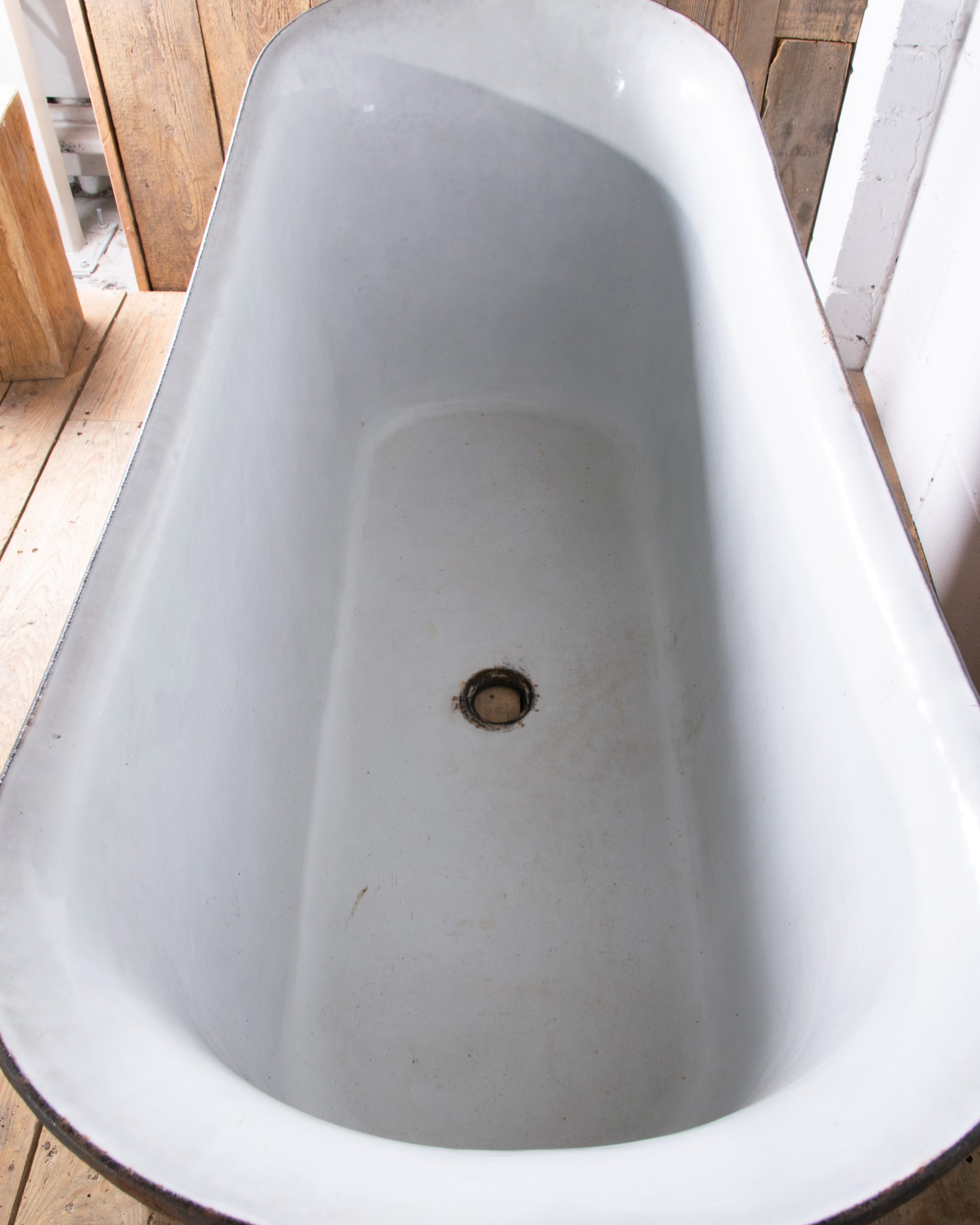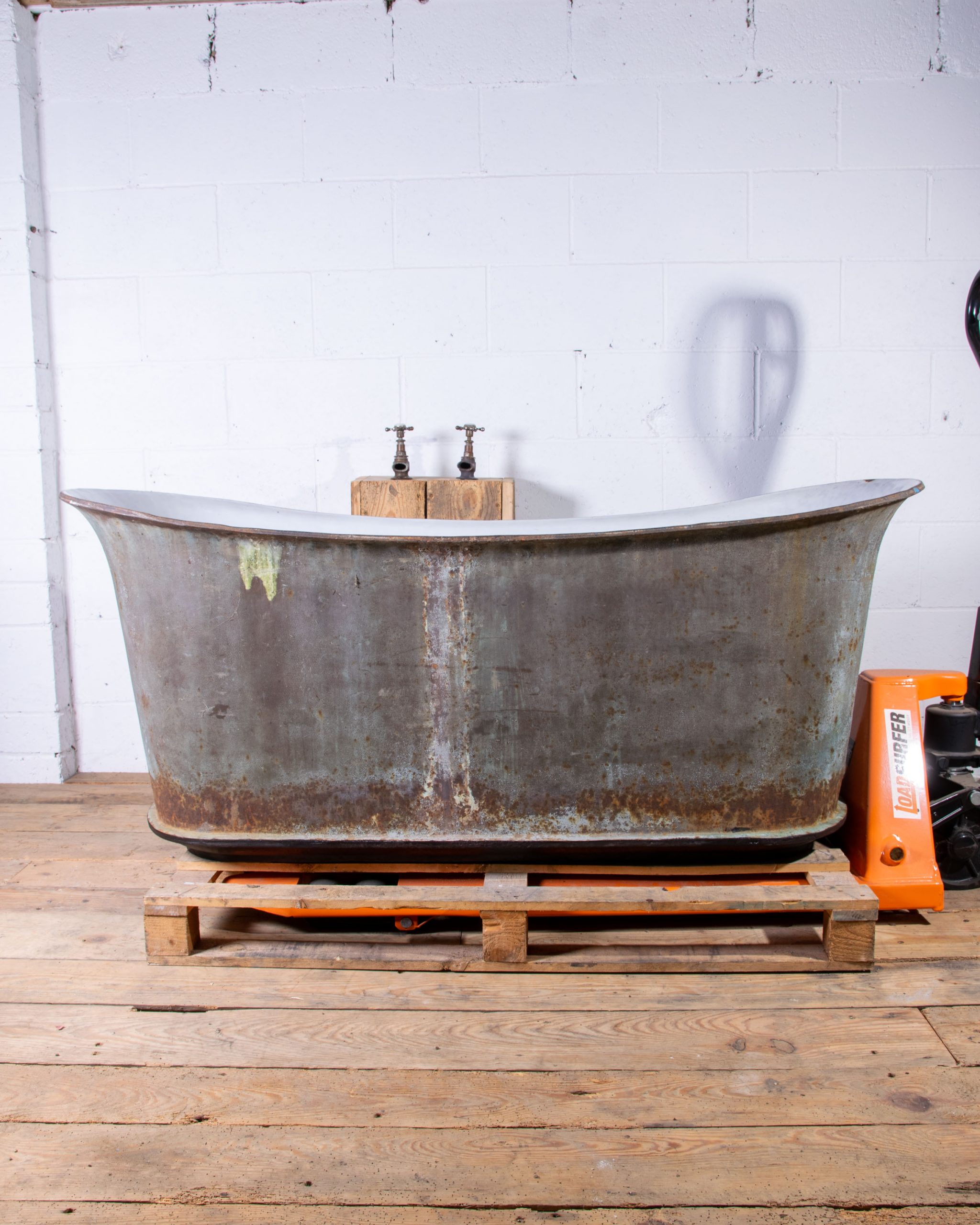 A cast iron ‘Empire’ bathtub manufactured by Rogeat (Lyon) around 1870.  Original vitreous enamel still in good usable condition and showing interesting green exterior patination.