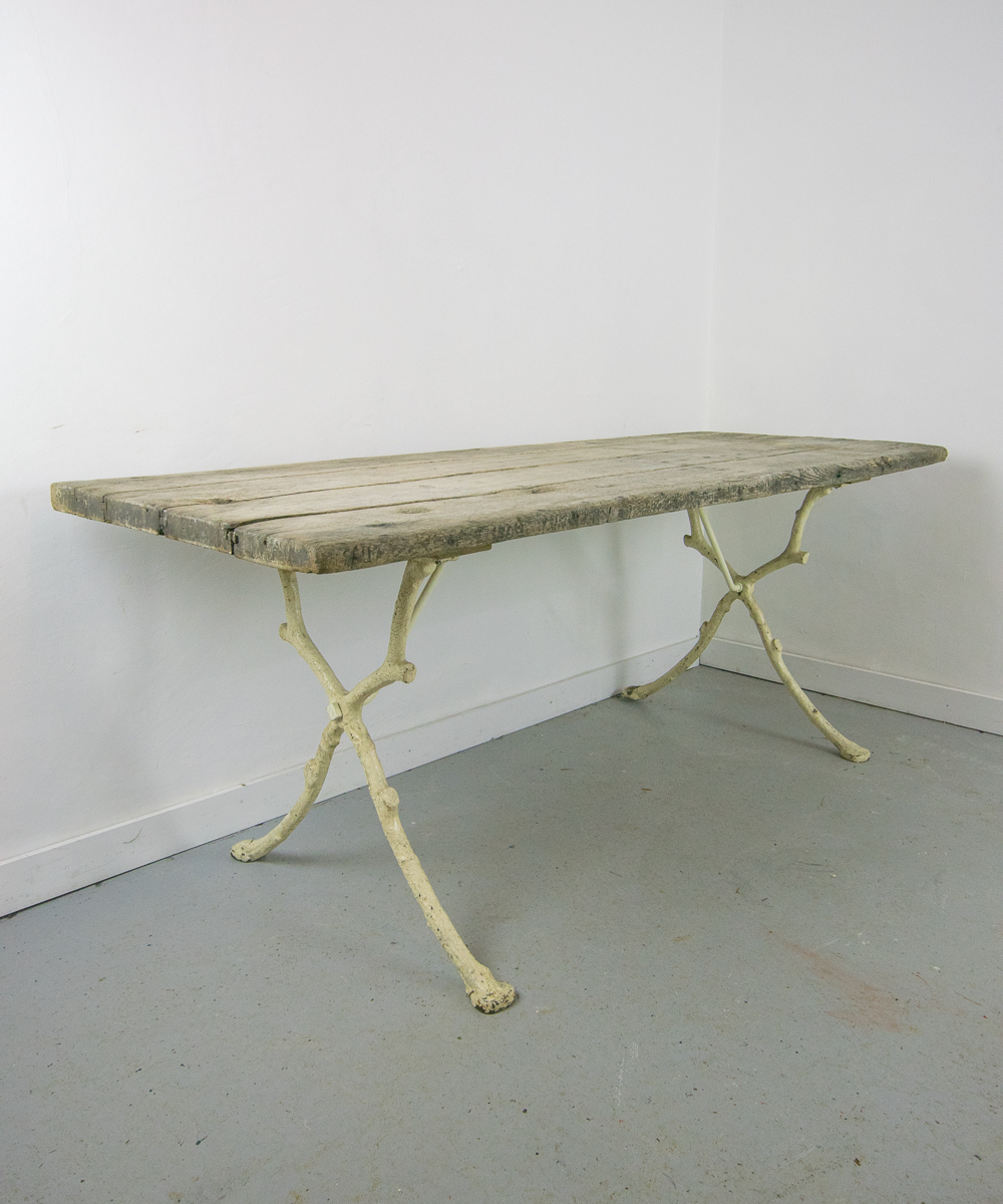 Stunning dining table made from reclaimed French oak and antique cast iron legs.