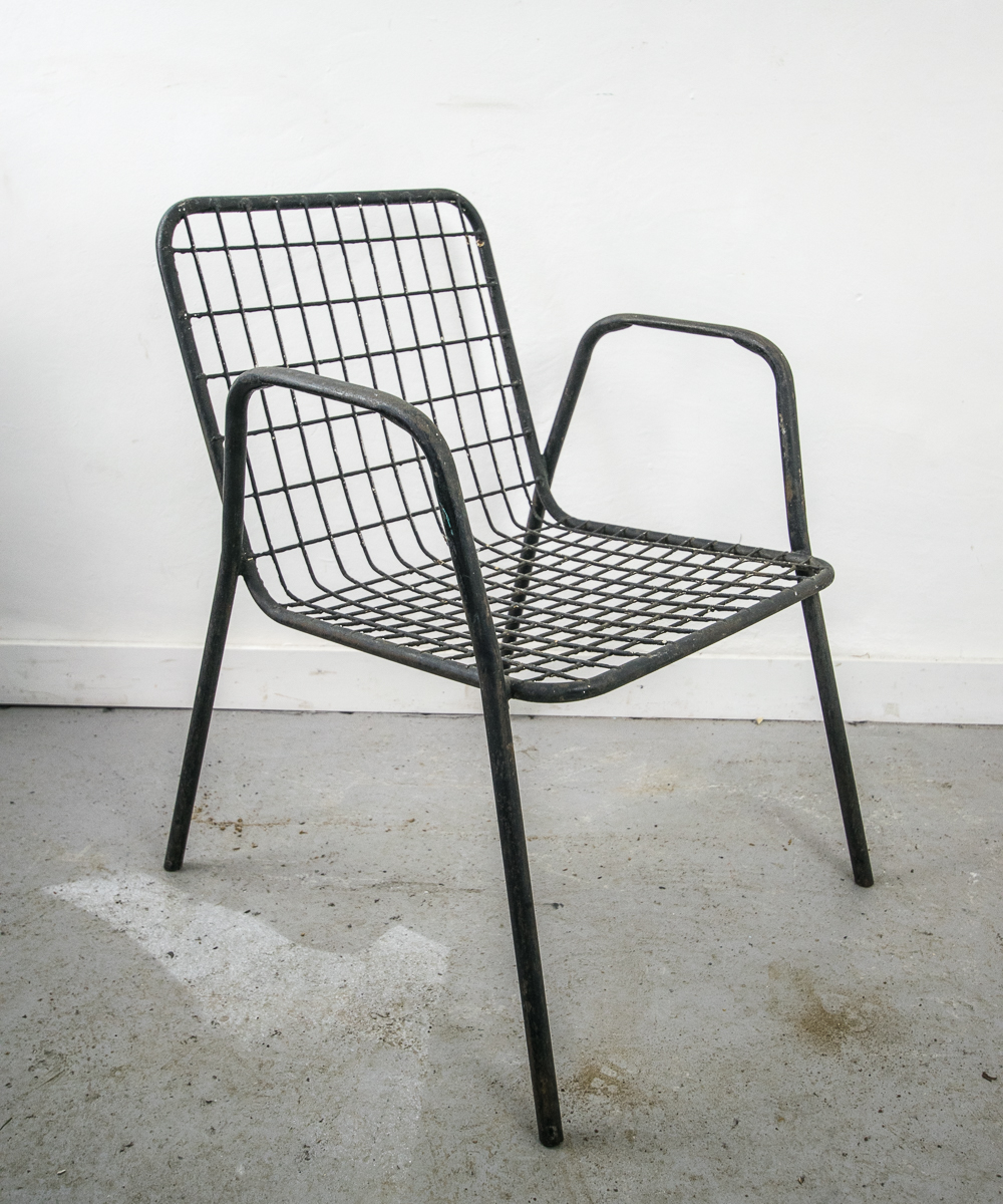 Mid century café terrace stackable metal chairs.