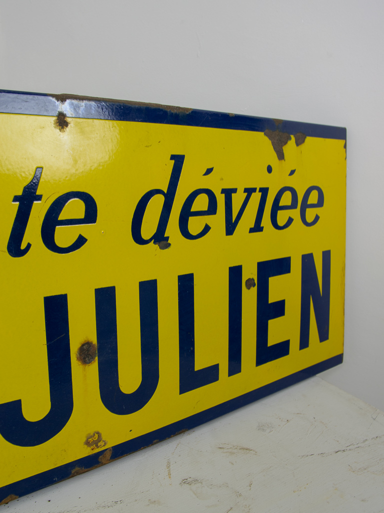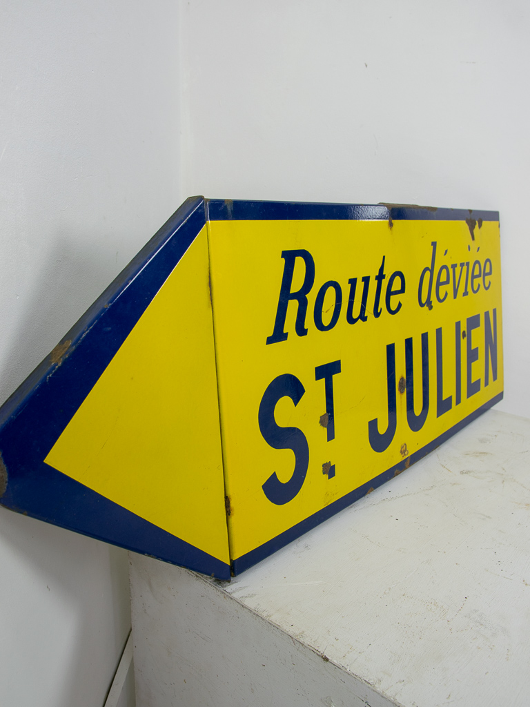 Unusual road sign, in that it made just for a temporary road diversion.  Beautifully made, with lovely wear to it.  St Julien is a commune near the Swiss border.