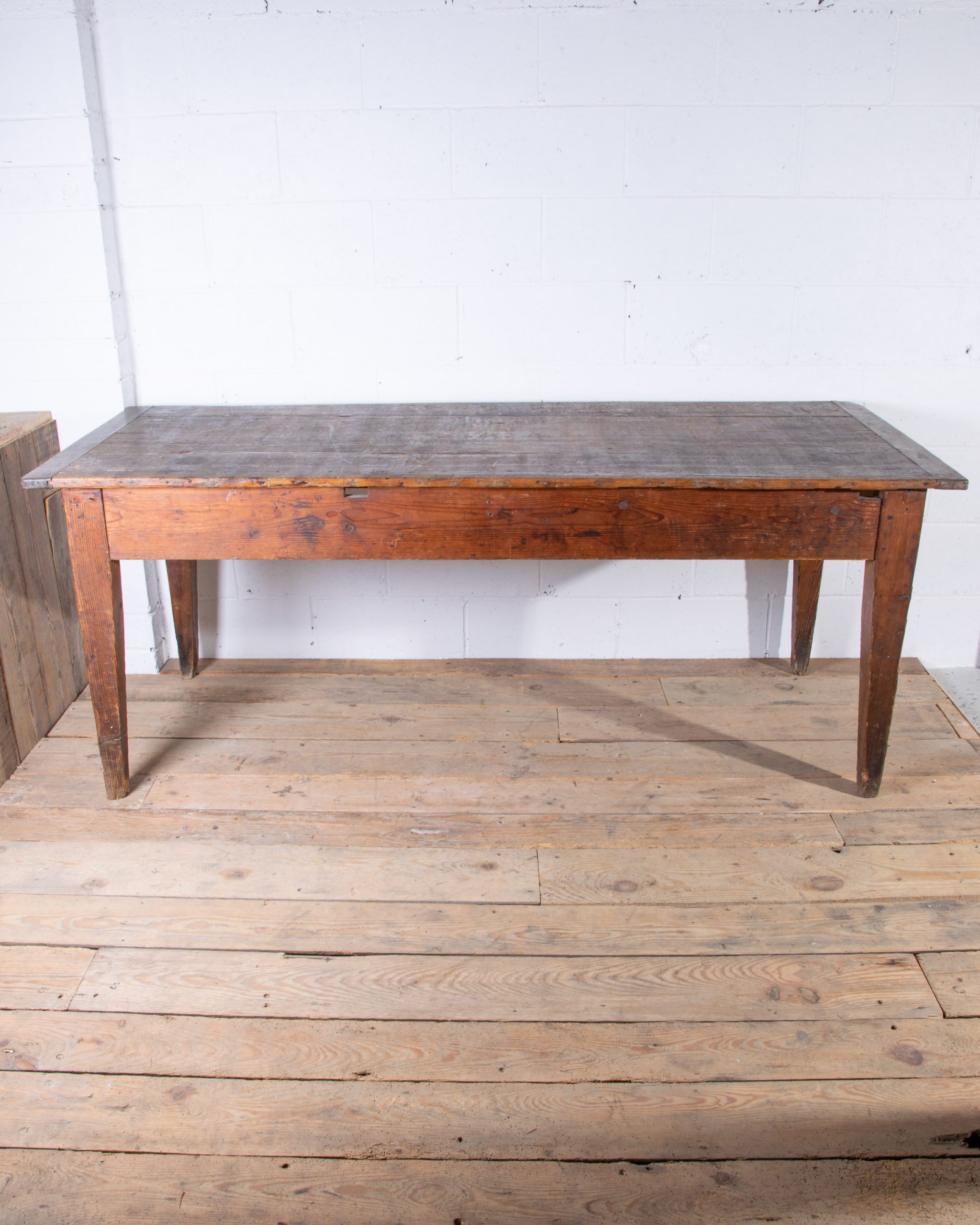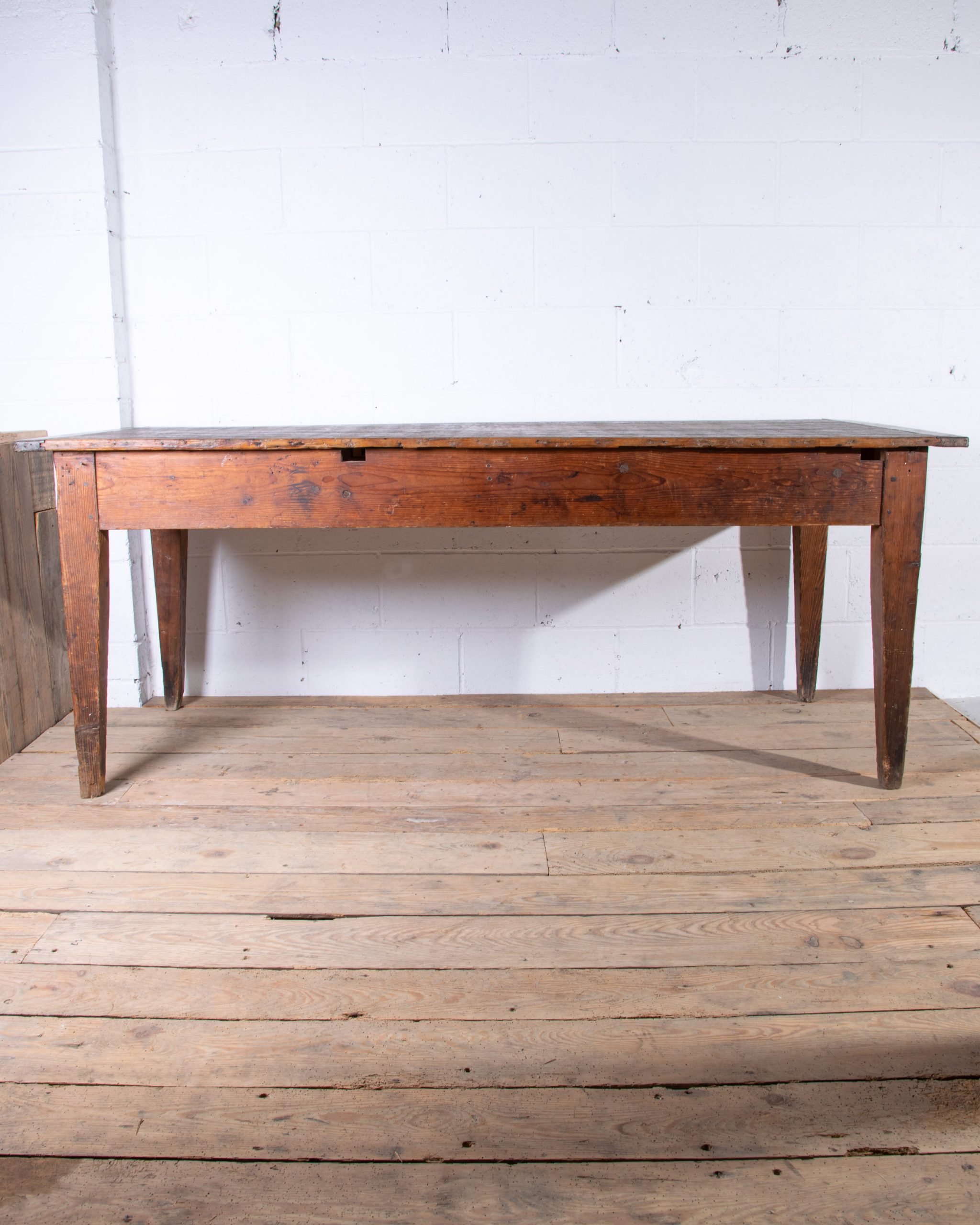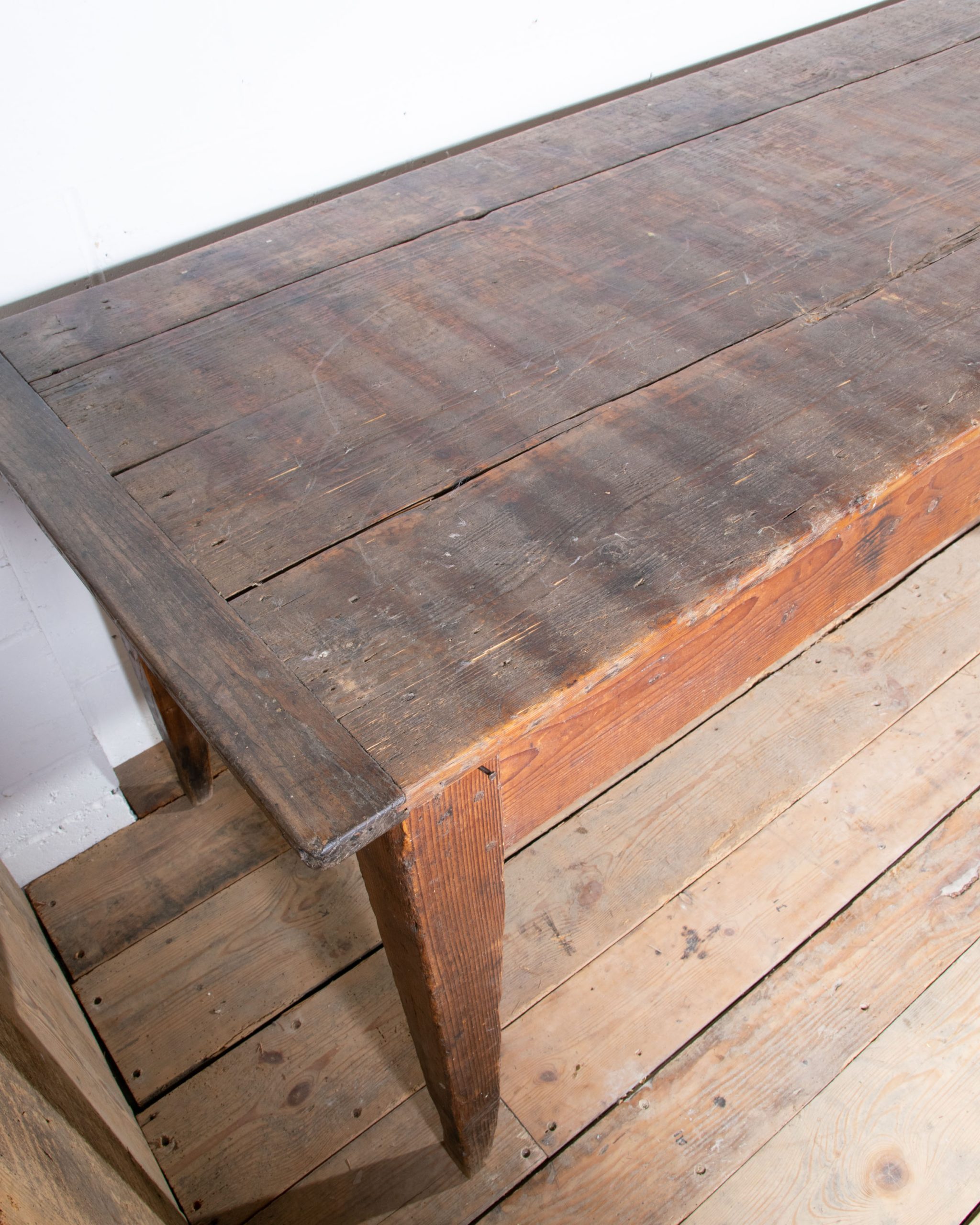 An early 20th century vintage pine table probably originally in a post office or municipal office which could be used as a dining or display table.