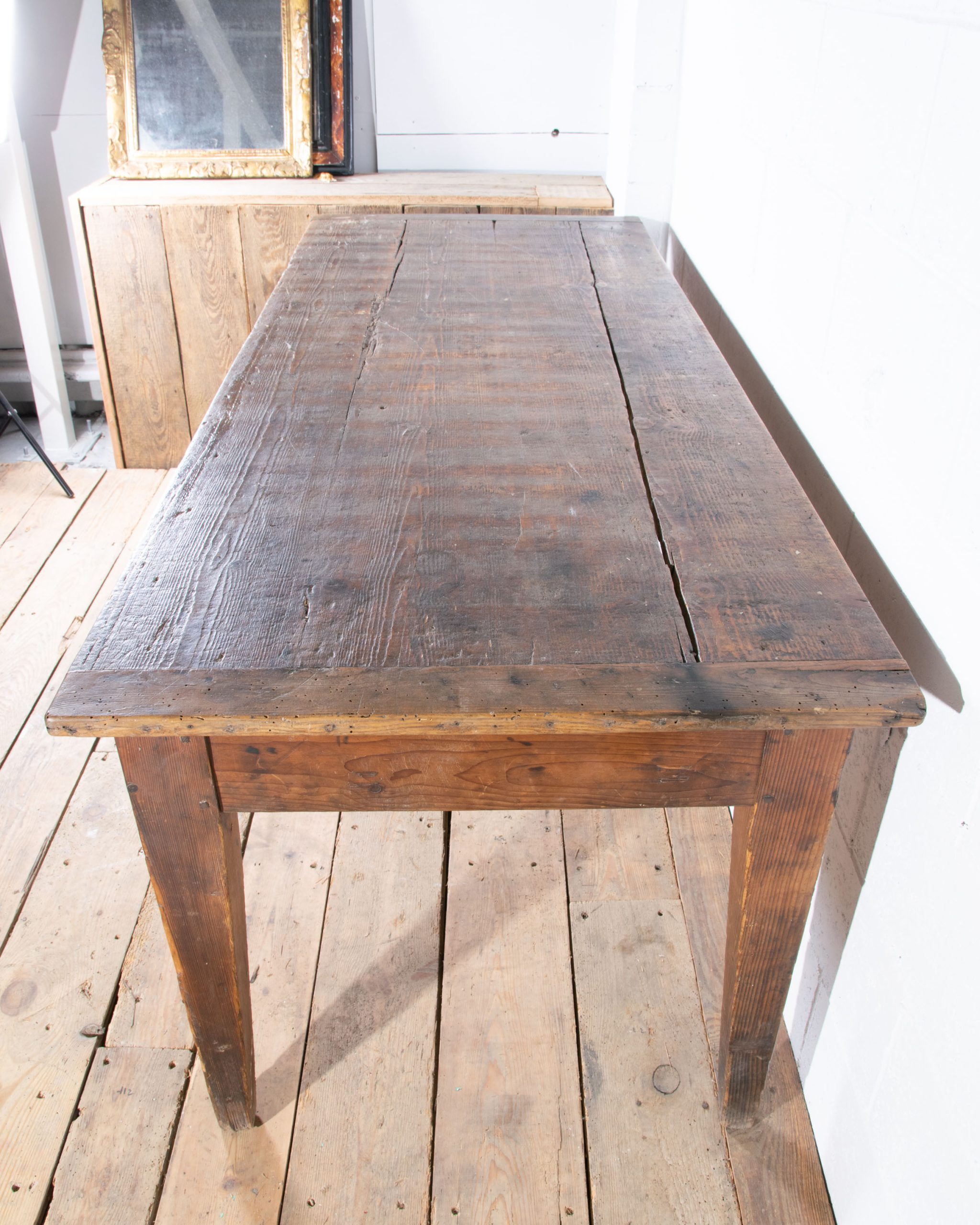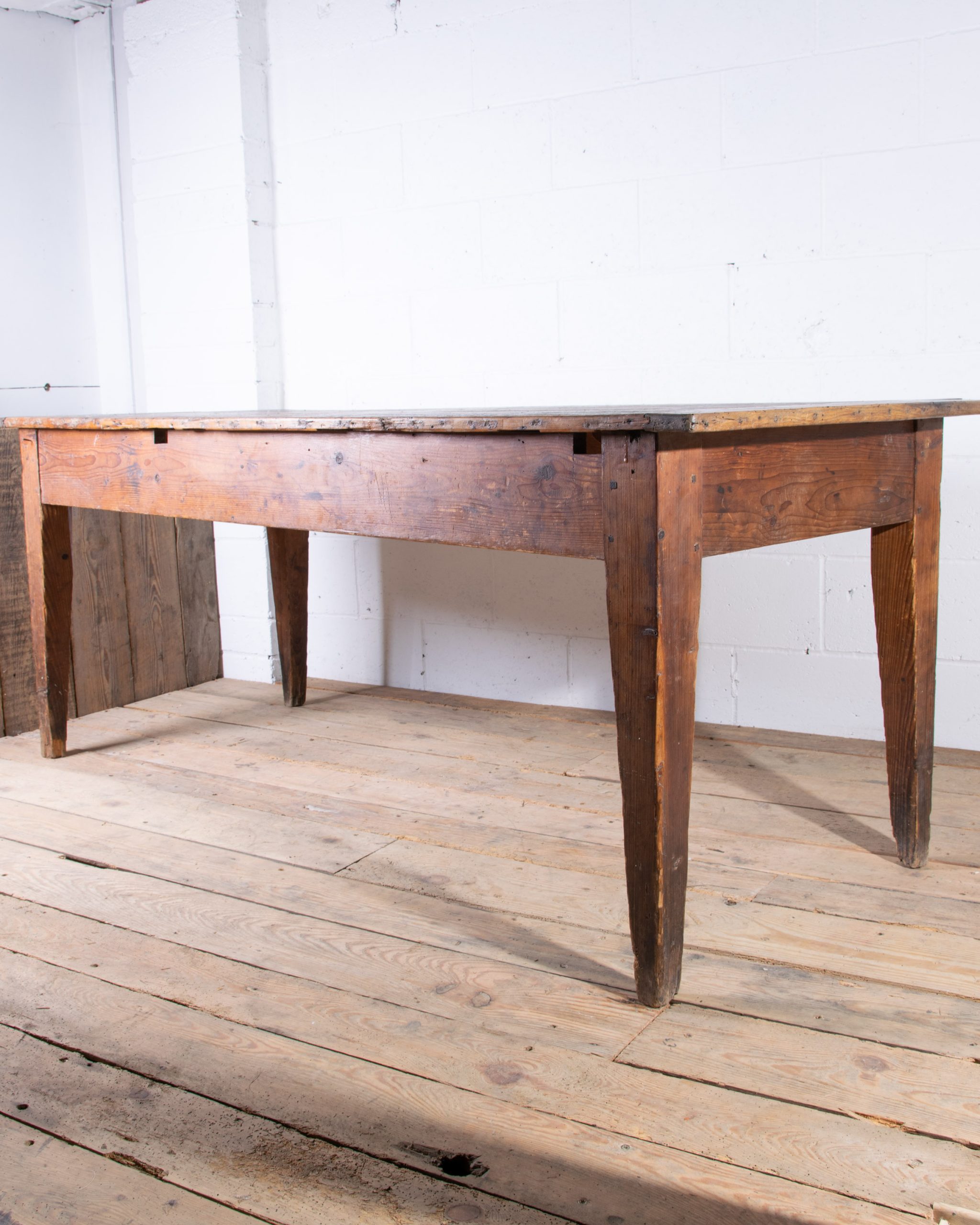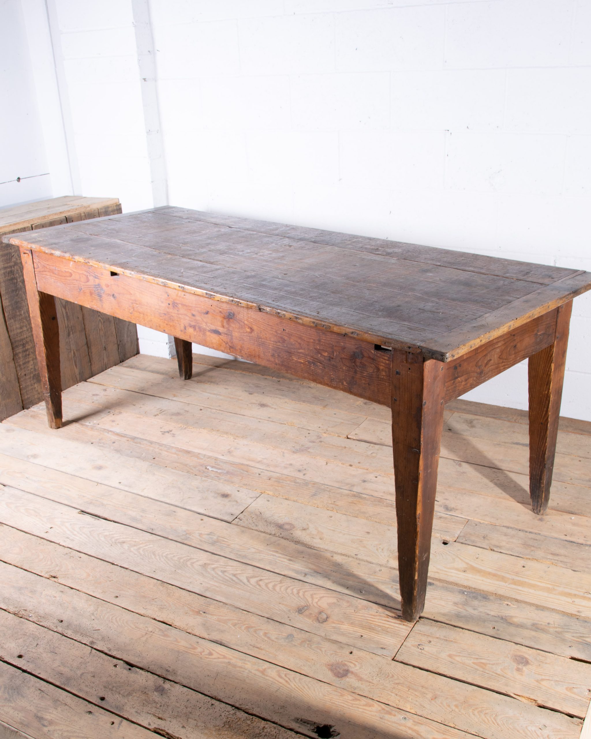 An early 20th century vintage pine table probably originally in a post office or municipal office which could be used as a dining or display table.