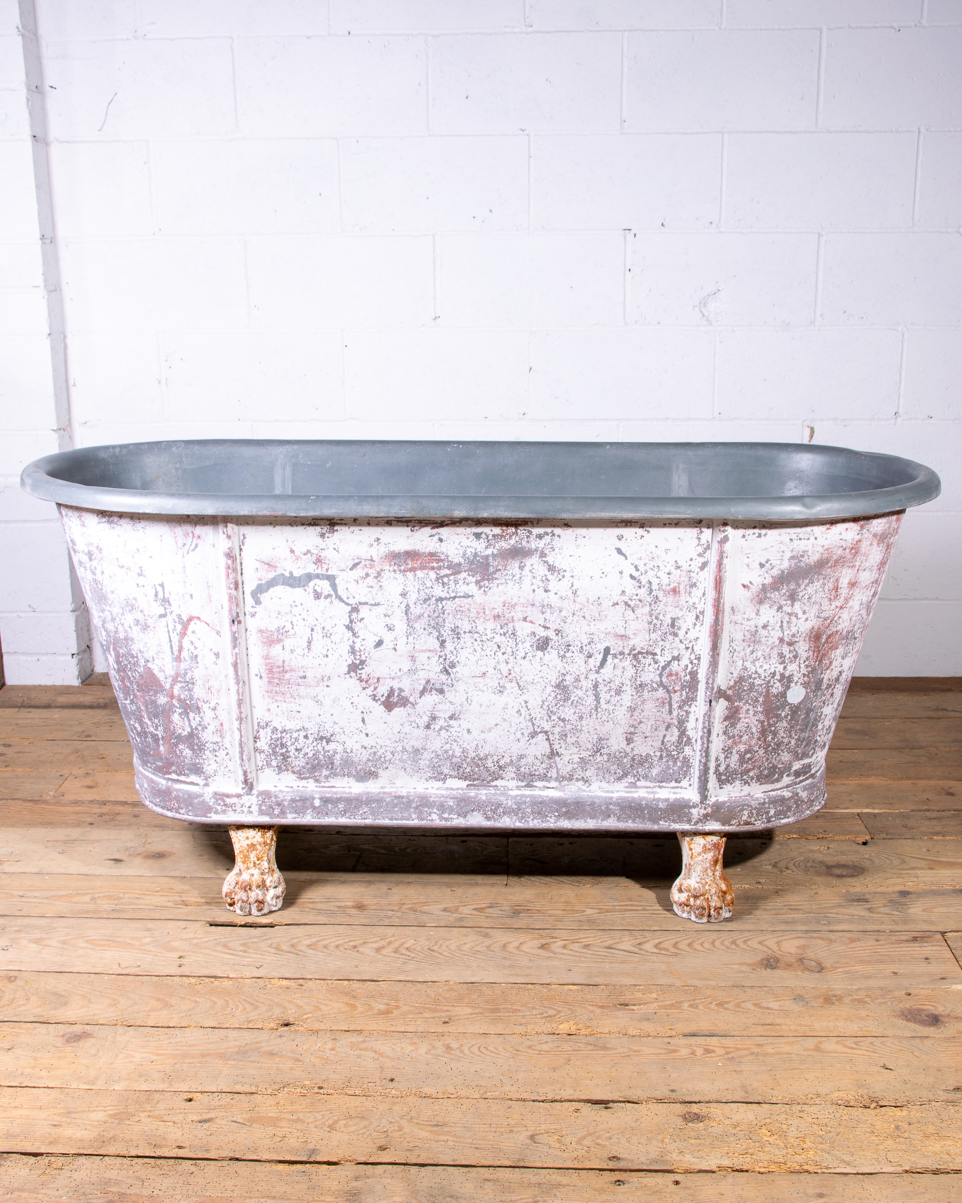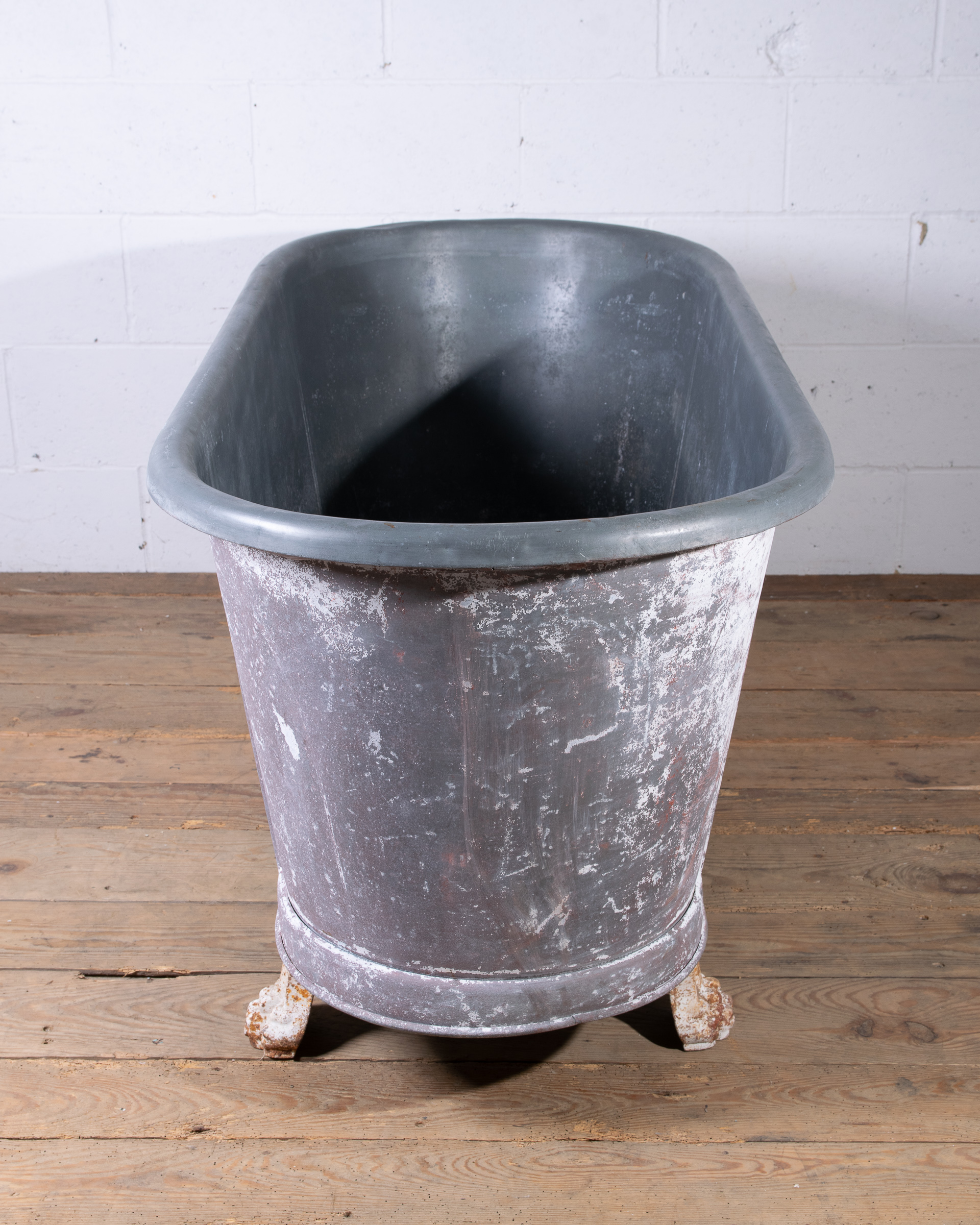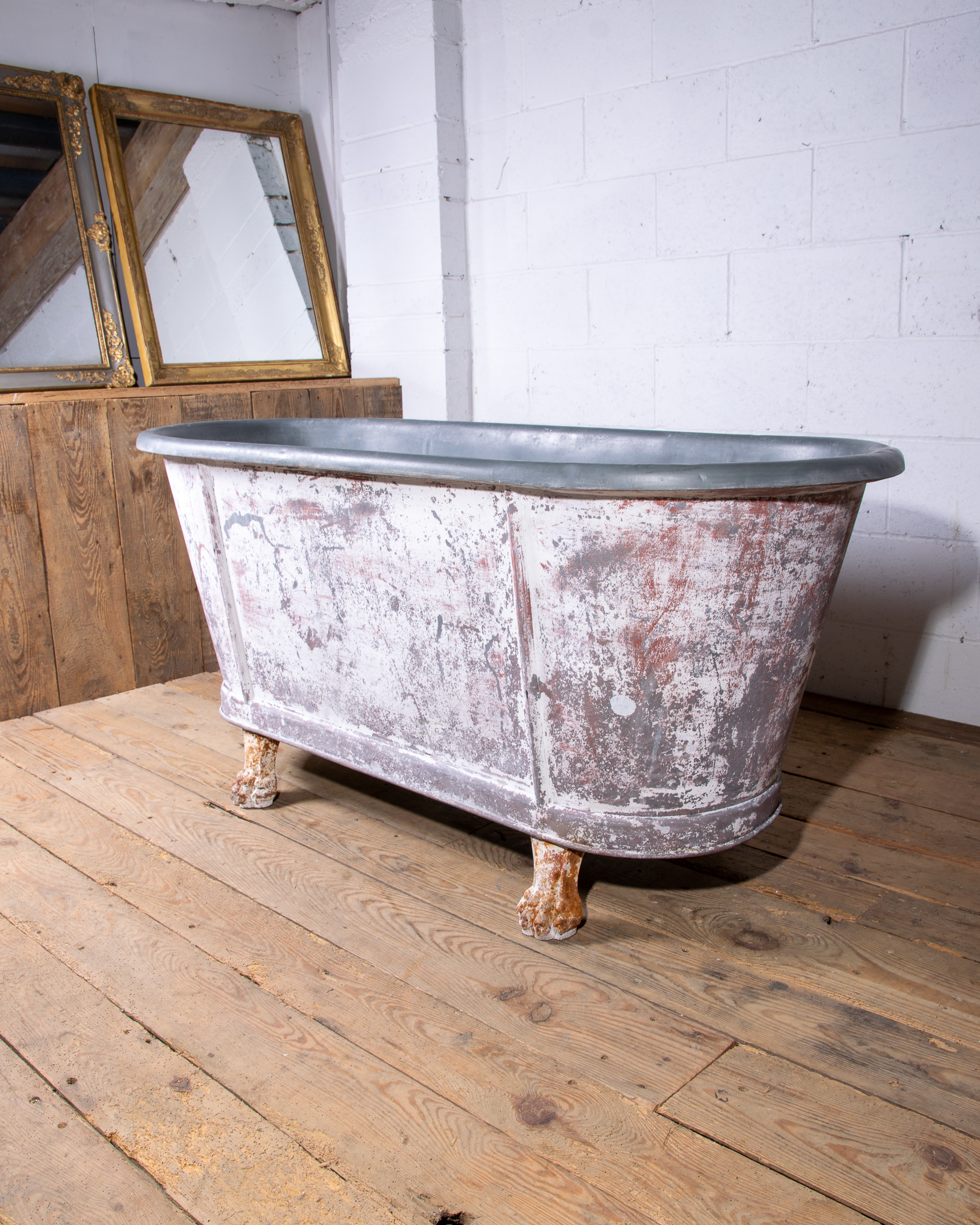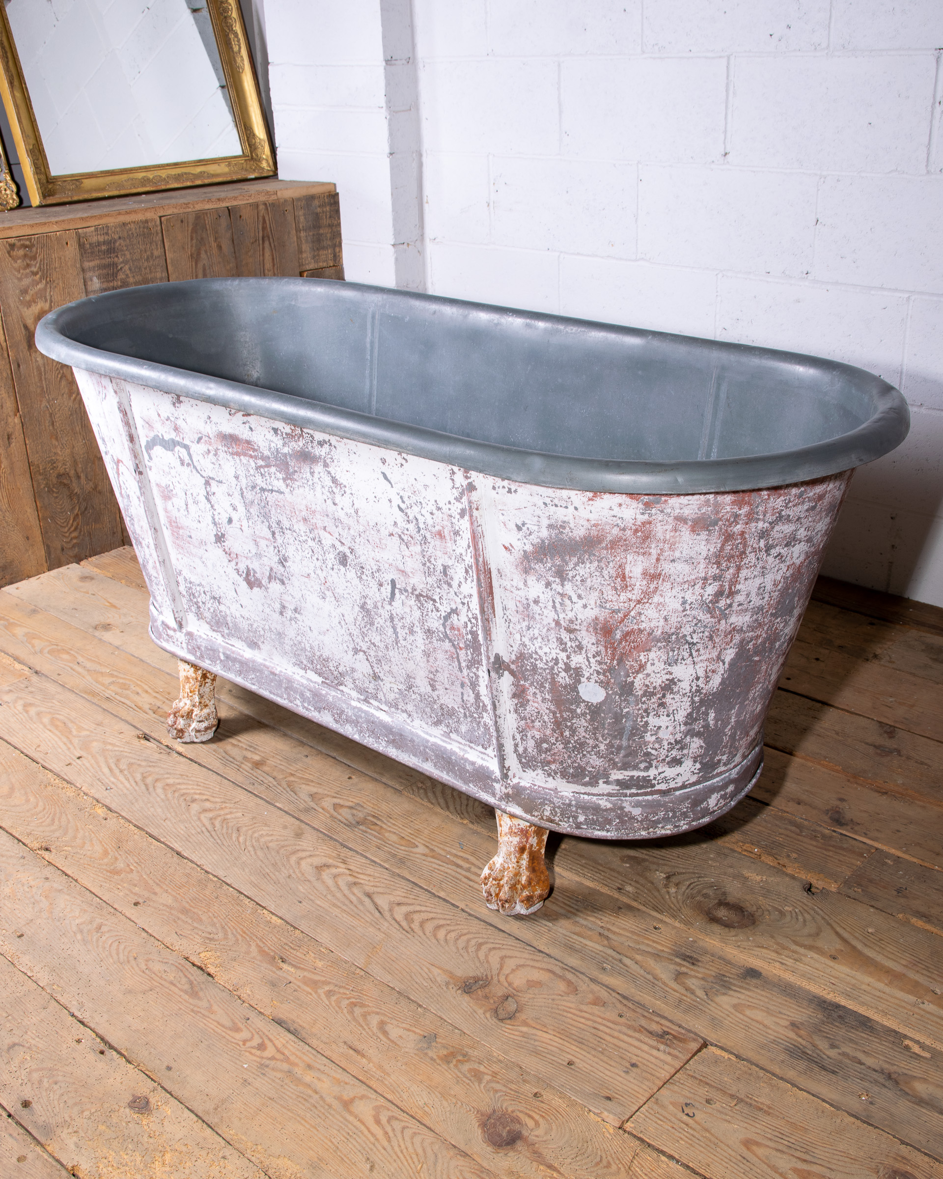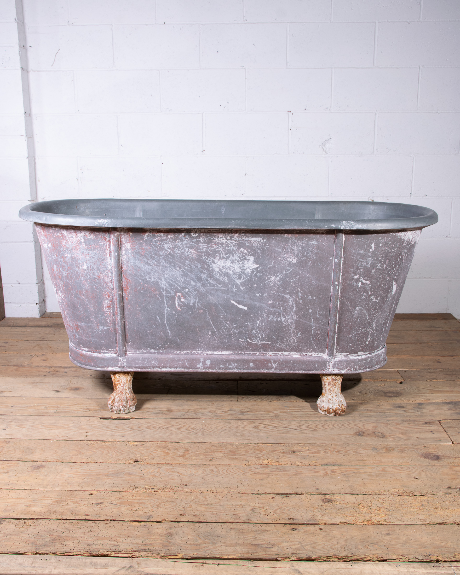 A 19th century French zinc coated bathtub on rare lionfeet. Stunning exterior patination.