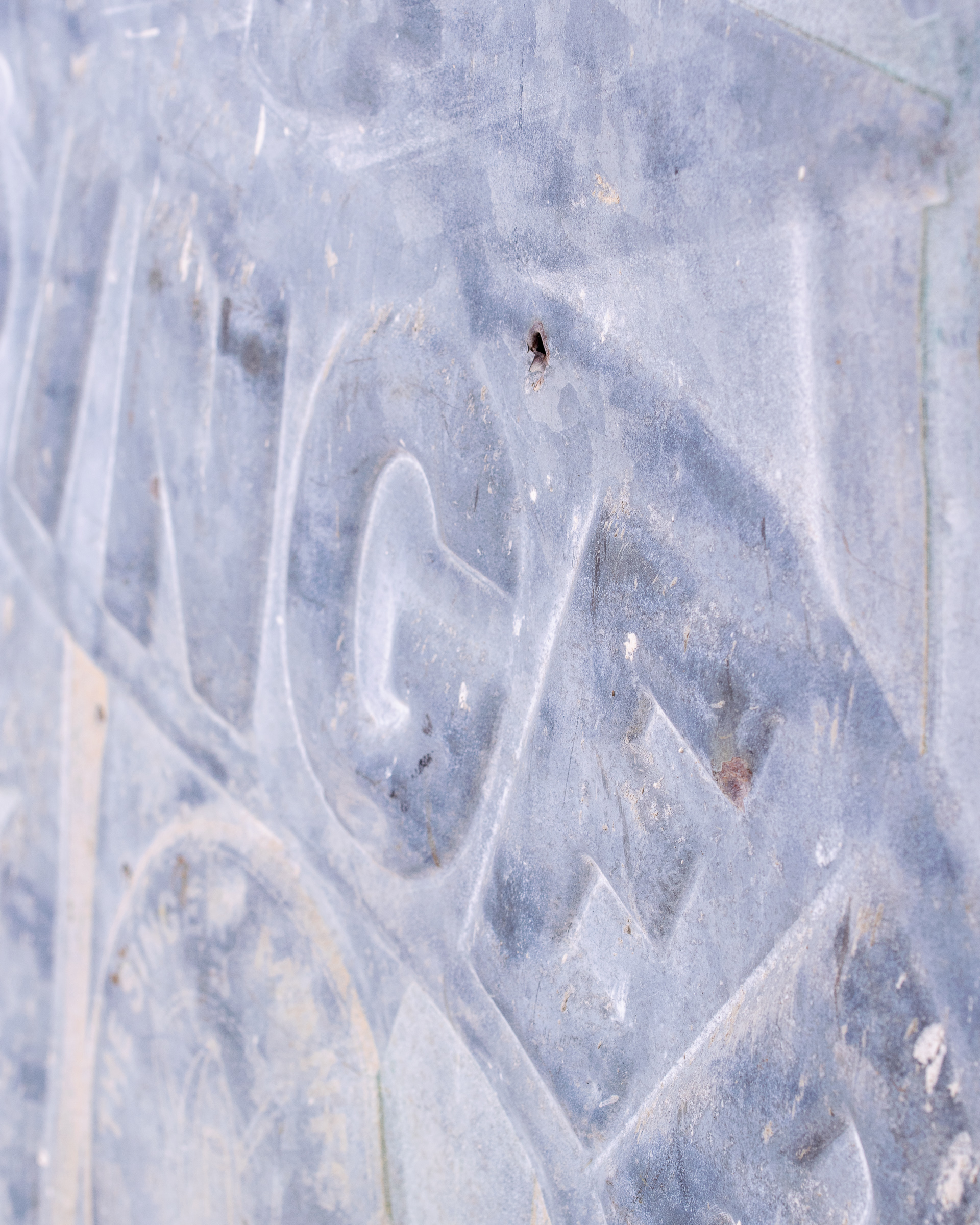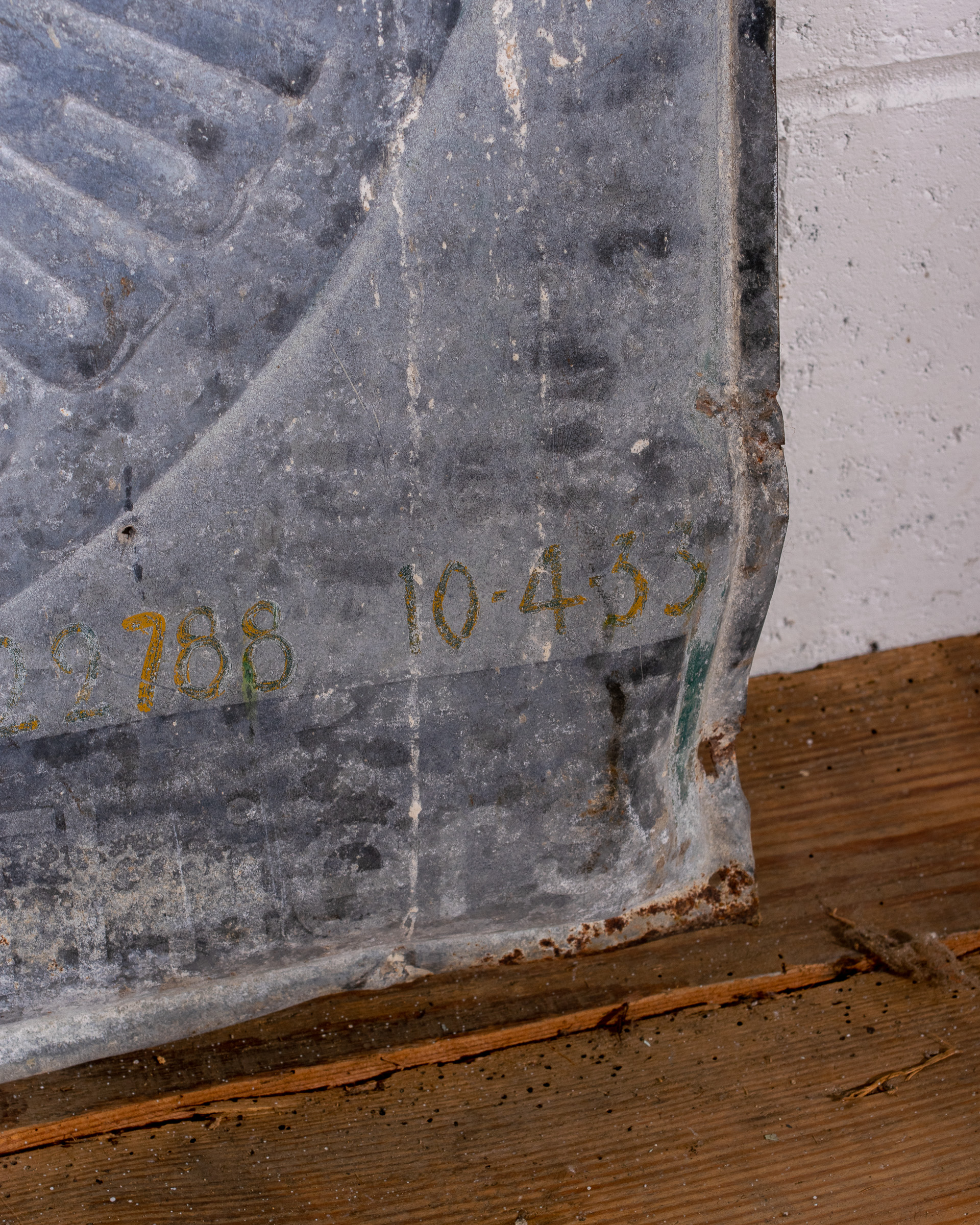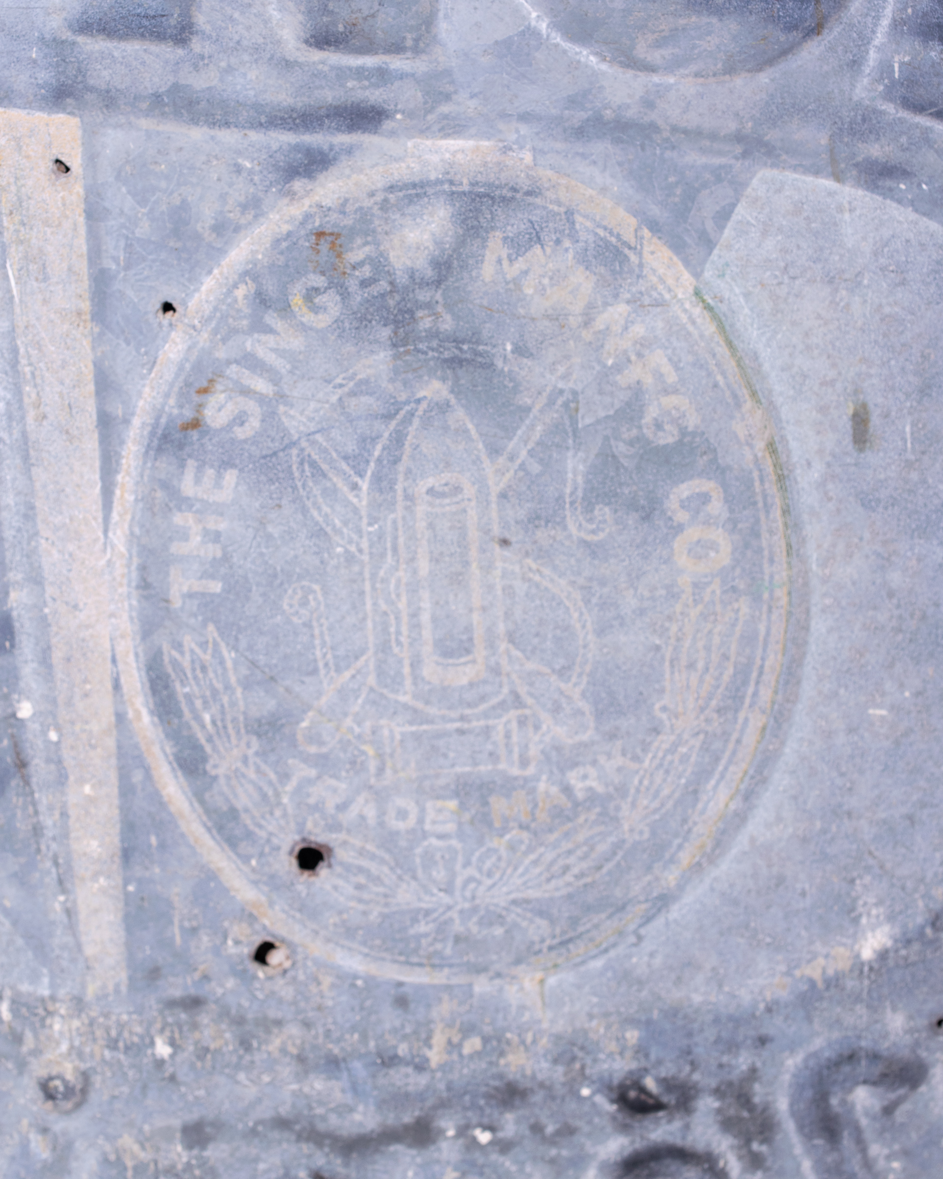A rare 1930’s advertising sign for Singer Sewing machines. Manufactured in zinc with embossed logo and detailing. Date stamped 10.03.33